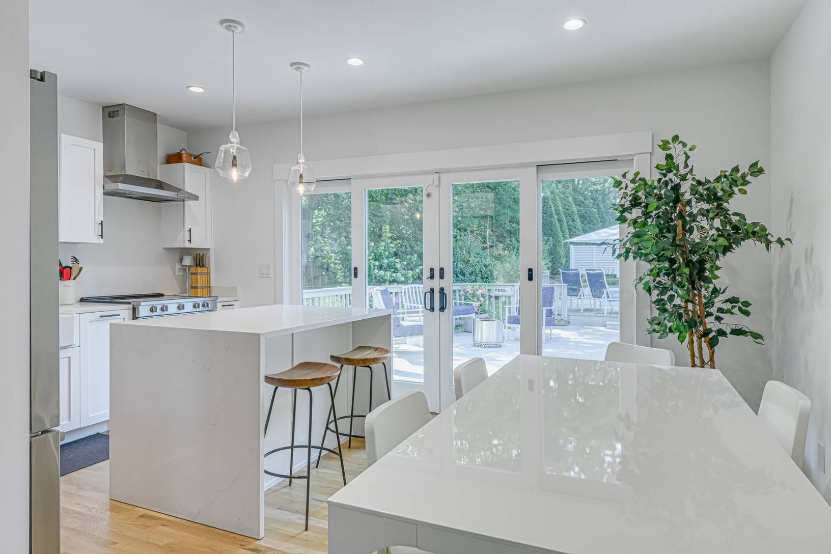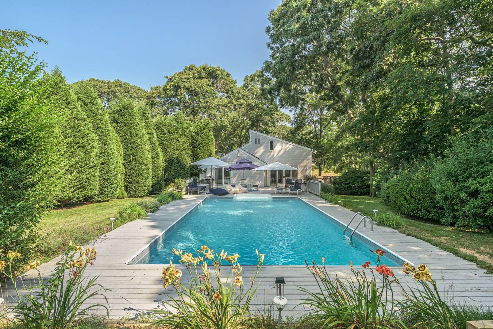 This welcoming three bedroom, 2 bathroom home, plus bonus loft with full bathroom and stylish spiral staircase, offers a hotel-like rental experience. Cozy up on plush couches this winter, or cool off this summer in the pool paradise in the backyard. Just minutes to the best ocean and bay beaches the Hamptons has to offer. Hampton Bays is known for its wide variety of waterfront dining options. Long Island Railroad, Public Library, Recreationa