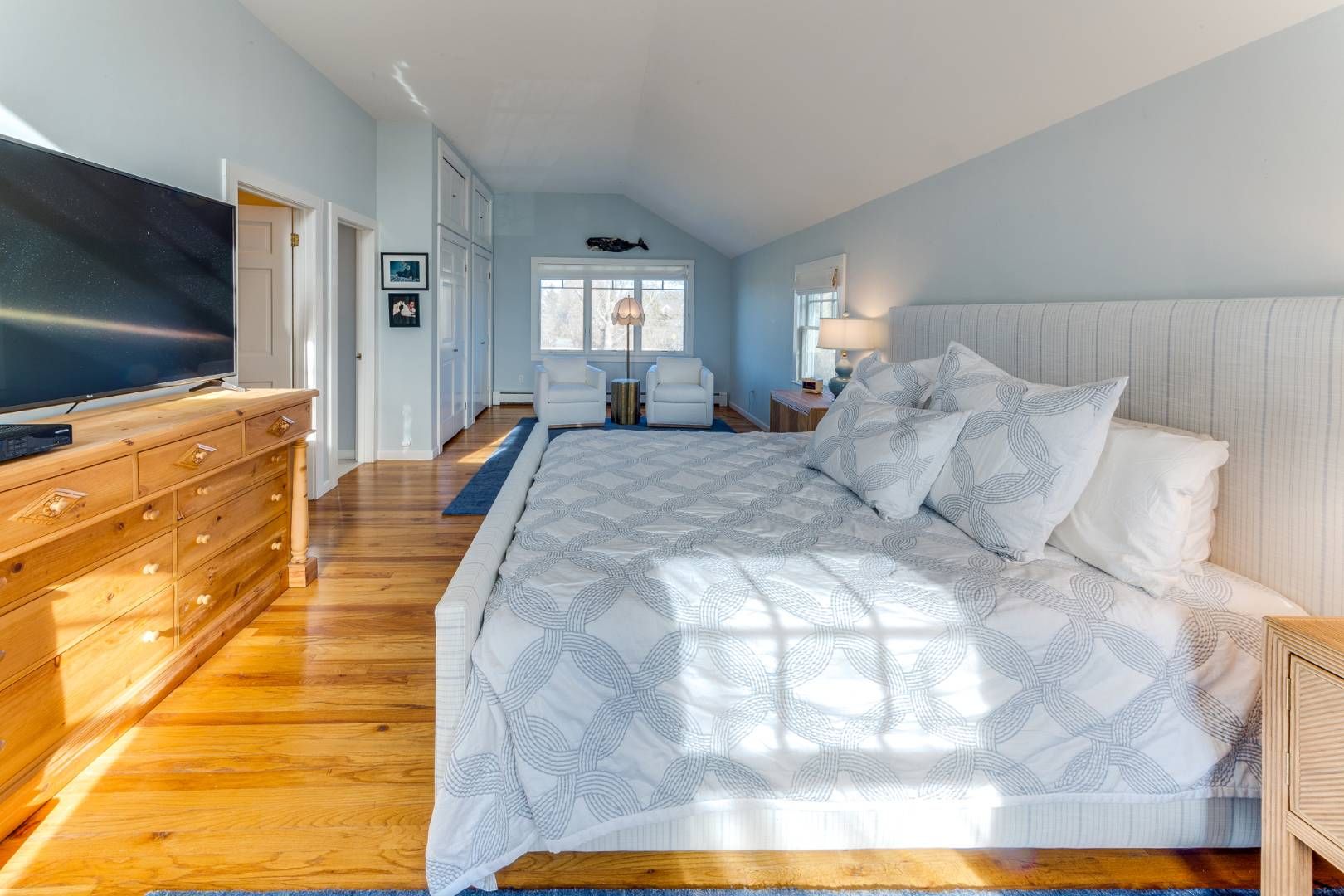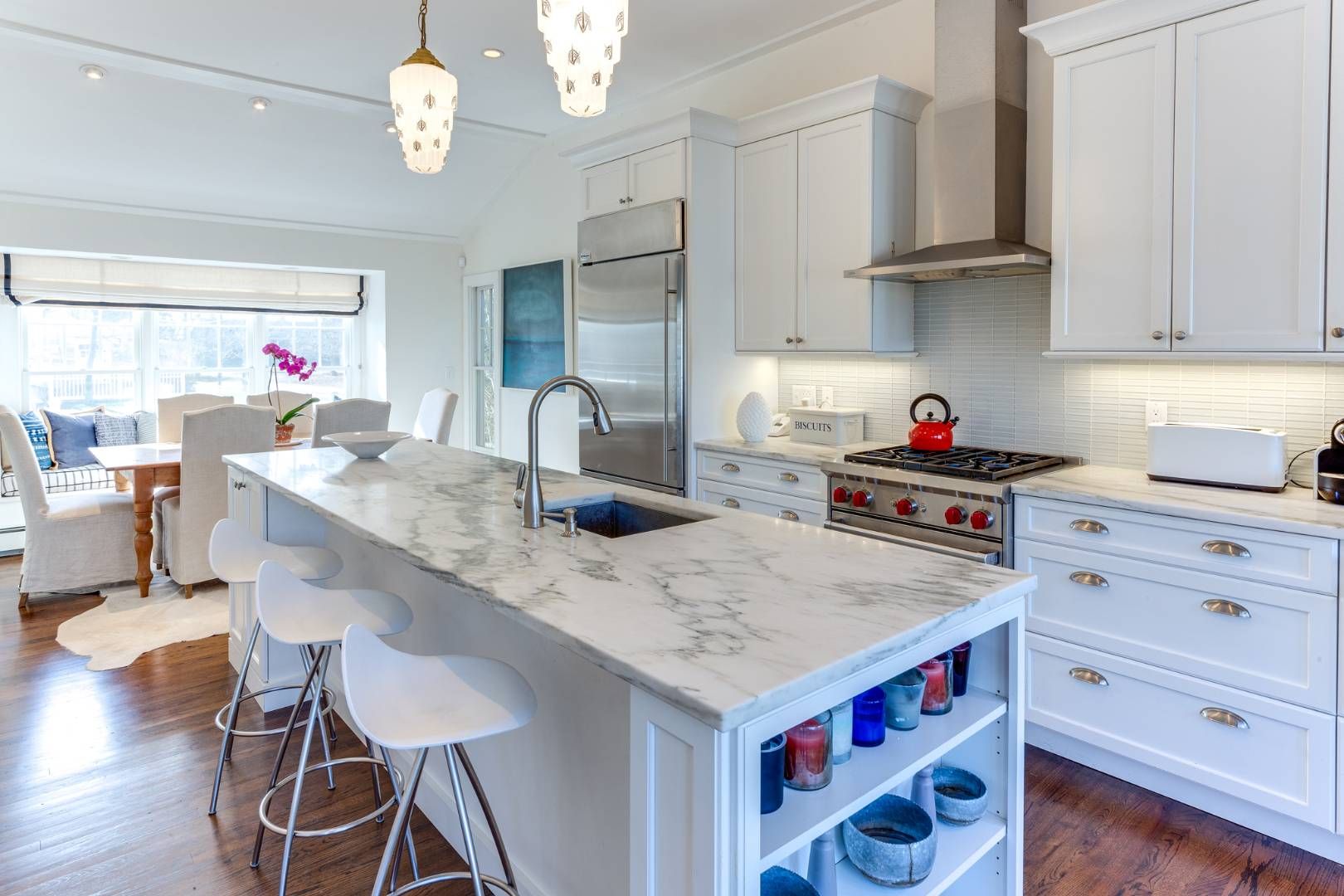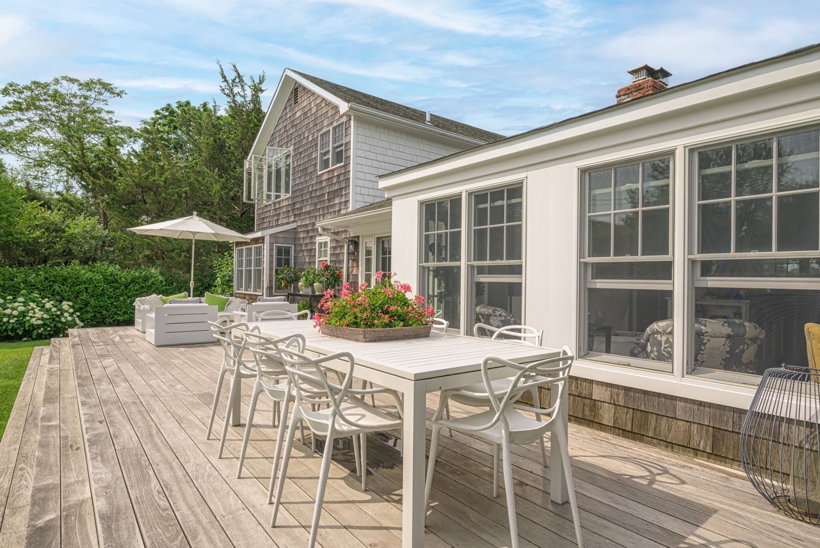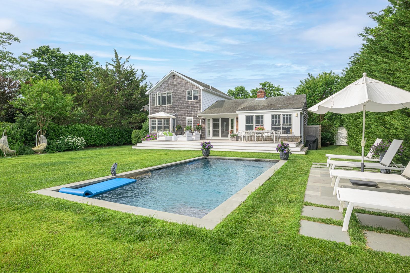 Completely renovated village retreat on coveted Glover Street with an open loft-like feel, a gourmet eat-in kitchen, and a wood-burning fireplace. Two well-sized guest rooms and a full bath are located on the first floor, while a spacious primary suite occupies the second level. The home opens to a large deck and a private backyard with an outdoor shower, a heated gunite swimming pool, and a modern, airy pool house, ideal for a writing studio.