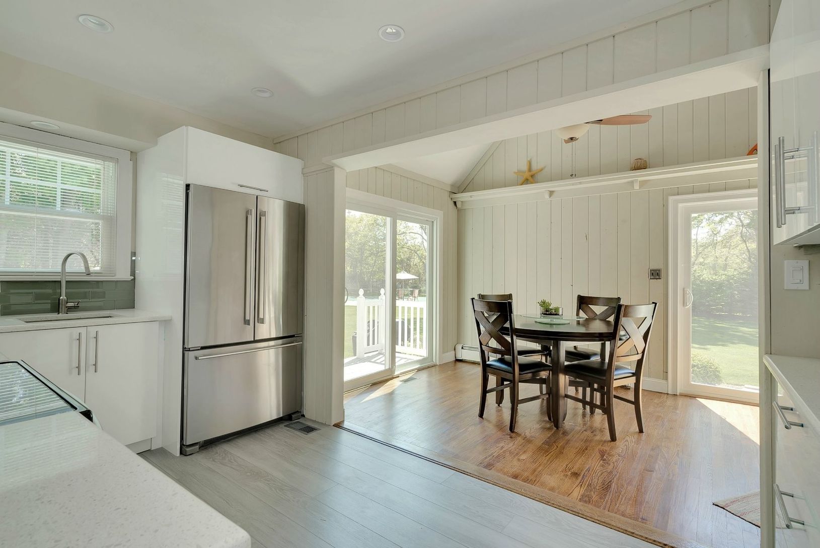 Escape to the Hamptons in this quaint, three bedroom home tucked away in Westhampton, approximately three miles from the village of Westhampton Beach. This new to market cutie is south of highway and nestled on an inviting, landscaped .79 acre. Its fully fenced yard enjoys a heated, in ground pool (18 x36) and ample lounging area. An abundance of sun fills the living and dining rooms which flow openly to the crisply renovated kitchen as well a