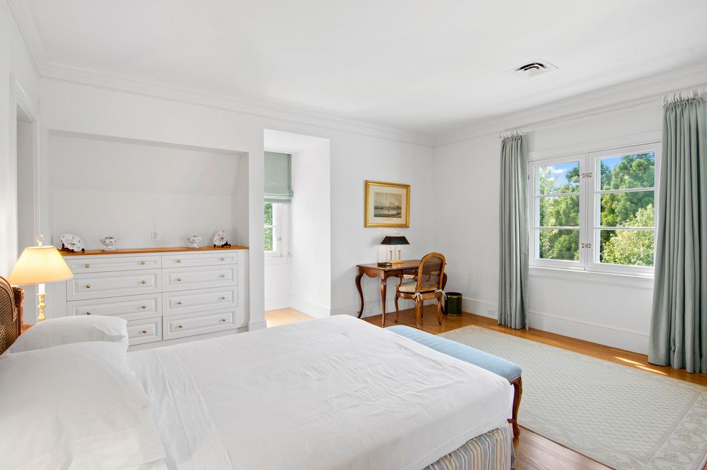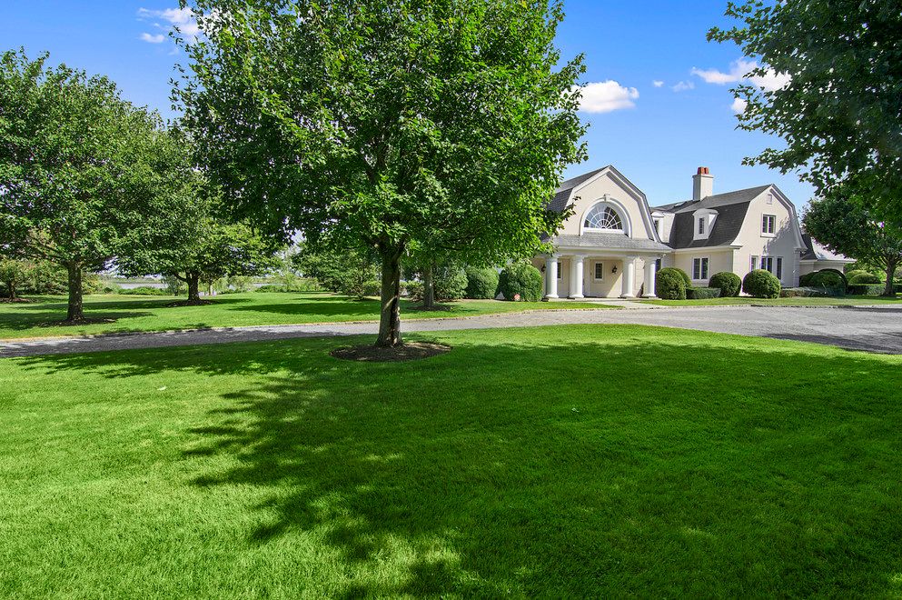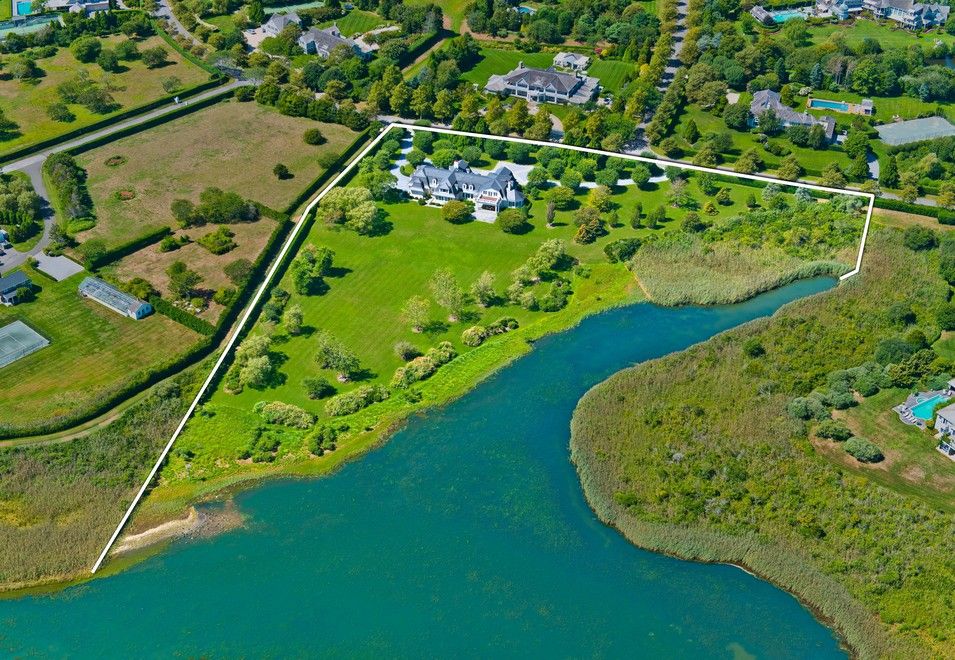 You Know You've Arrived....When you enter into the double-height gallery that leads directly into the drawing room with its views of the sprawling lawn and azure-blue pond, you are immediately transported into a state of serenity. The 6.4-acre property, artfully punctuated with majestic willows wafting in the ocean breezes, seems to go on forever. The sprawling 9,000-square-foot manse features views of the foliage-ringed pond-front from all im