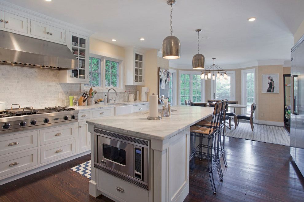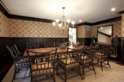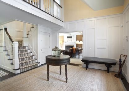 A recently renovated and expanded 4,500 SF+/- shingled 5 bedroom traditional with interiors by Celerie Kemble sits midway between village and ocean on one of the prettiest Lanes in Amagansett South The double height entry foyer leads across wide plank, richly stained, pine floors to the expansive great room with coffered ceiling and a fireplace with custom crafted mantle. The complete kitchen with Carrera marble countertops and back splash, 2