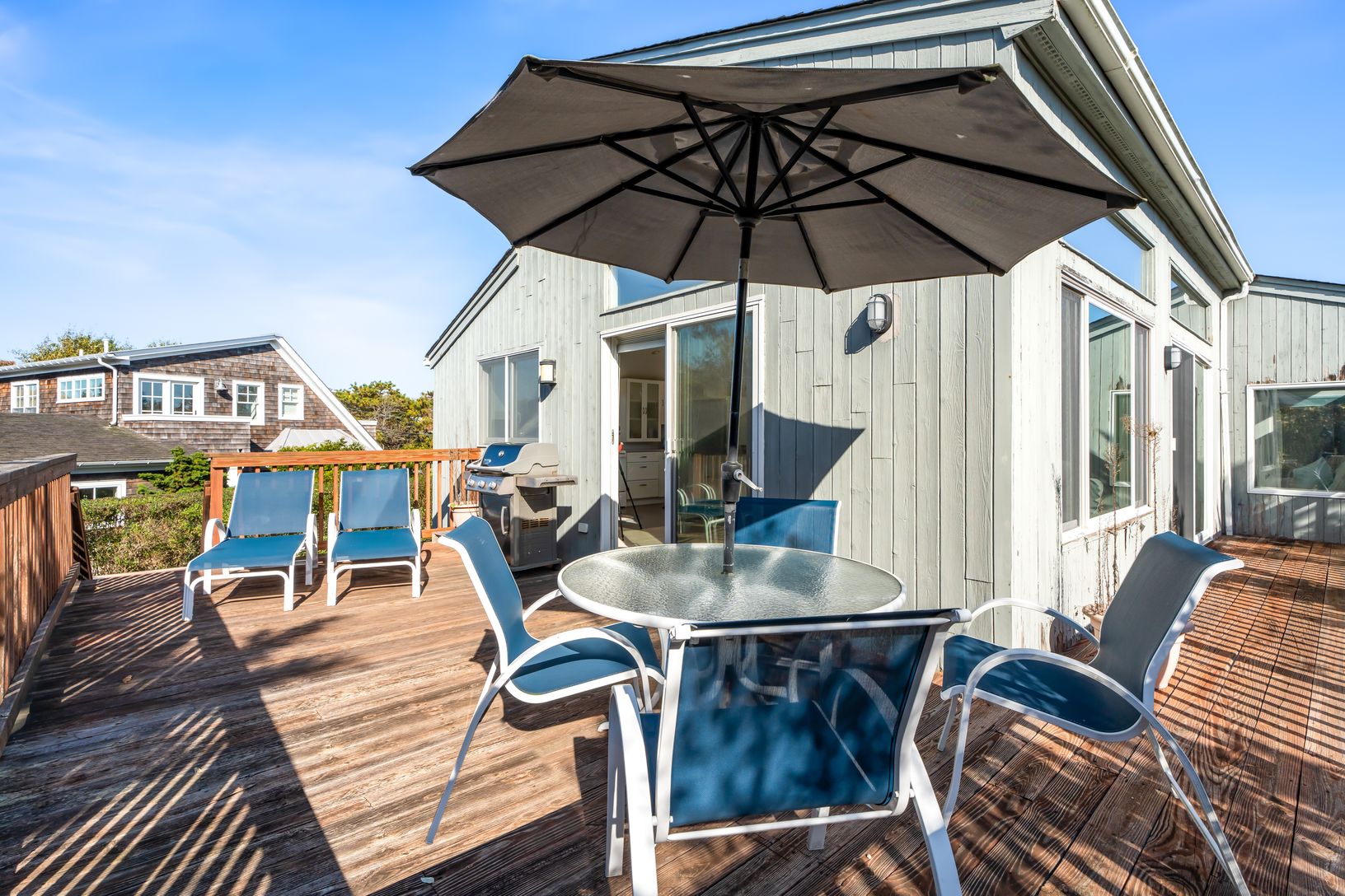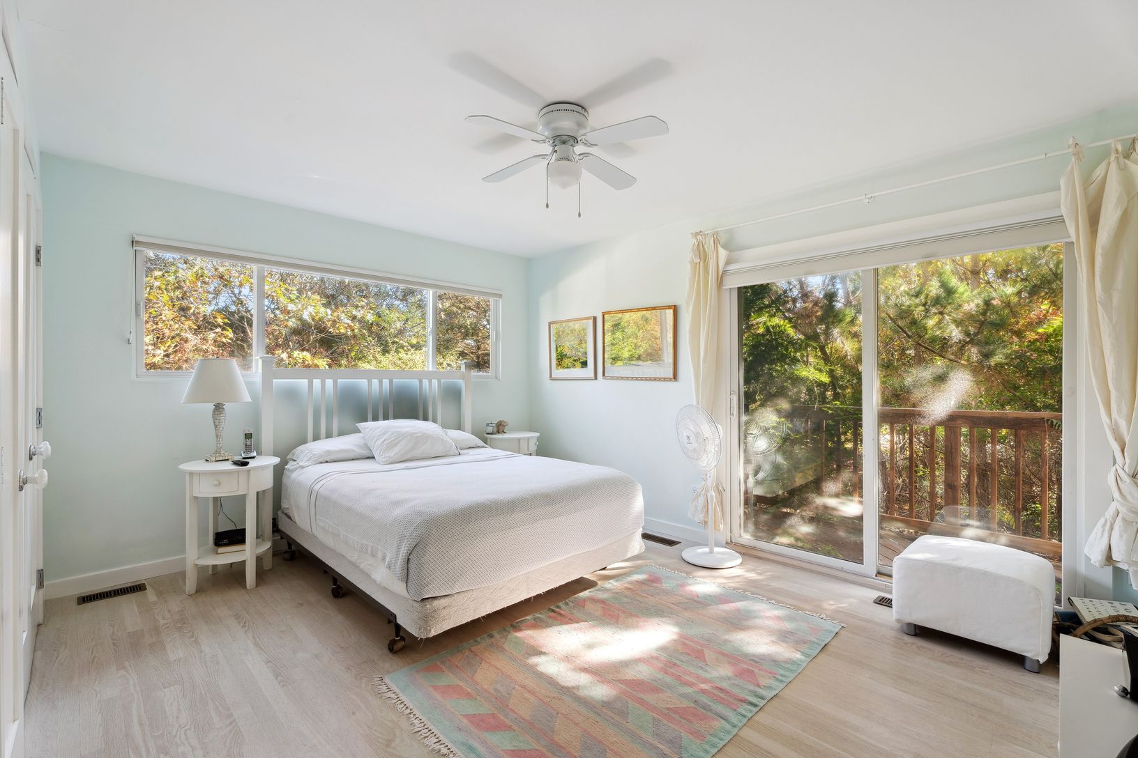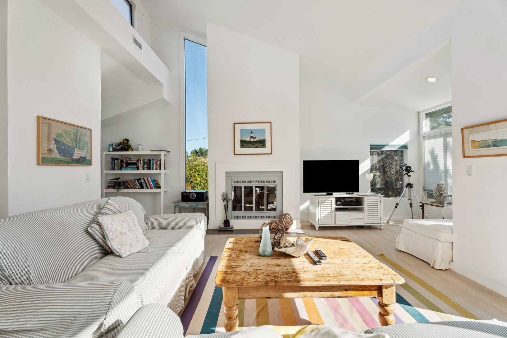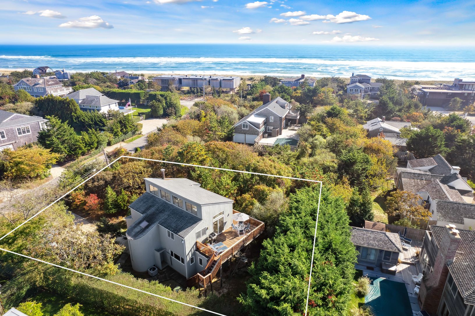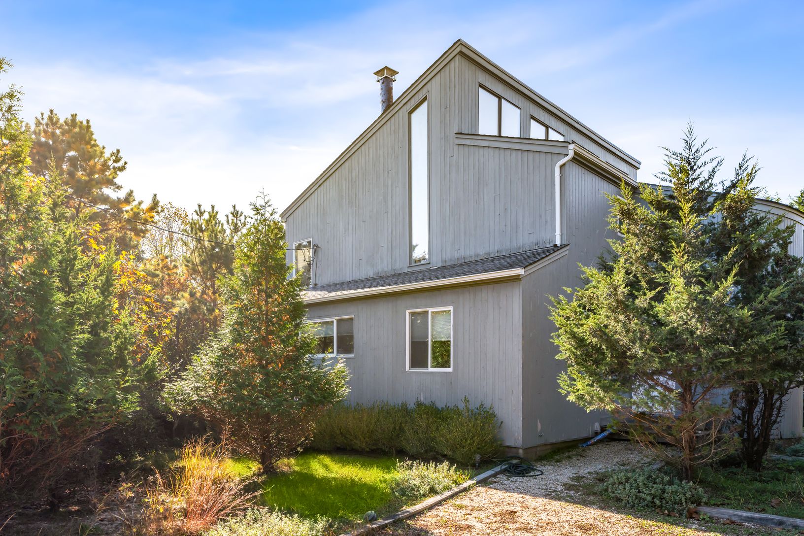 This house has just been reduced for sale in the Amagansett Dunes and is very close to the ocean beach. This cheerful upside down houses has a bright open concept living space upstairs with a large second story deck for grilling, dining or just sitting in the sun. Surf Drive is a double wide paved street, which makes access to the property easier than some of the tight Dunes streets. Downstairs, there are four bedrooms and two of them are e