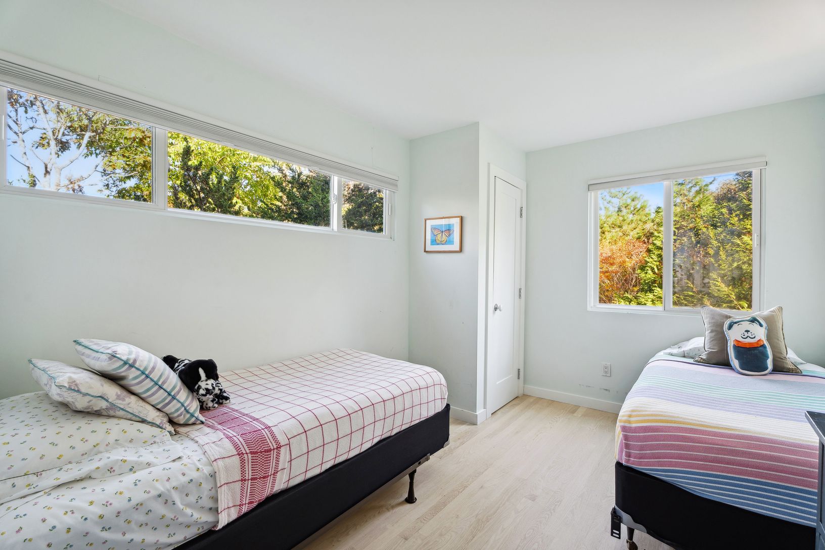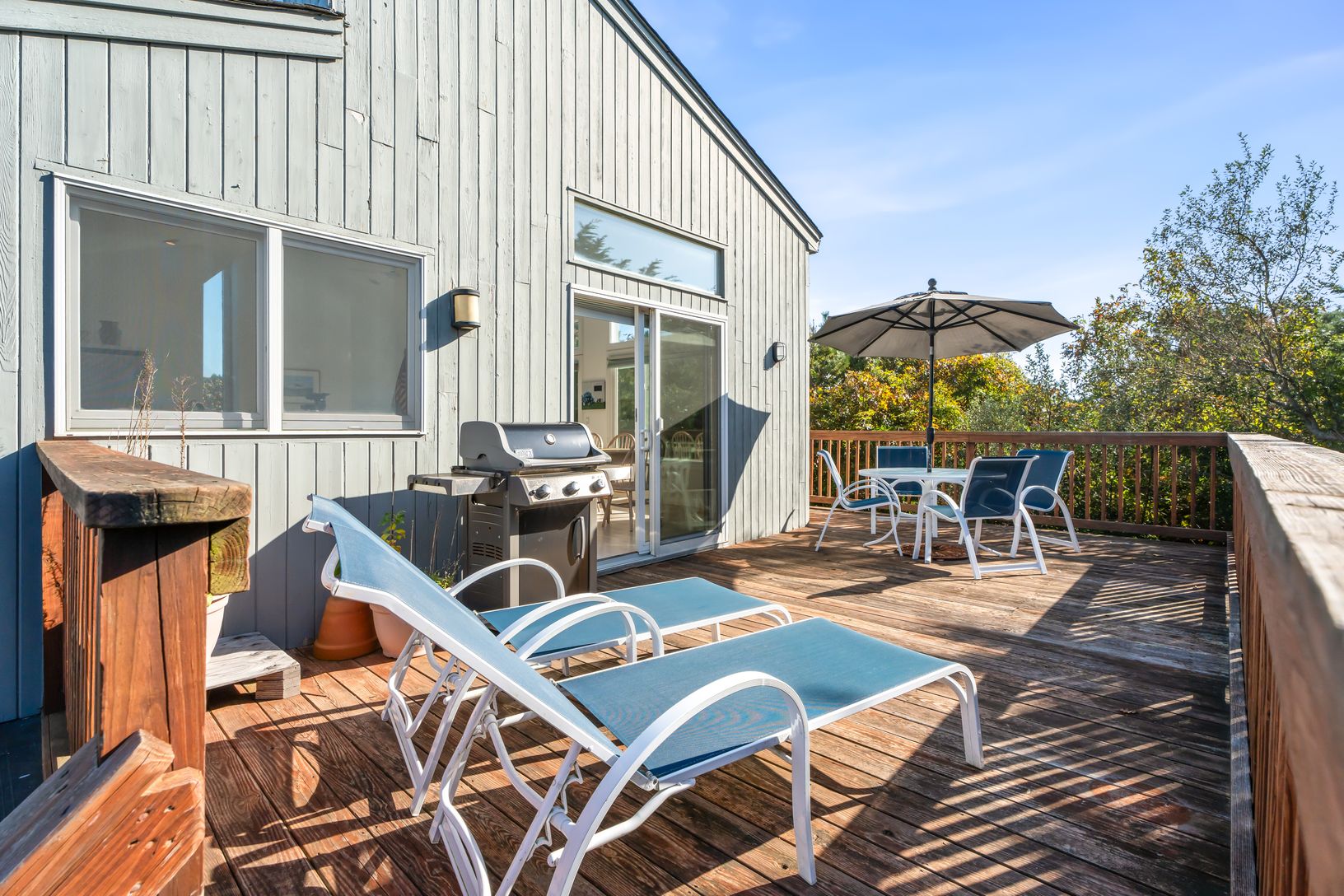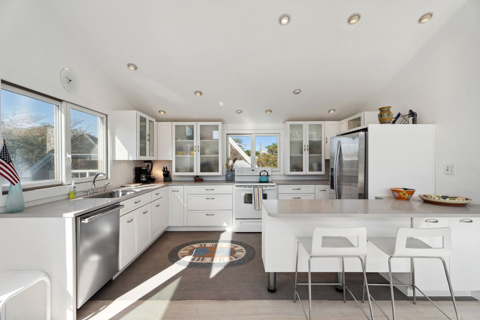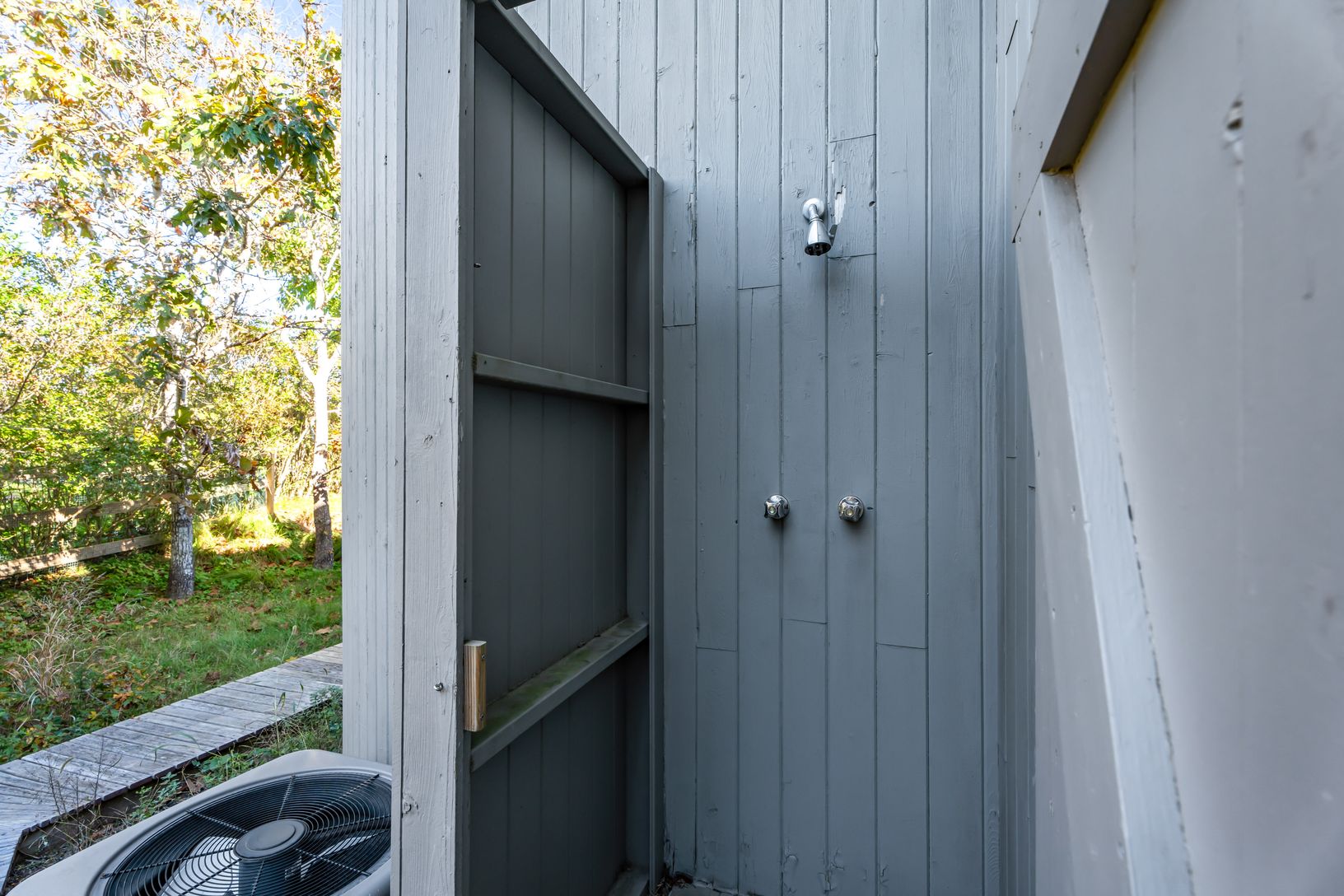 This house has just been reduced for sale in the Amagansett Dunes and is very close to the ocean beach. This cheerful upside down houses has a bright open concept living space upstairs with a large second story deck for grilling, dining or just sitting in the sun. Surf Drive is a double wide paved street, which makes access to the property easier than some of the tight Dunes streets. Downstairs, there are four bedrooms and two of them are e