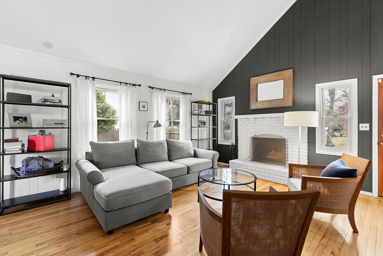 This charming 1600 sq ft three-bedroom, two-bath saltbox is situated on a beautiful 0.47+/- acre property. Features include a sun drenched living room, dining area, chef's kitchen with subzero refrigerator, Viking stove and carrera marble counter tops, central air-conditioning, and an awning-covered wrap around deck that is perfect for entertaining. The 0.47+/- acre property is beautifully plated with fenced in back yard. Located in the Spring
