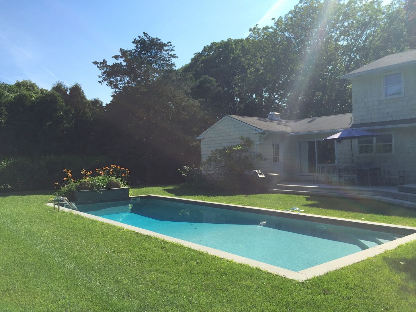 This beautiful home has just been completely renovated and expanded to double in size and has been perfectly decorated with a light beachy elegant feel. The five-bed/five-bathroom home has everything you will need for a great summer rental, including the bikes! The oversized chef's kitchen is equipped with Sub-Zero, Wolf, and Viking appliances and is open to the new living room with walls of glass and a formal dining area - perfect for enterta