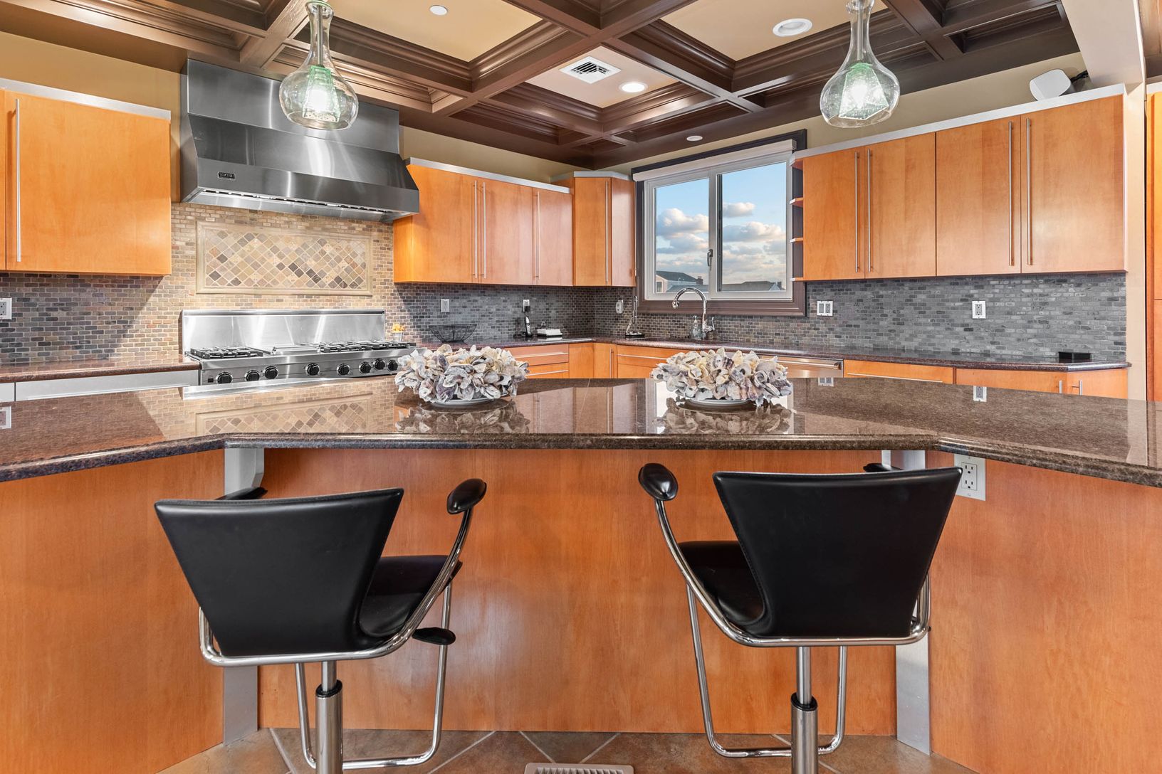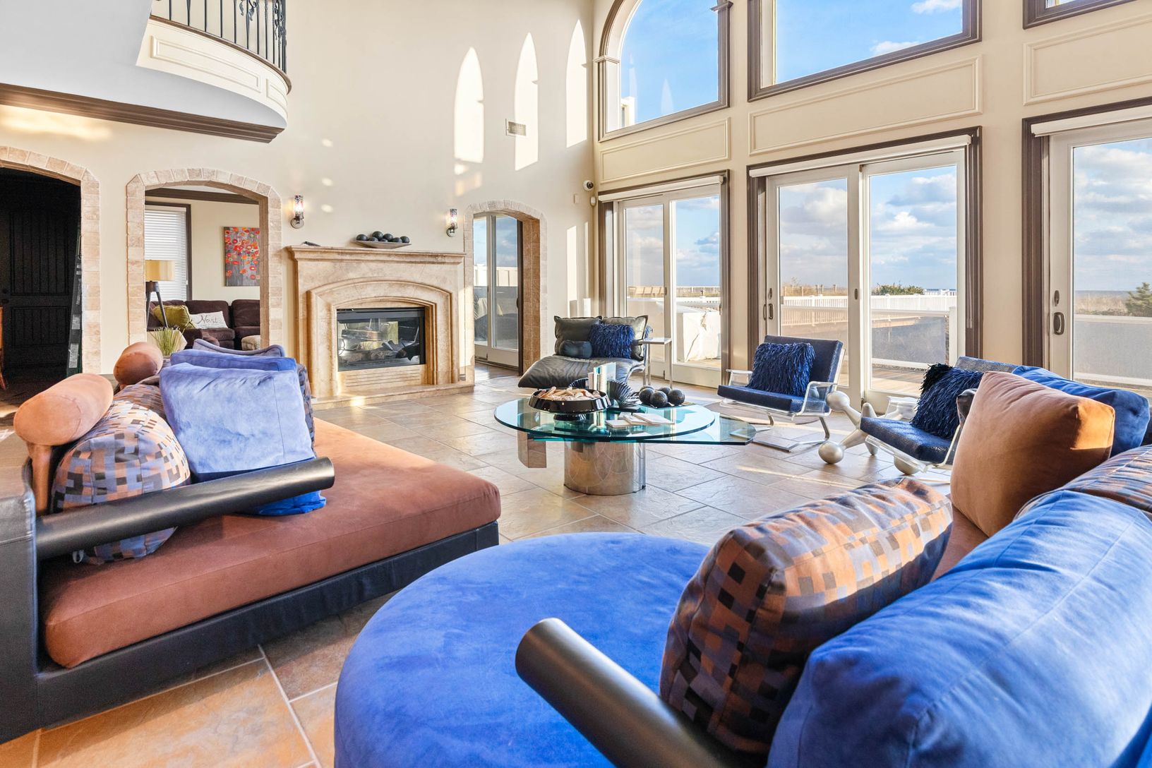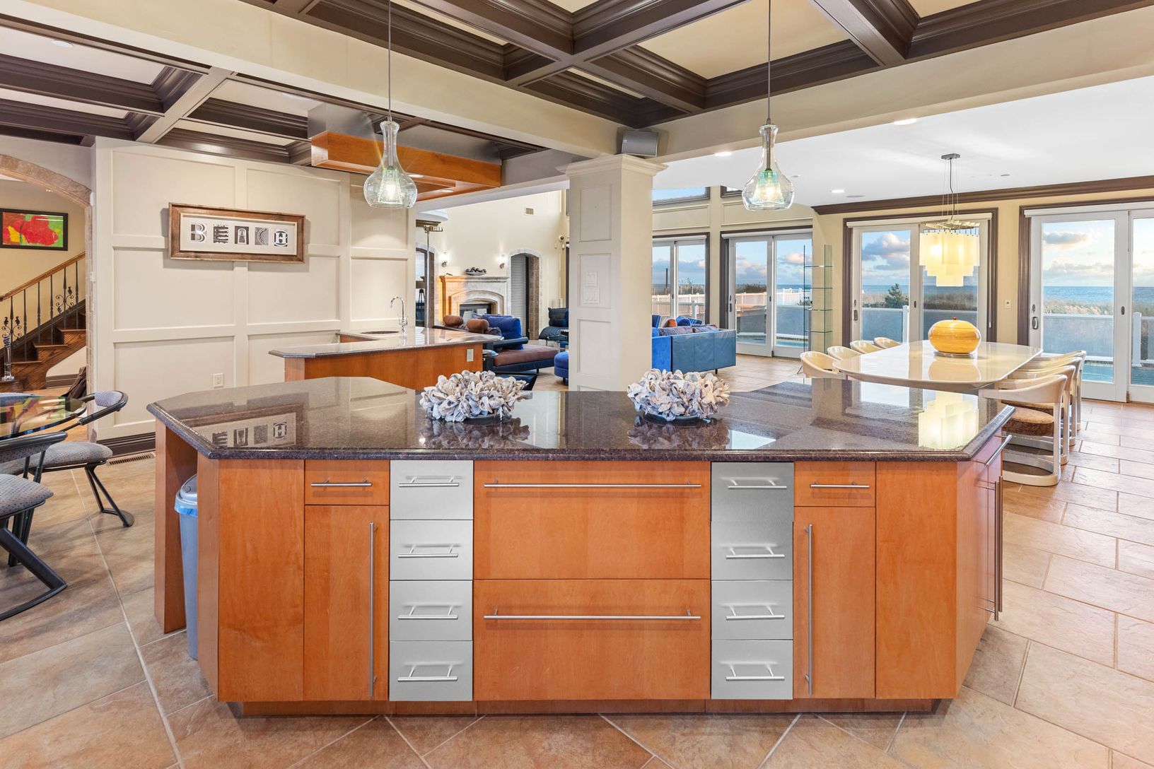This Westhampton Dune Oceanfront compound soaring high above the dunes is the pinnacle of Hamptons opulent ocean front living. The luxurious living space includes the finest of handmade finishes. The masterfully crafted kitchen features top of the line Viking appliances to please the most discerning chef, with beautiful custom Dakota Mahogany granite counter tops, sleek Maplewo