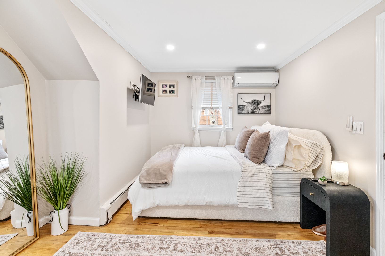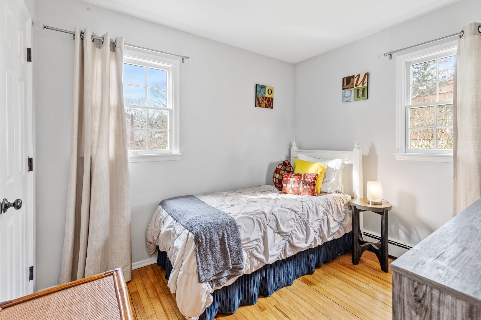 Enjoy this meticulously maintained light filled Traditional Cape. The open floor plan features 4 bedrooms, 2full bathrooms, central air, and a casual living room with a smart TV , dining area with doors leading to an attractive landscaped yard perfect for entertaining and quiet evenings. A welcoming kitchen with large eat in counter bar which features everything you need and fully equipped. If your a player, sponsor fan this home offers the