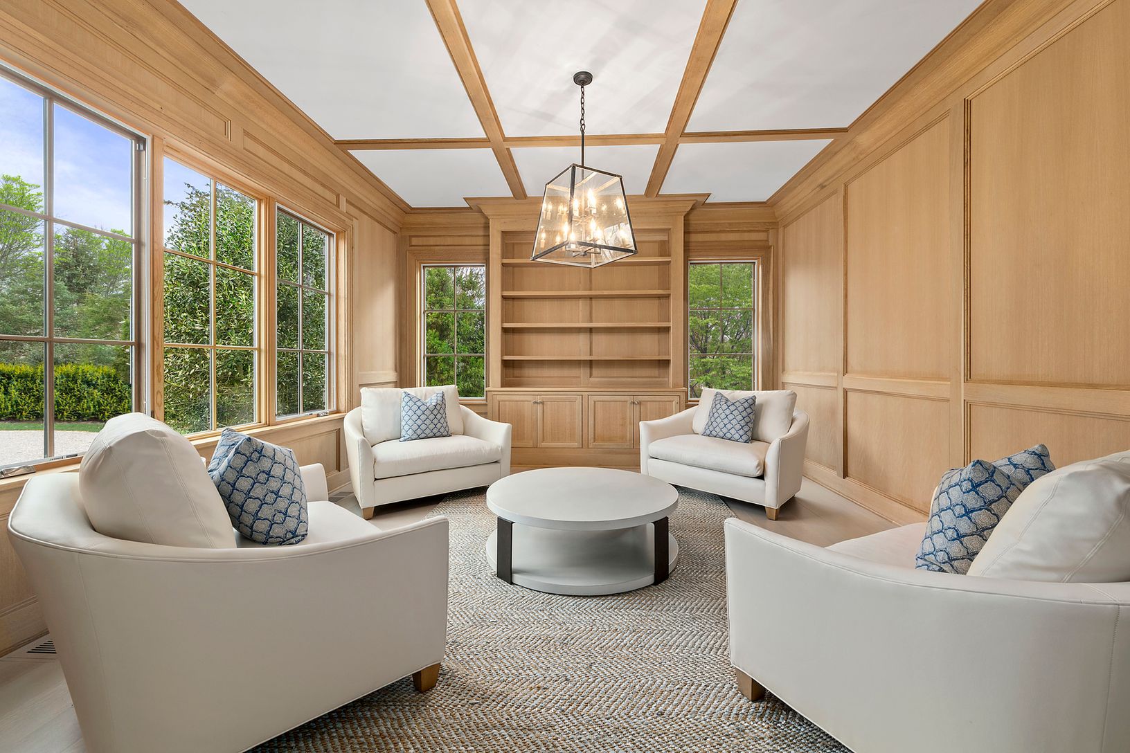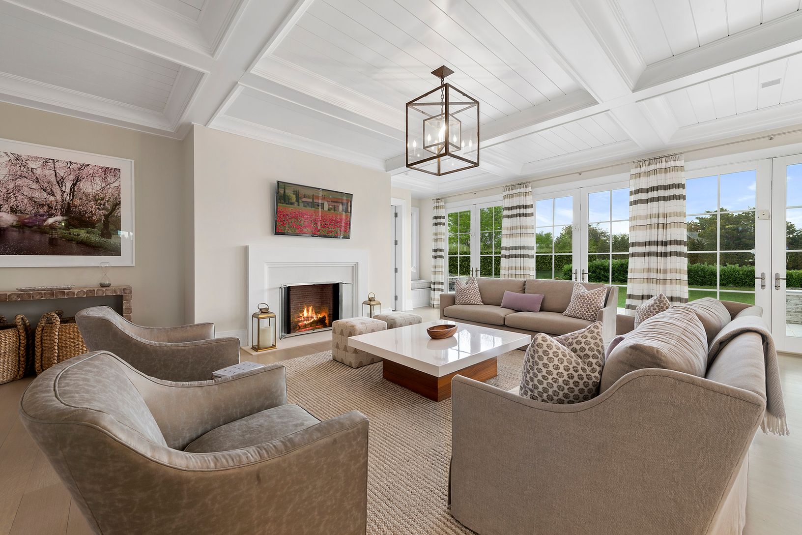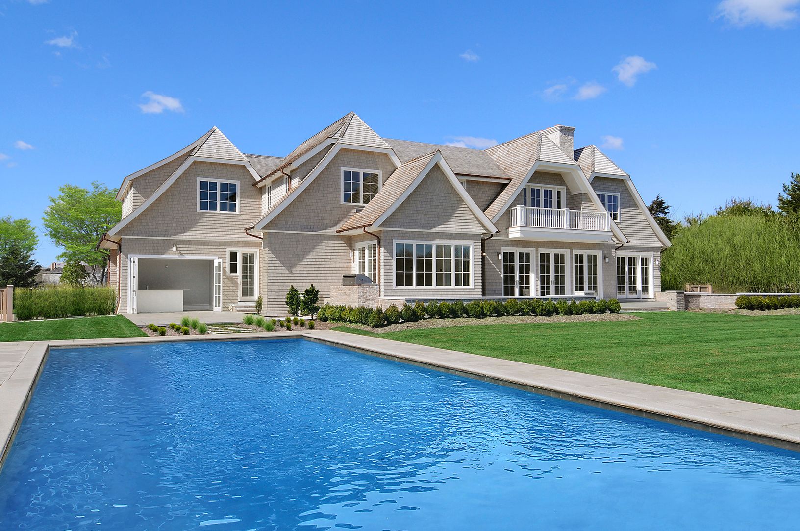 This new & refreshing shingled custom residence, with modern and open interiors, is perfectly sited on 1.4 acres of lawn, specimen plantings & trees, and just two short blocks to ocean. The home offers over 8,700 sq ft of open living space plus and finished lower level. The quality of craftsmanship and attention to detail is evident as soon as you enter the 2 story paneled entrance hall and great room with its coffered ceiling, firepla