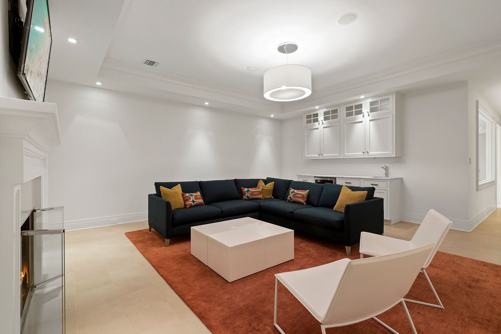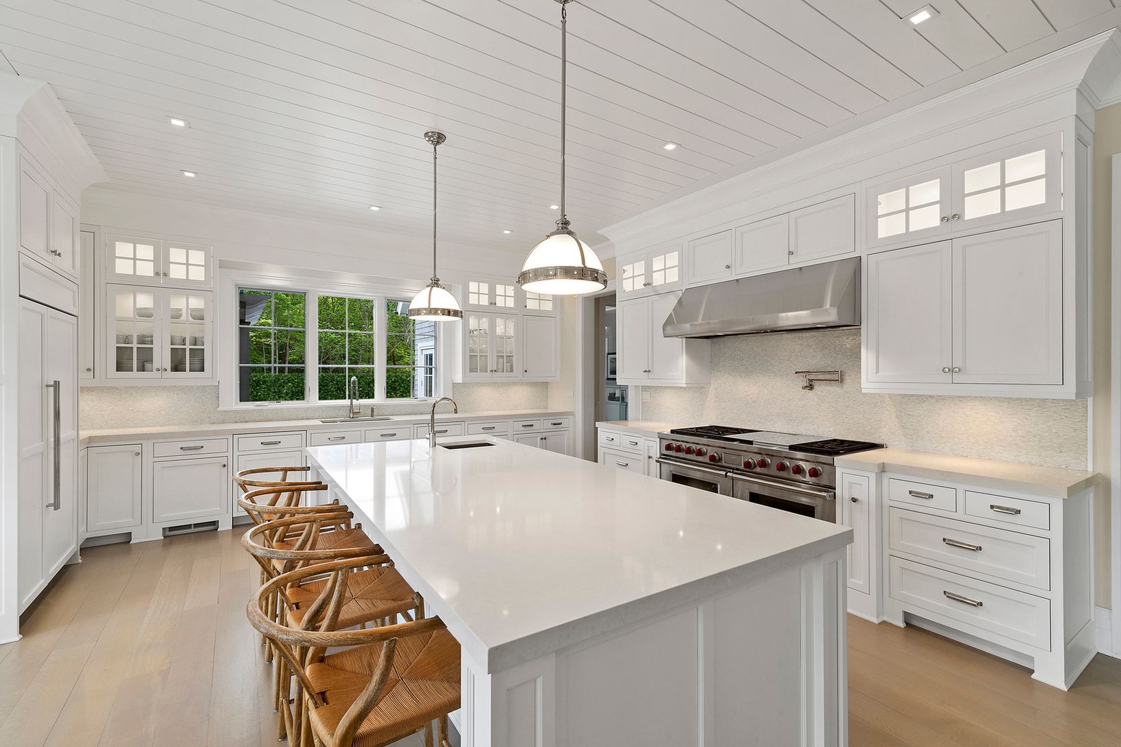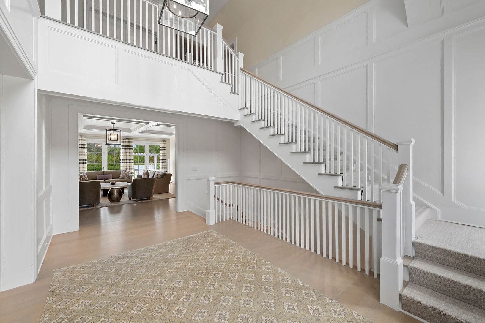 This new & refreshing shingled custom residence, with modern and open interiors, is perfectly sited on 1.4 acres of lawn, specimen plantings & trees, and just two short blocks to ocean. The home offers over 8,700 sq ft of open living space plus and finished lower level. The quality of craftsmanship and attention to detail is evident as soon as you enter the 2 story paneled entrance hall and great room with its coffered ceiling, firepla