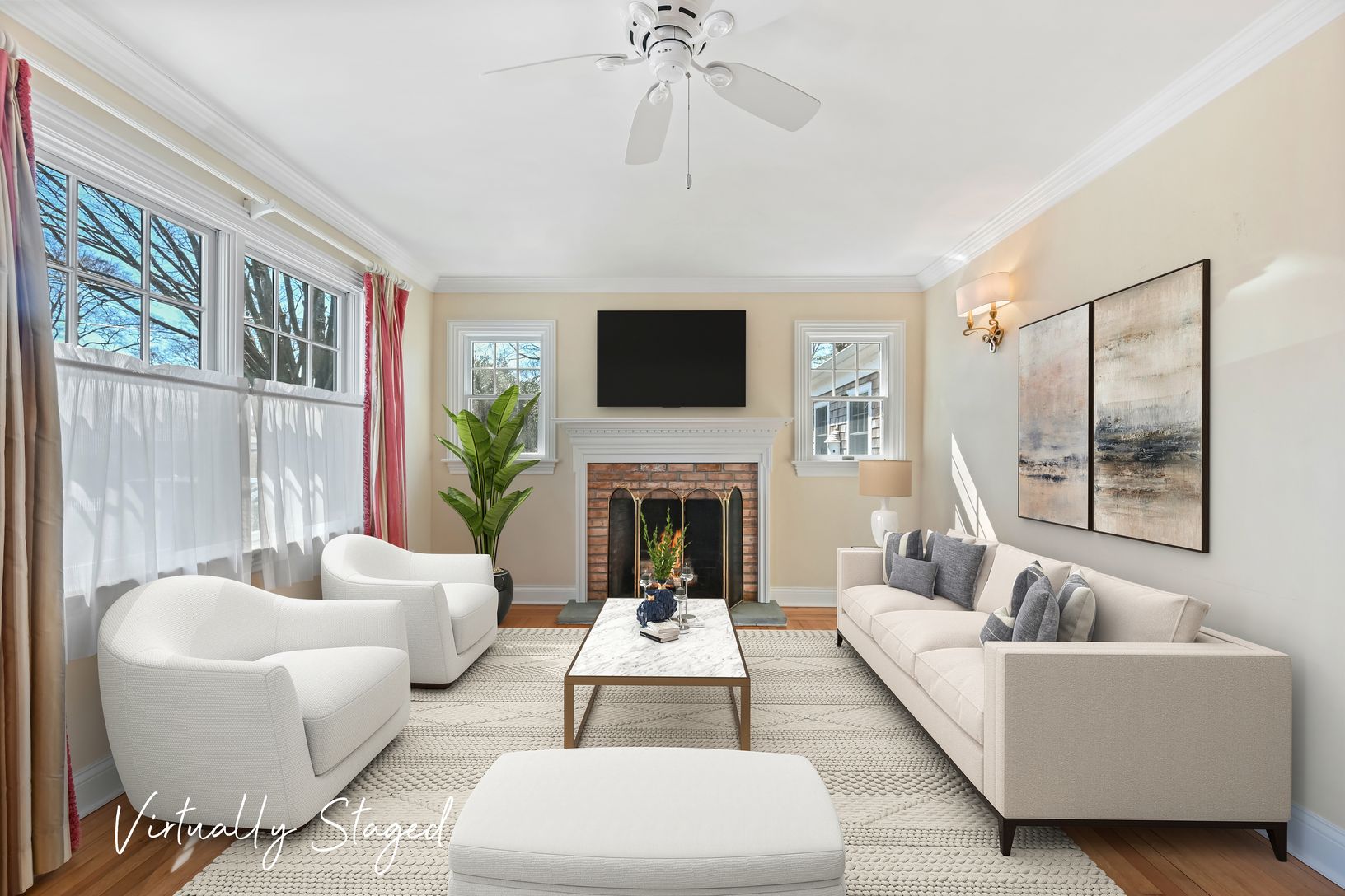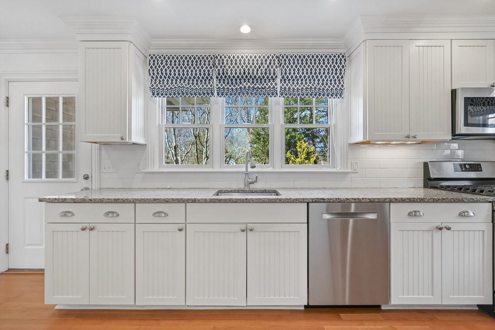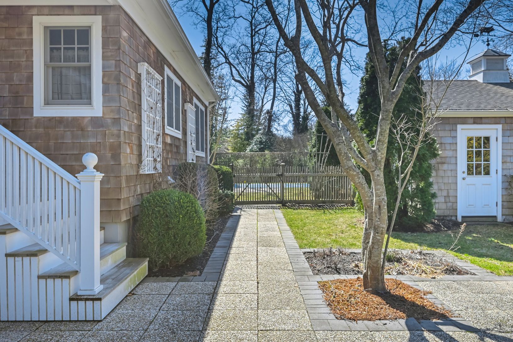 79 Fordham Road, Southampton. This newly listed traditional 2700 sq ft shingle home in the heart of the Village of Southampton is located on a one way quiet street. It is situated on a .38 acre lot and offers a sunny southern exposure overlooking magnificent mature perennial gardens, a salt water pool, and pool house. There is a cozy living room with fireplace. The house has a large gathering room that includes dining, sitting, bar area and of