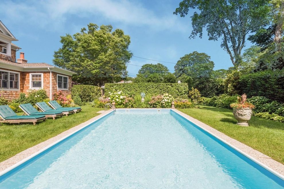 Just renovated shingled traditional with modern amenities and beautiful gardens on an extremely quiet street in the village of Southampton. A decorator's own home with charming living room with fireplace, a huge great room with a wet bar and office, spacious and well-designed eat-in kitchen and powder room. There are 4 bedrooms and 3.5 baths including the stunning master suite with a balcony overlooking the pool and property. The gardens are t