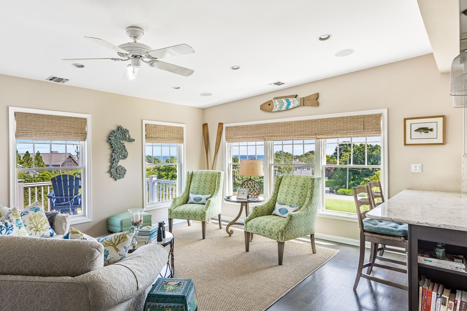 Located just a few short blocks to the ocean shore, this turn key Hither Hills home with deeded beach rights is updated to perfection. The 2,750+/- sq ft residence has four bedrooms, two full bathrooms, and a powder room. Upstairs features a new gourmet kitchen with pure drinking water filtration, custom dining area, cozy living room, den with stone fireplace, and expansive patio all overlooking the ocean. The master suite has a private update