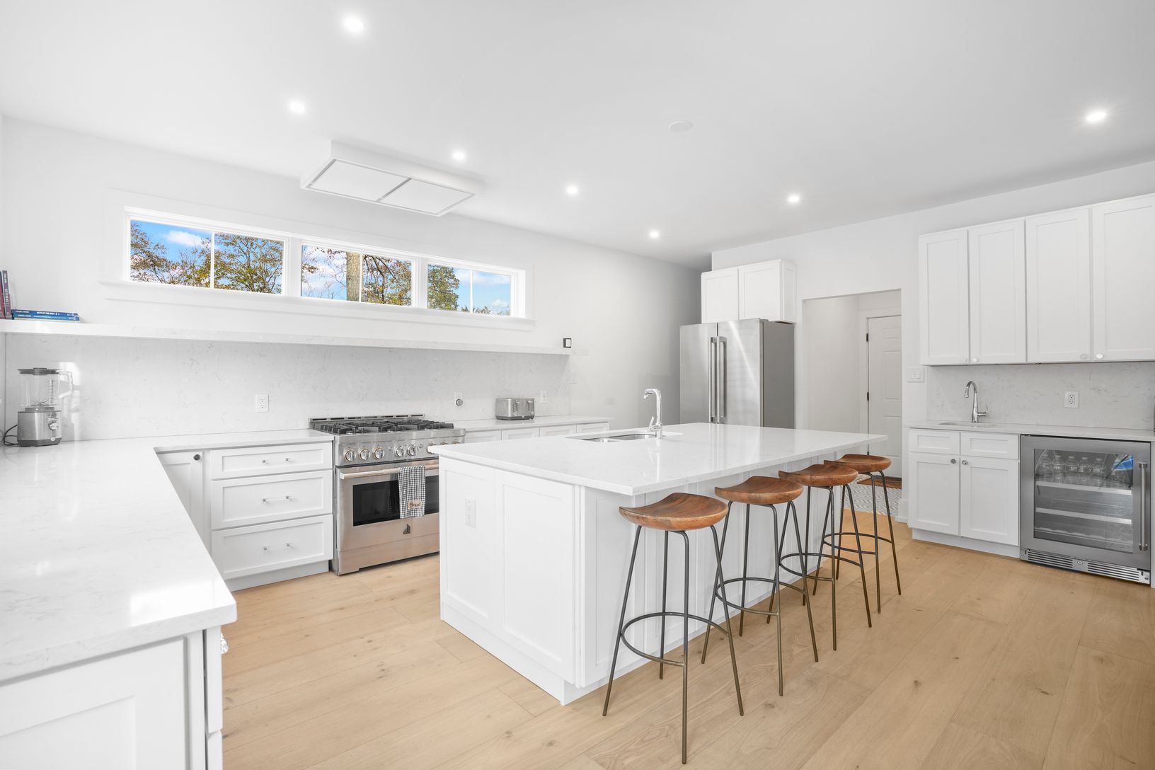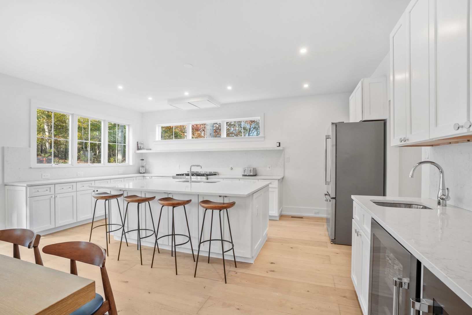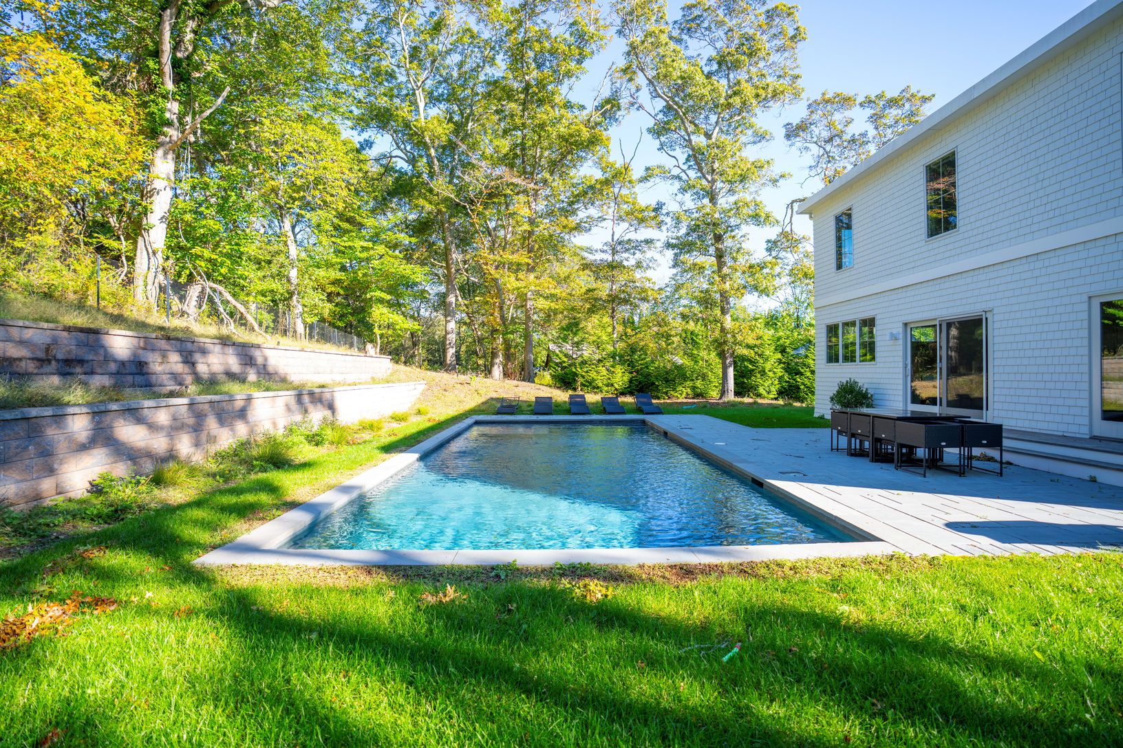 Introducing 79 North Bishop Lane - a stunning contemporary 5-bedroom, 6.5-bathroom home offering over 4,165 square feet of finished living space across three levels. Set on +/- .44 acres just minutes to Southampton Village, the property features an 18' x 36' heated gunite pool with sundeck, bluestone patio, marbled gas fireplace, outdoor shower, and beautifully landscaped grounds. Inside, the home is thoughtfully designed with crisp white oak