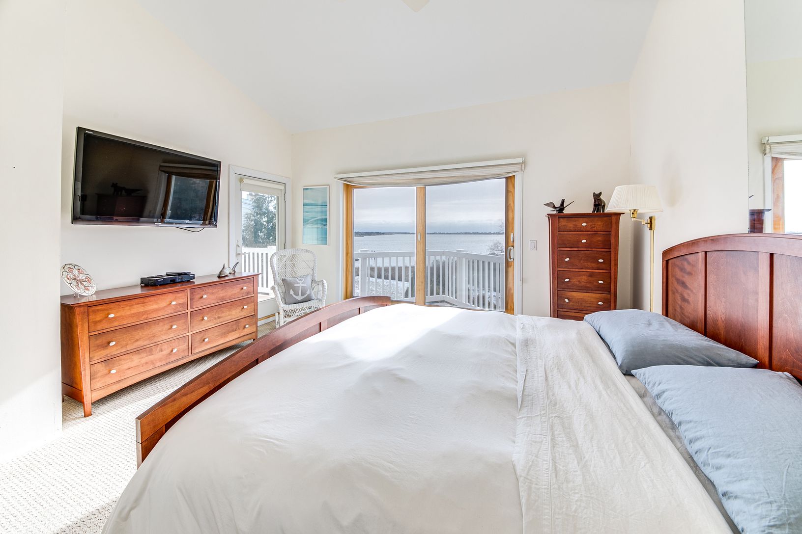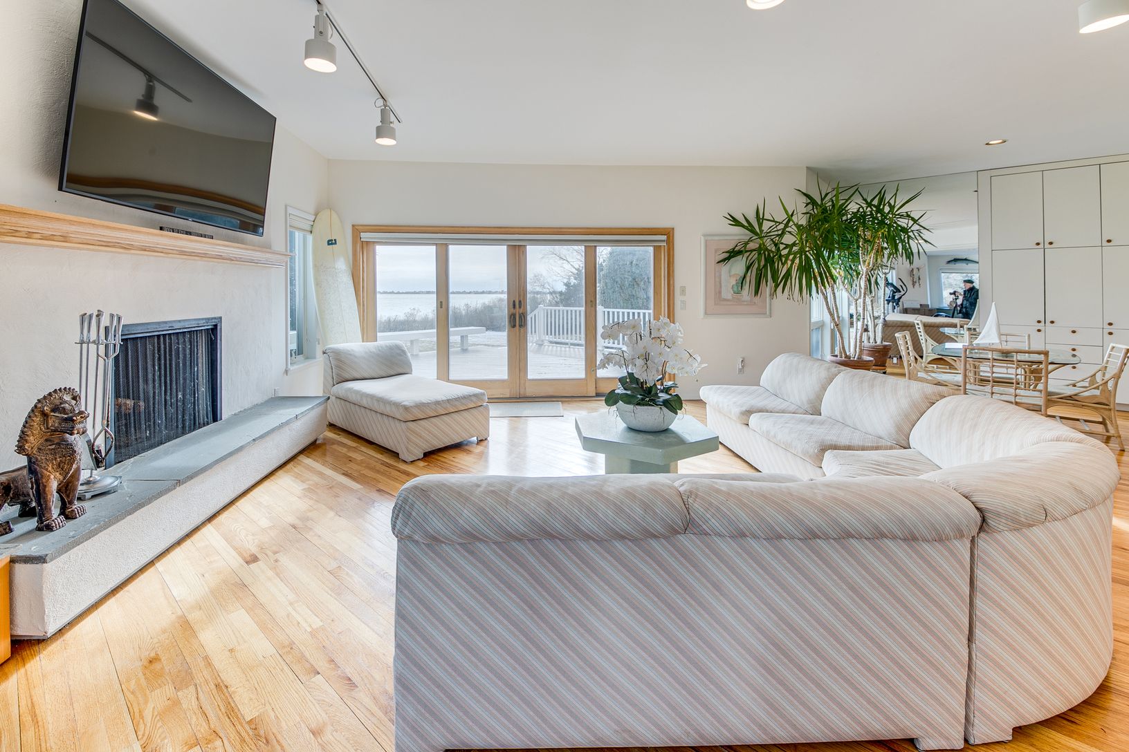 This three bedroom waterfront condo sits centrally located in Westhampton overlooking Moriches Bay. A wall of doors and windows invites you outside to a lower level deck with grand water views. There is a possibility to add a fourth bedroom on the main floor. All bedrooms are ensuite and feature high ceilings plus private balconies with views. This property also offers a dock - making it a boater's dream, with easy access to the Shinnecock Bay