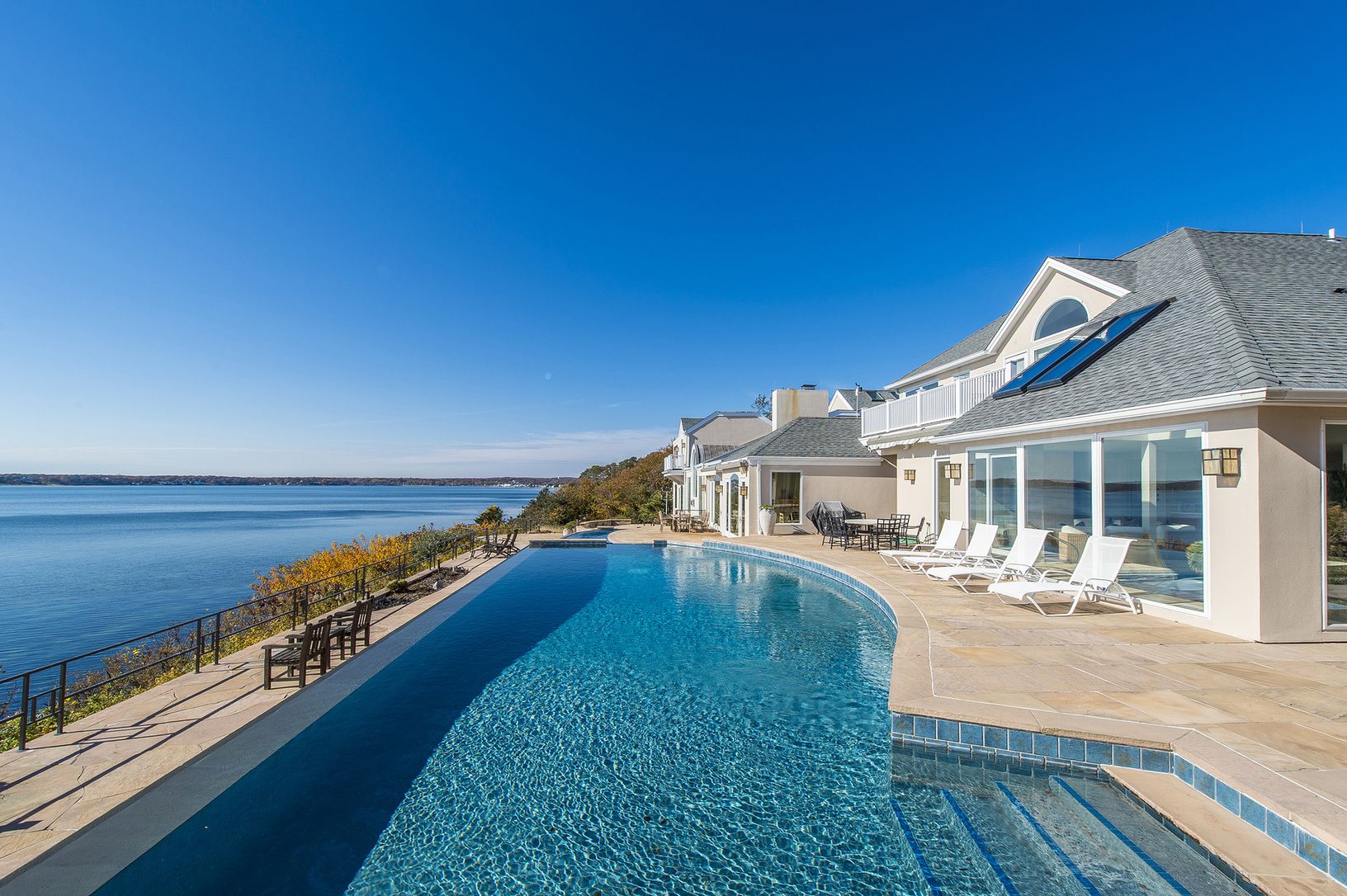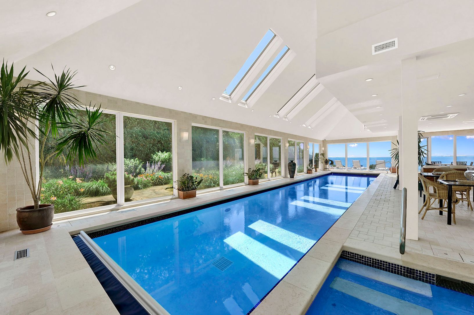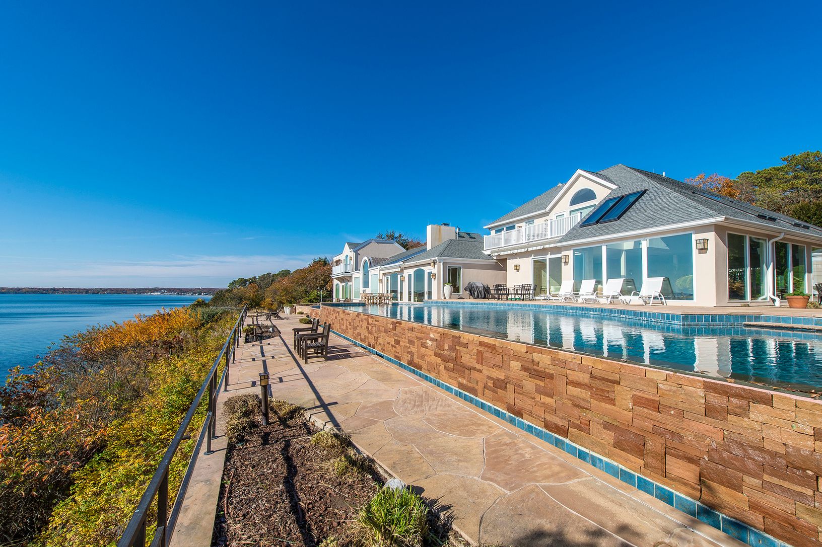 This classic villa has it all, including 200 feet of open bayfront property with panoramic views and spectacular sunsets overlooking the Shinnecock Bay and Atlantic Ocean. The villa offers an elevator that services all three floors,a soaring great room, media/game room, spacious gourmet kitchen with breakfast nook. There are two pools, one is an indoor 14x50 lap pool overlooking the bay with Jacuzzi, two saunas, two steam showers, gymnasium, w
