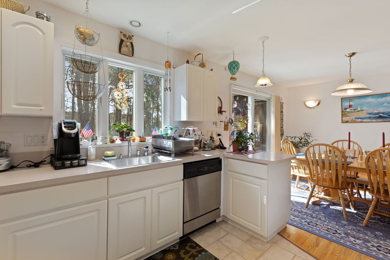 Located across from Peconic Bay beaches and at the end of a private cul de sac, fall in love with this like new Cape-style home built in 2003 and featuring many upgrades. First floor includes the master bedroom with an over-sized master bath, an eat-in kitchen, formal dining room, large den with a wood burning fireplace and continuing conversation area and a powder room to complete the main level. The second floor offers two additional bedroo