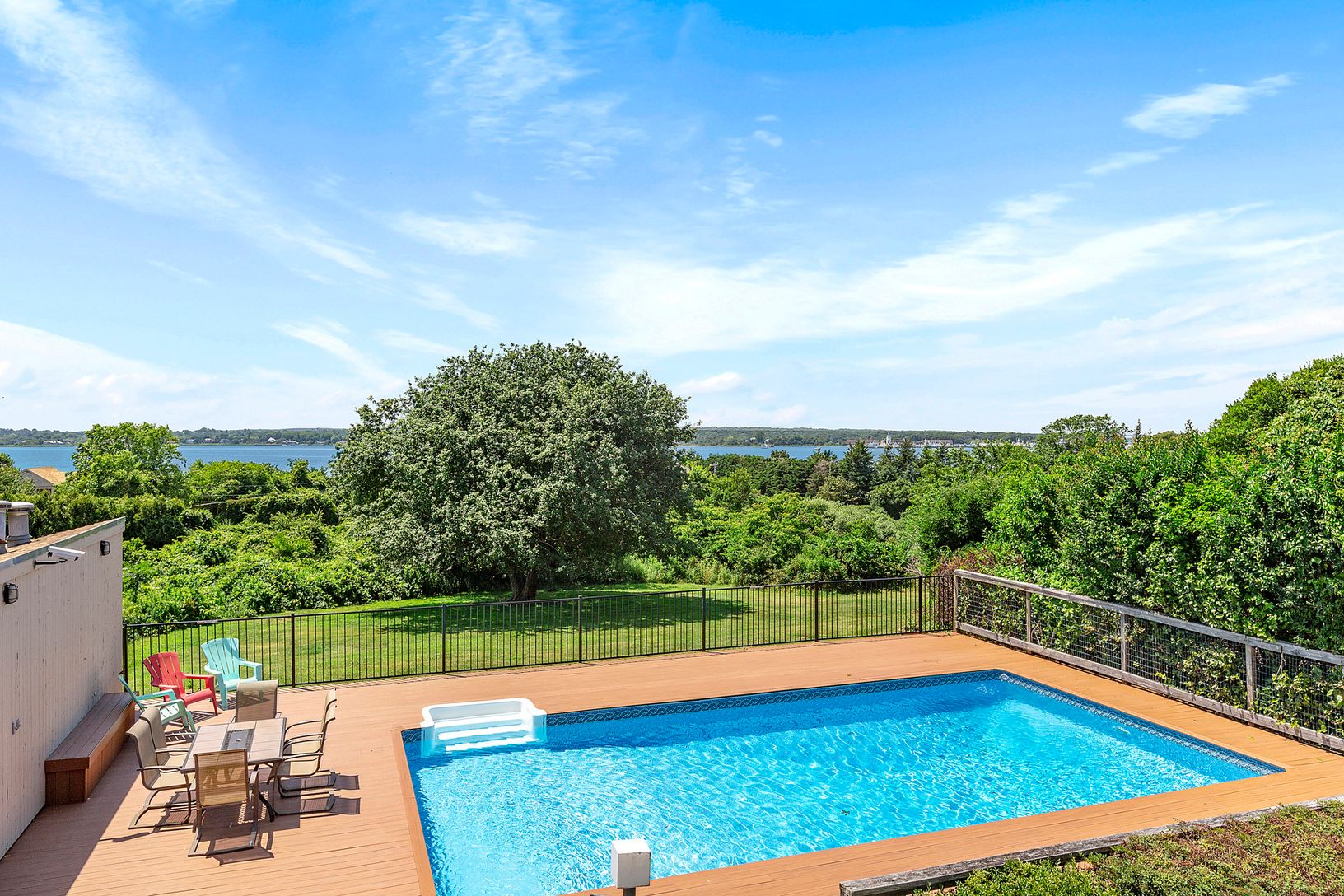 Rental Registration #: 18-2552 Captivating five bedroom and three bathroom contemporary Montauk East Lake gem with 180 degree lake and sound views. This 4,000 sqft property rests in the most quiet area of Montauk surrounded by gentle preserved landscape and nature trails. Relax and enjoy the water views by the pool which rests among a lush green yard, pool house and outdoor shower. The main floor features a newly updated kitchen with stainless