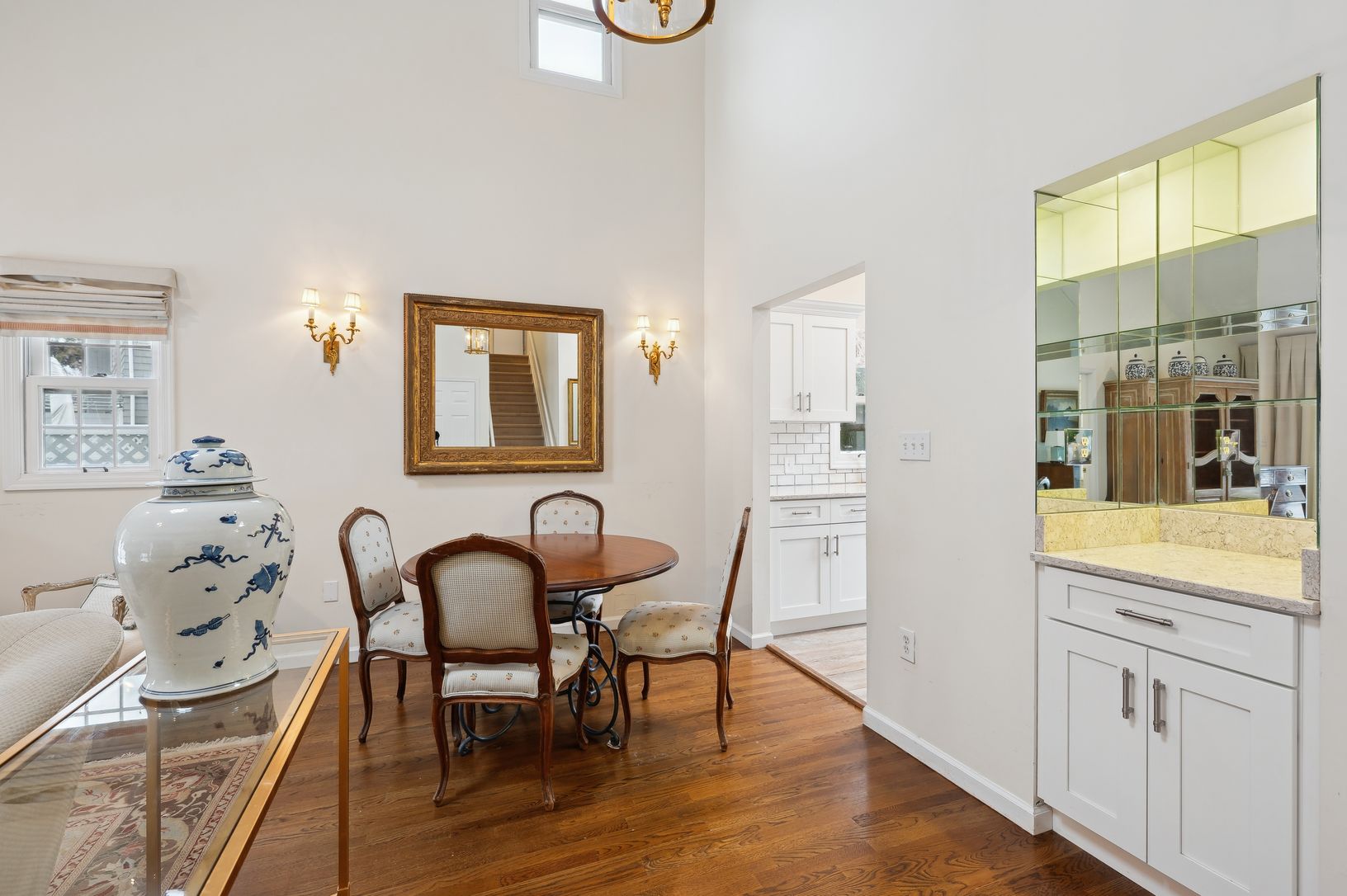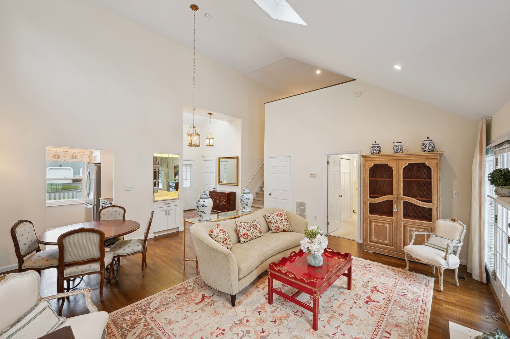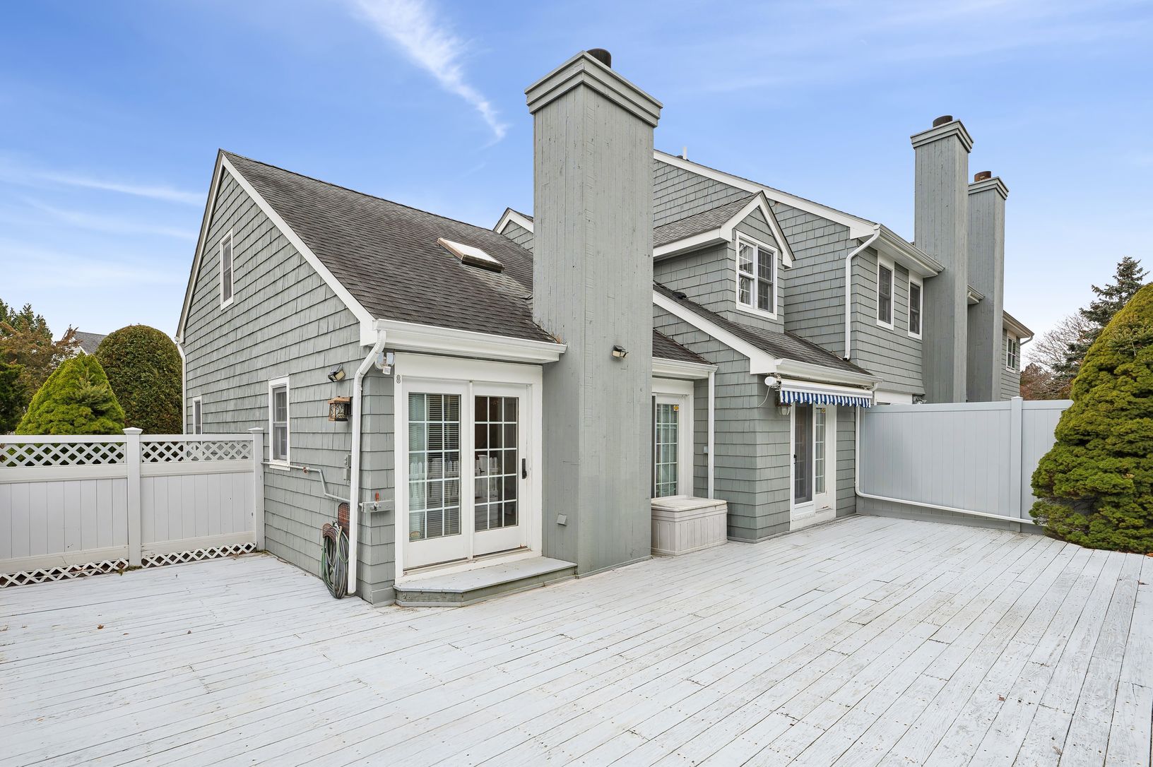 Don't miss this rare opportunity to own an end-unit in the highly sought-after Patio Villas condo complex. Enter the foyer, complete with two spacious closets, to be greeted by a light-filled great room featuring soaring double-height ceilings, a cozy wood-burning fireplace, and two French doors leading to an expansive back deck. The open layout easily accommodates a dining area, making it perfect for entertaining or everyday living. The updat
