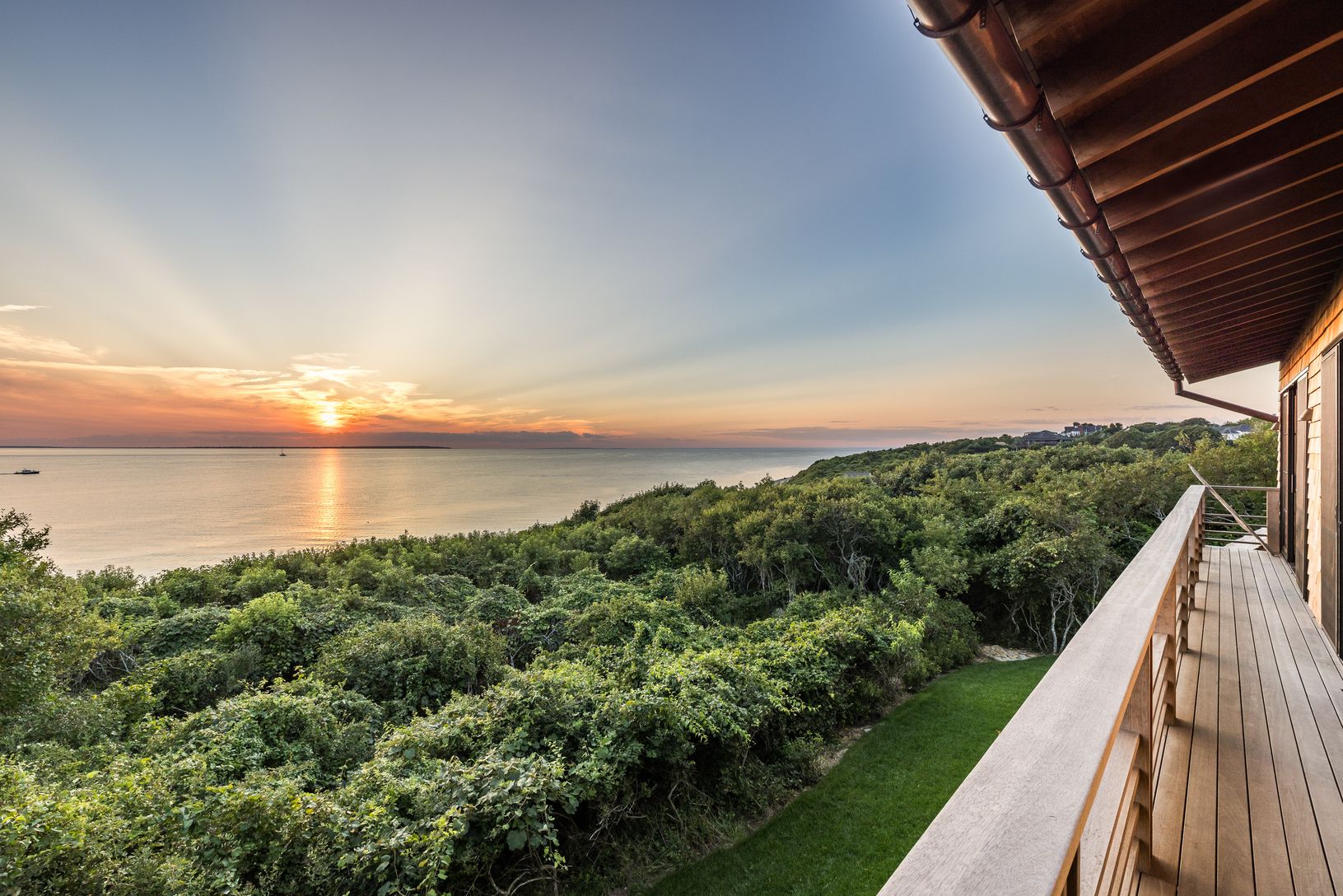 Studio Robert McKinley brings you his latest work from the sandy shores of Fort Pond Bay in Montauk's Culloden Point. Perched comfortably on a bluff outside of any flood risk, this stunning west facing property boasts sunsets, 1.6 +/- acres, 215' +/- of bay frontage, and a deeded path to beach. It is privately situated at the end of a cul-de-sac and up a long driveway, ideal for the one looking for complete privacy, peace and quiet. Open fl