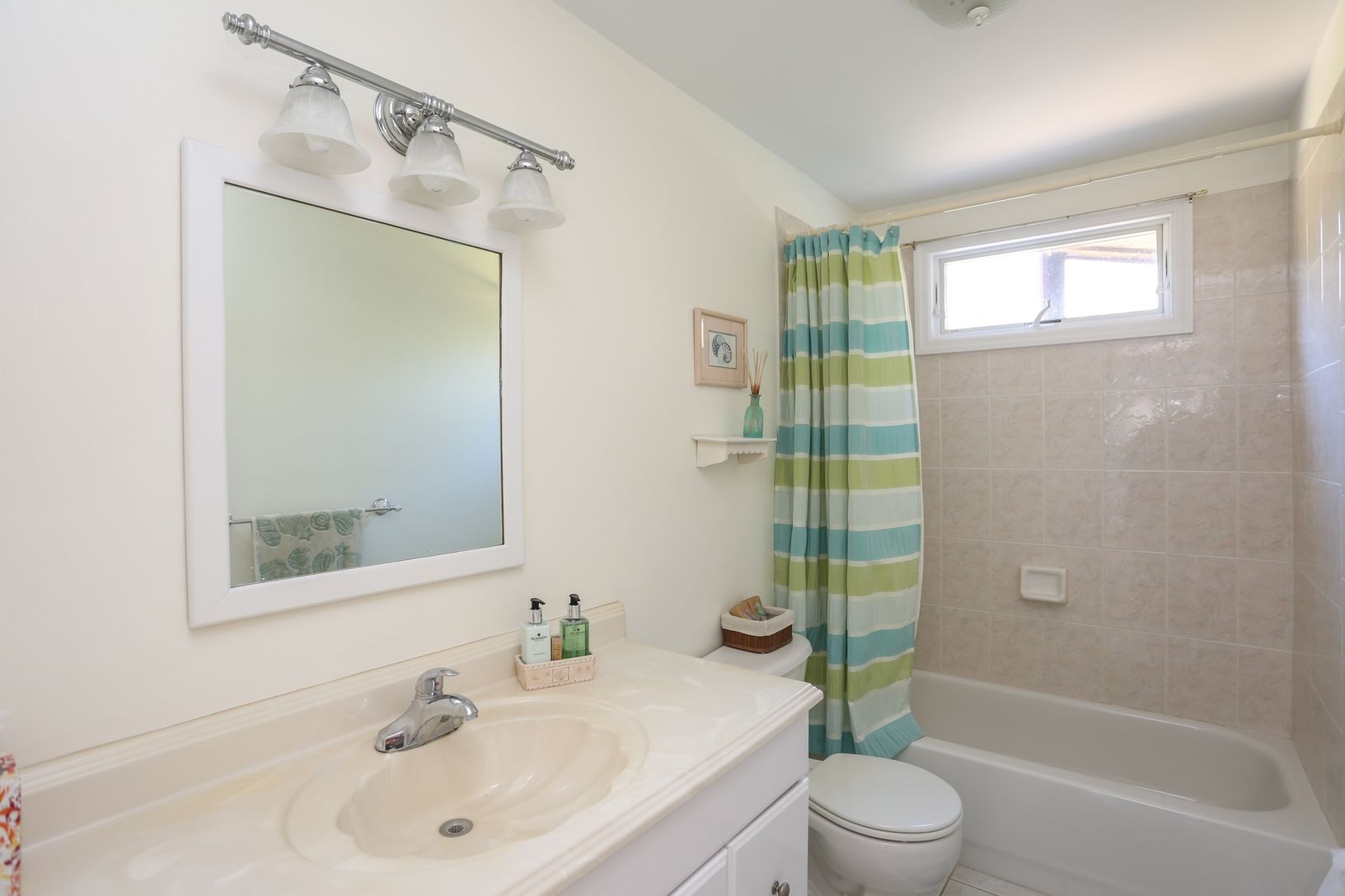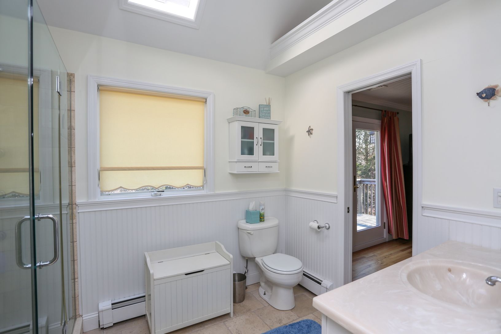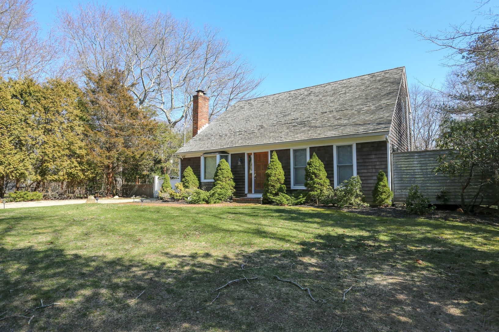 'This quaint cedar shake saltbox, has this nautical inspired interior. Simple style and great taste of colors warm up the homes interior bed rooms and great room.