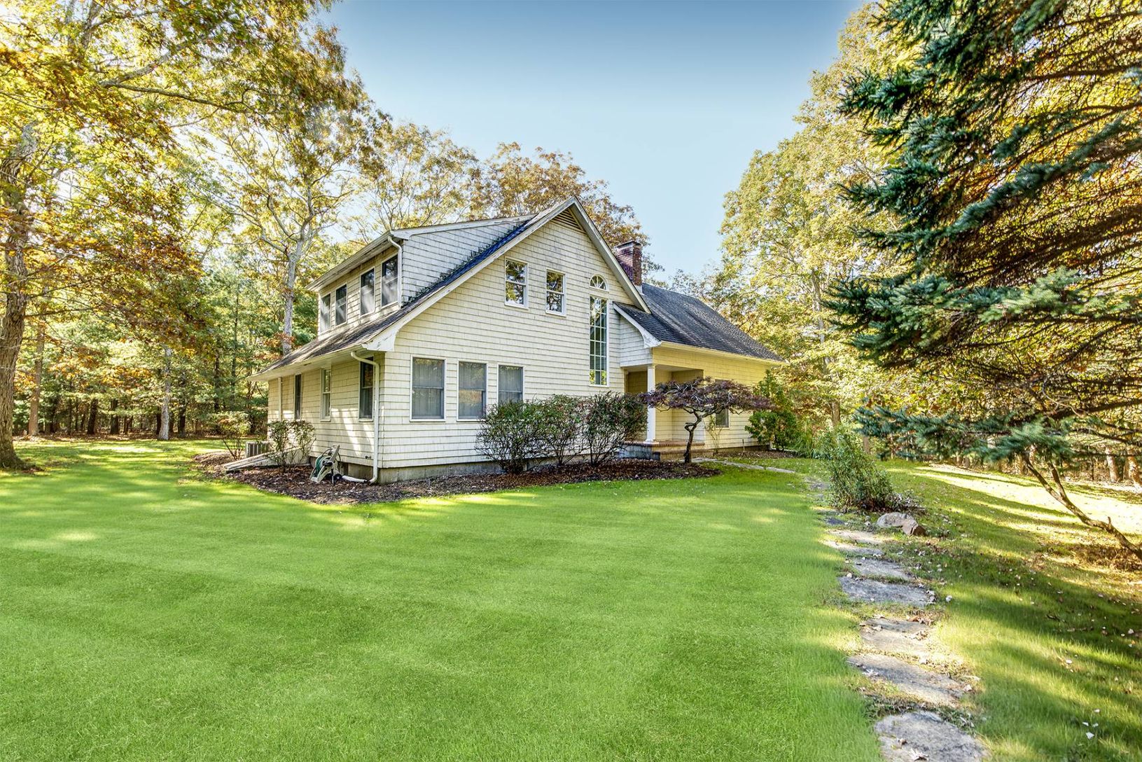 Rarely does a 2300+ sq.ft. home on 1.92 acres abutting reserve on a cul-de-sac street arrive to market in East Hampton's Northwest Woods at such an excellent value. The 2300+ sq.ft two-story cedar shingled residence features a primary suite on the main level, three guest rooms that share a full bath on the second floor, a sunken living room, formal dining room, and kitchen with laundry area and mudroom adjacent. A worthy asset for first-time h