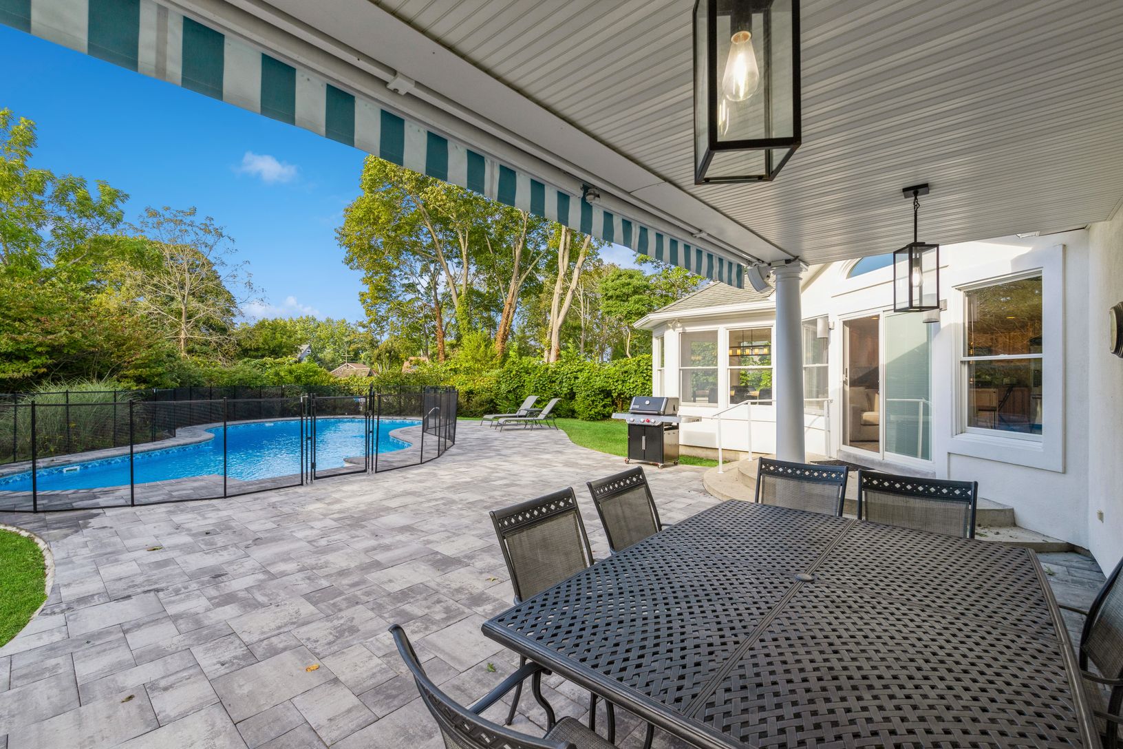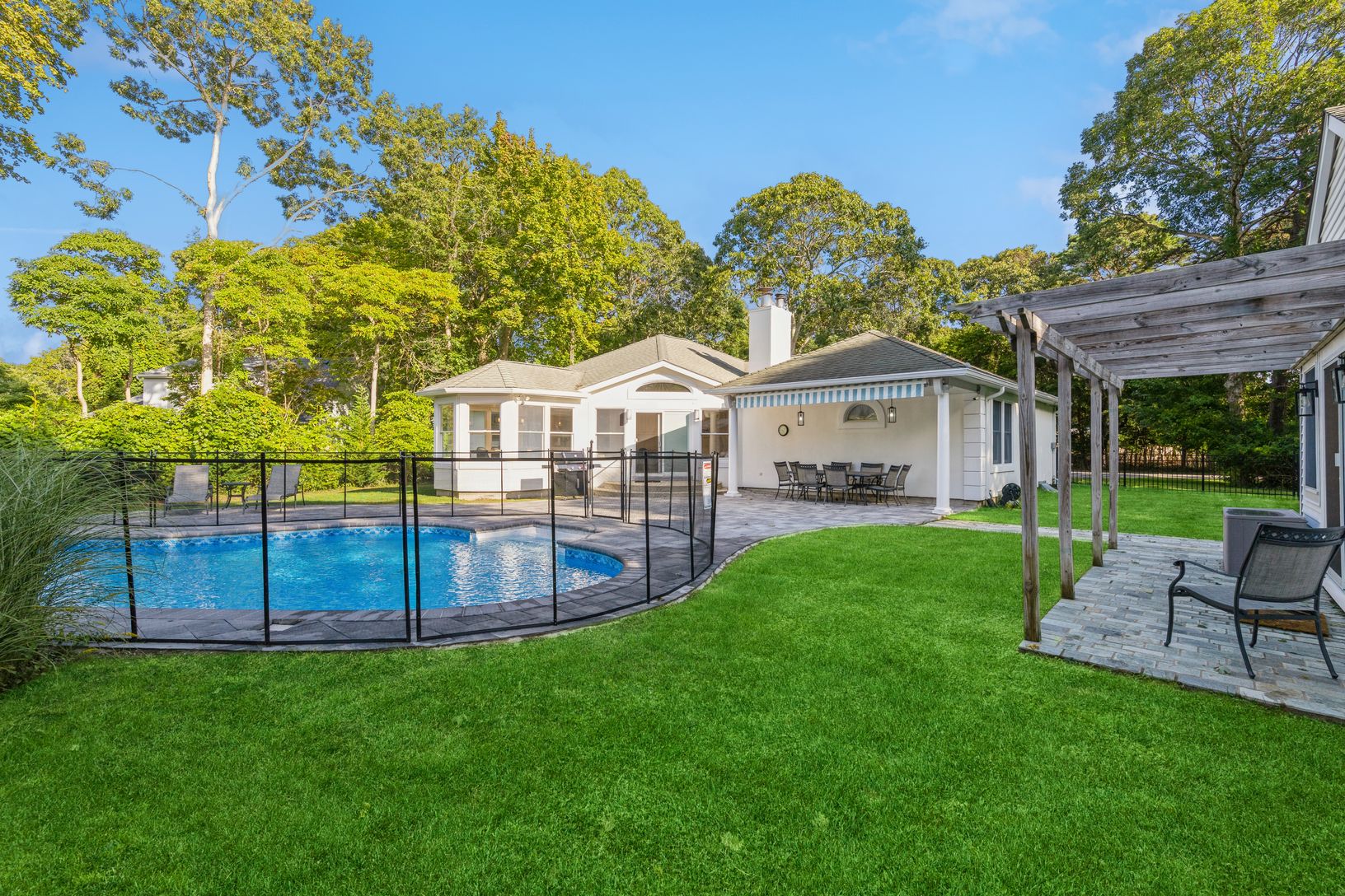 This perfect getaway in Hampton Bays epitomizes Summer in the Hamptons with its close proximity to all the gorgeous bay beaches, restaurants, and shops. It offers an open floorplan living area with fireplace, dining room, kitchen, en-suite primary bedroom and two guest bedrooms. For an added bonus, there is a beautiful pool house with full bath as well. The stunning in-ground heated pool is surrounded by a meticulously landscaped yard. situate
