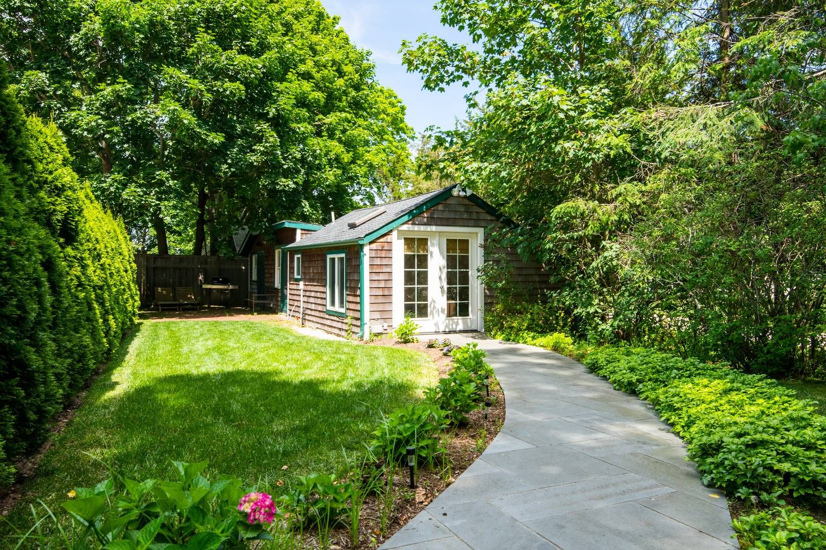 This stunning summer getaway is situated just 1.5 miles to Sag Harbor Village and Long Beach and features three structures on one perfectly maintained property. The main house is newly built and features a brick mudroom entry with heated floors leading into the main living spaces. The kitchen is fully equipped with top-grade stainless appliances, wine fridge and bar, and formal dining area. The living room is cozy with a fireplace, and large f