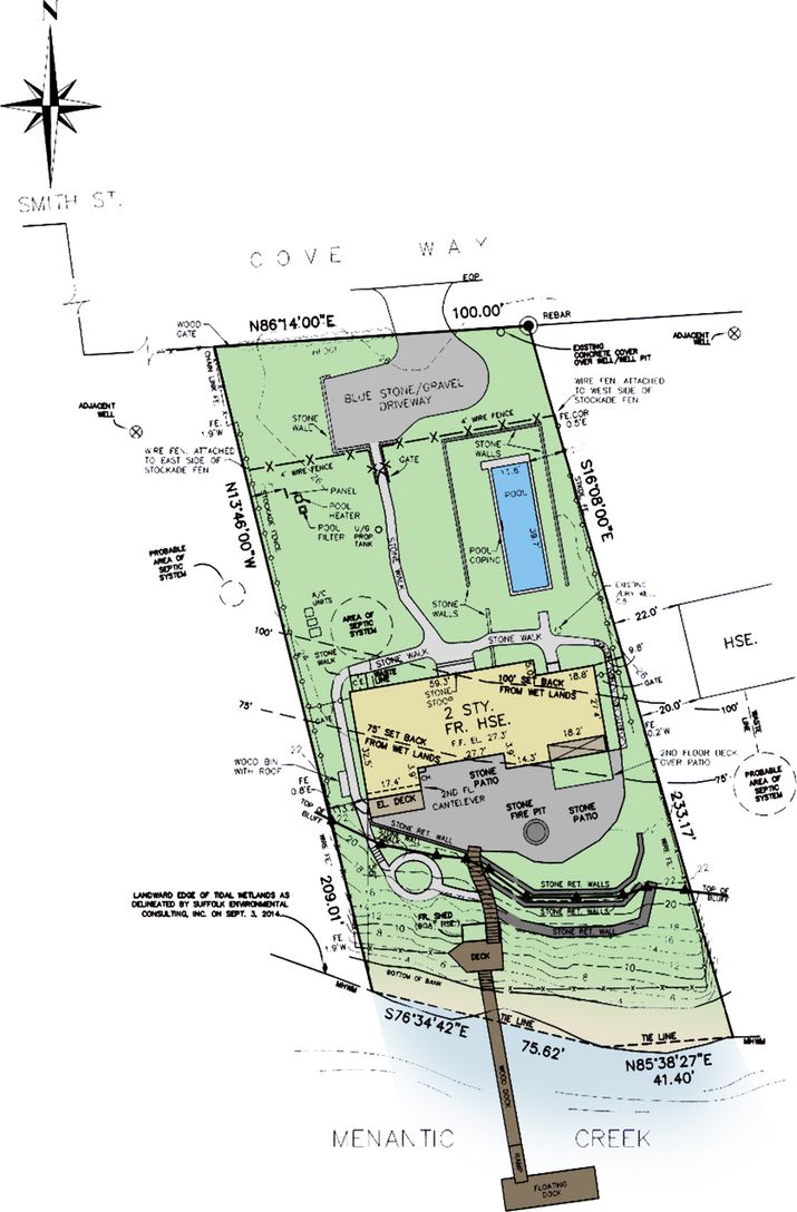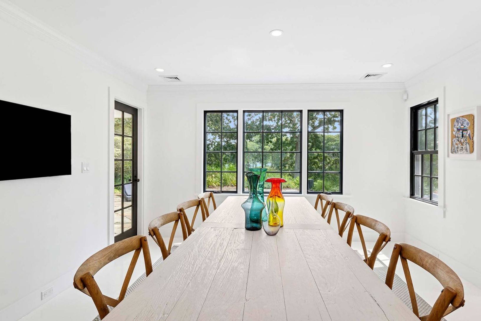 Enviably located on Shelter Island's southern coast with 113' of waterfront on Menantic Creek, this half-acre property was fully reimagined in a high-end 2017 renovation that left no detail overlooked. Offering 3,676 +/- square feet across 2 levels, the home includes 4 bedrooms, 5 baths, 2 fireplaces, a heated gunite pool, outdoor kitchen, firepit, specimen gardens, and a private deep-water dock. A true boater's paradise and moments from the f