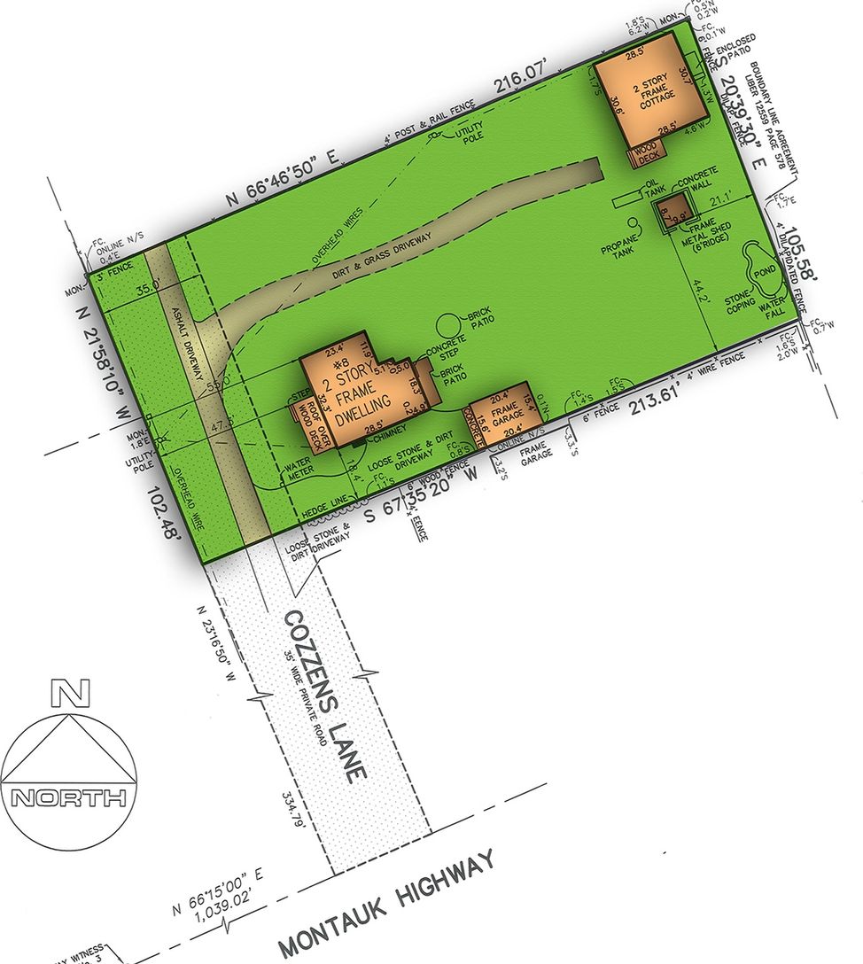 Absolutely unique half acre property in the middle of coveted charming Amagansett village. Steps to shops, transportation and dining, this former farmhouse, with original 875 sq ft, two story timber frame barn and detached garage in the rear is an open canvas to develop anew. Adjacent acres of reserved agricultural lands, restore the older outbuildings and build a new home with up to 3,833 sq ft GFA total allowed on the property. Plenty of roo