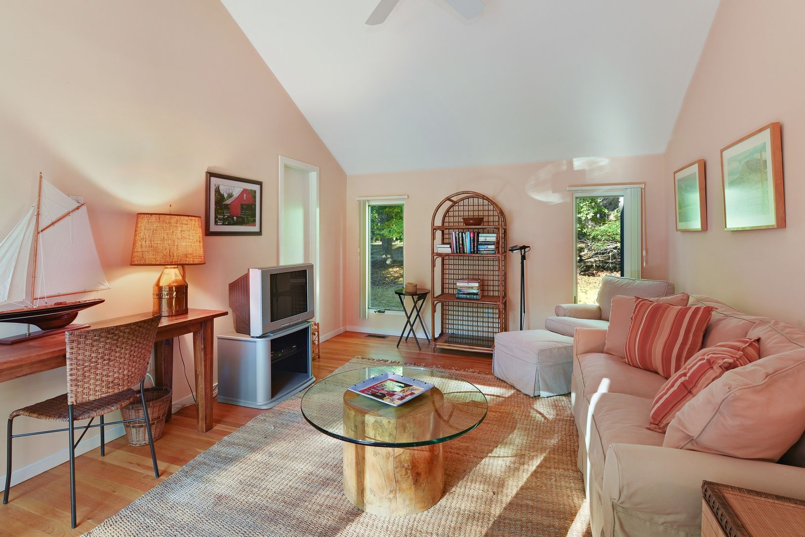 Nestled deep in nearby Hansom Hills, less than 2 miles to downtown East Hampton, this easy one-story home offers seamless indoor-outdoor living. Its great room and other living spaces open onto the expansive double-decked backyard and pool, and enjoy a desirable south and west orientation for sunfilled days. A fabulous screened porch for lounging and dining al fresco also connects directly to the great room and open kitchen. With 4 full bedroo