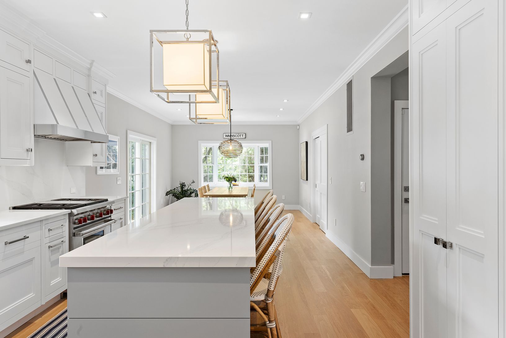 Bakes & Kropp kitchen with Wolf/Sub Zero appliances and a Bakes & Kropp master bath with THG fixtures are just two of the highlights in this newly renovated coastal chic home in the coveted hamlet of Wainscott. Centrally located between Bridgehampton, East Hampton and Sag Harbor villages, this stunning home is within minutes to the ocean beaches. Upgrades include white oak flooring, a marble gas fireplace, custom lighting, California c