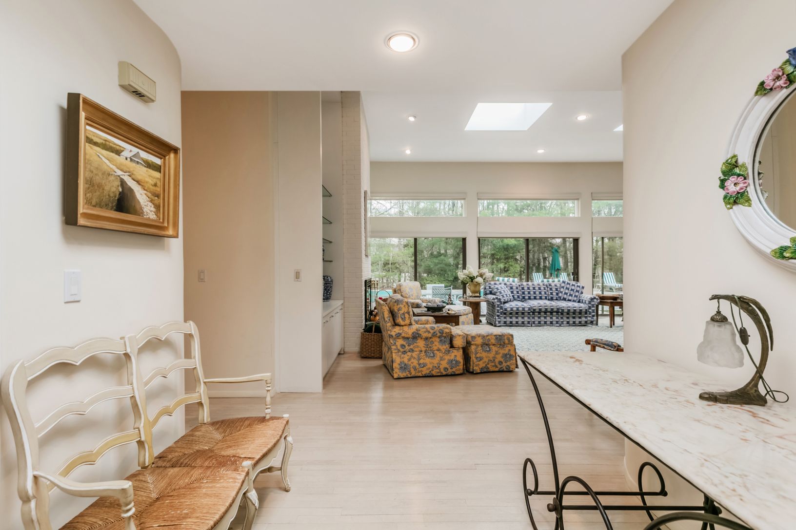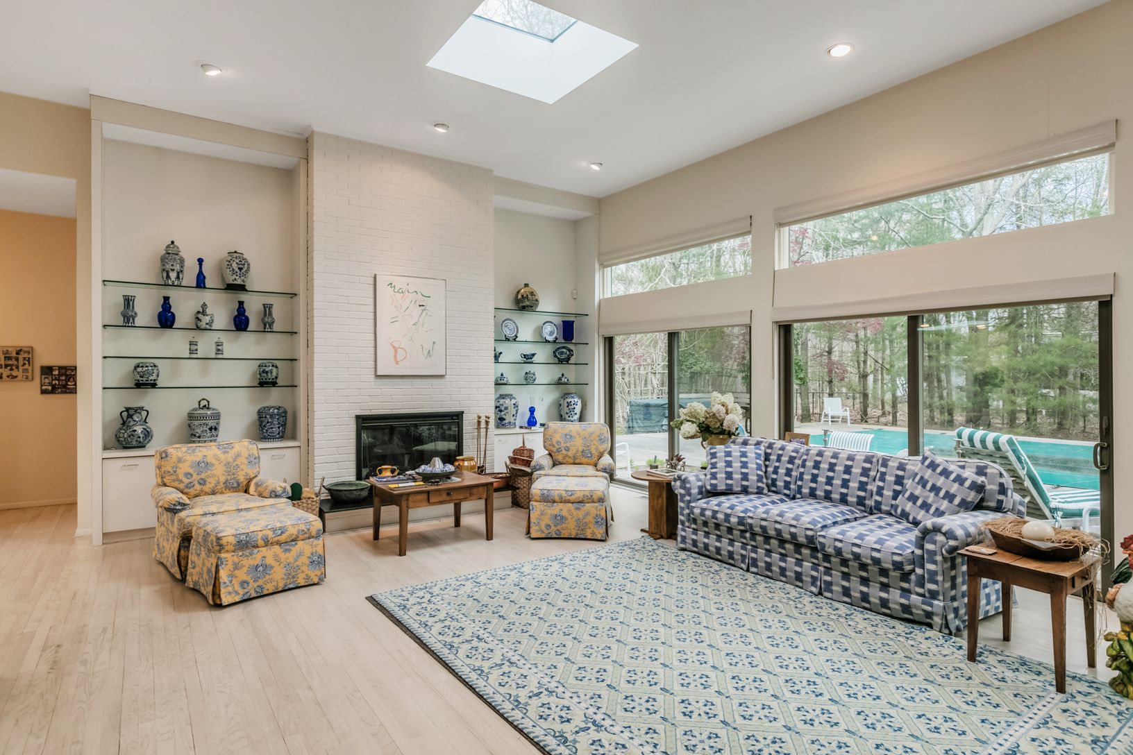 Save $75,000 on a summer rental! Buy this outstanding offering and enjoy this summer and off season in this one level classic contemporary with 4 bedrooms, 3 baths. Huge open living area with vaulted ceiling flows into a large Chefs kitchen. Access to your pool and jacuzzi by way of five sliding glass doors. The full-sized pool is 20X40, heated and surrounded by mahogany decking in a private setting. Village beach rights and low taxes comp