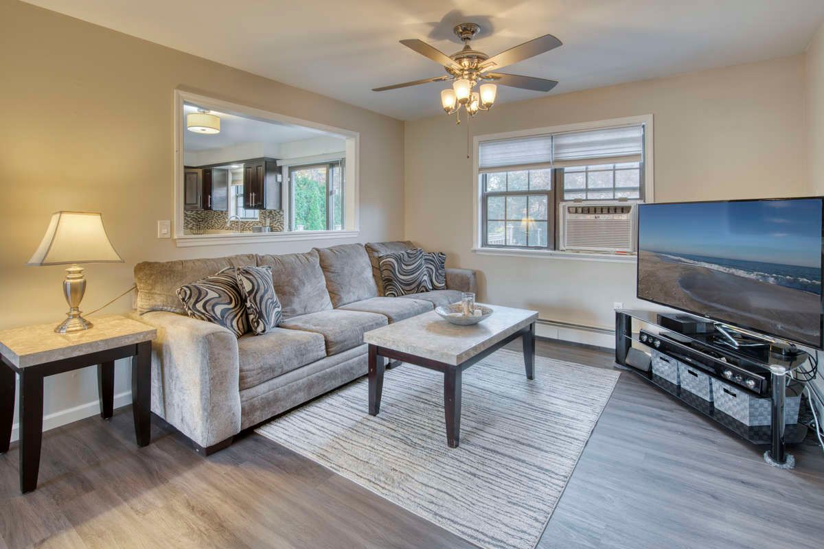This four bedroom, three full bath home is located on a quiet street south of the highway in East Quogue. The perfect home for year round or summer living with two separate floors which would be perfect as a mother/daughter! The second floor has an open floor plan with wood burning fireplace, large living room, a master suite and two additional bedrooms and bathroom. The eat-in kitchen with quartz countertops and stainless steel appliances is
