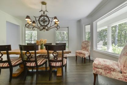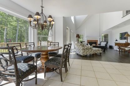 Enjoy living in one of the most sought-after zip codes in the Hamptons. This gracious, two-story shingled traditional home with a wraparound porch epitomizes classic Hamptons style. Situated on a very private 1.7+/- acre flag lot in a neighborhood of multimillion dollar homes, the four bedroom, four bath home offers 3,500+/- sq. ft. of living space. The bright living room has high vaulted ceilings, large windows and sliding glass doors opening