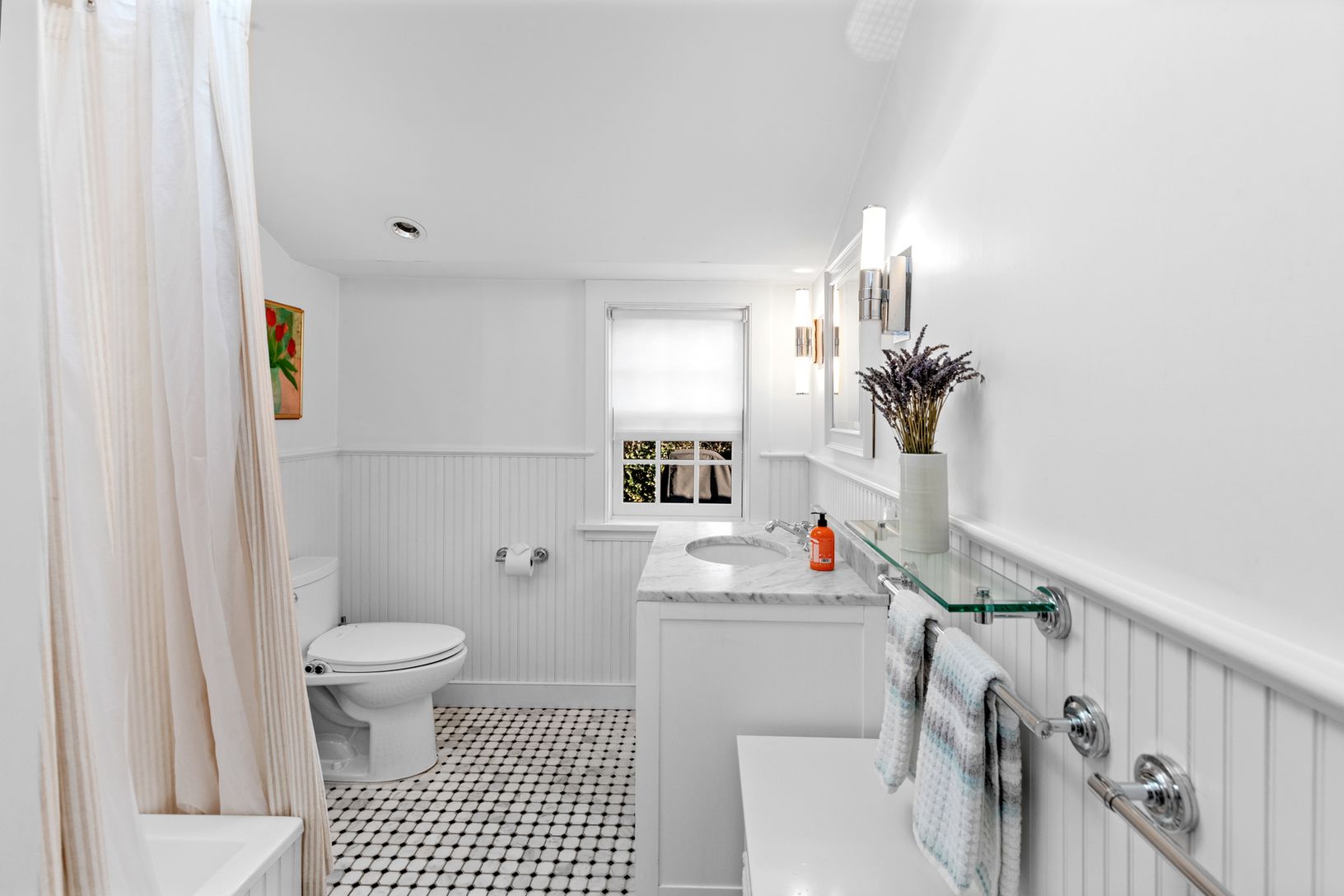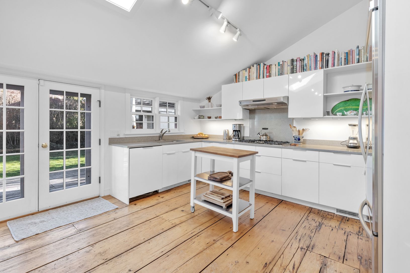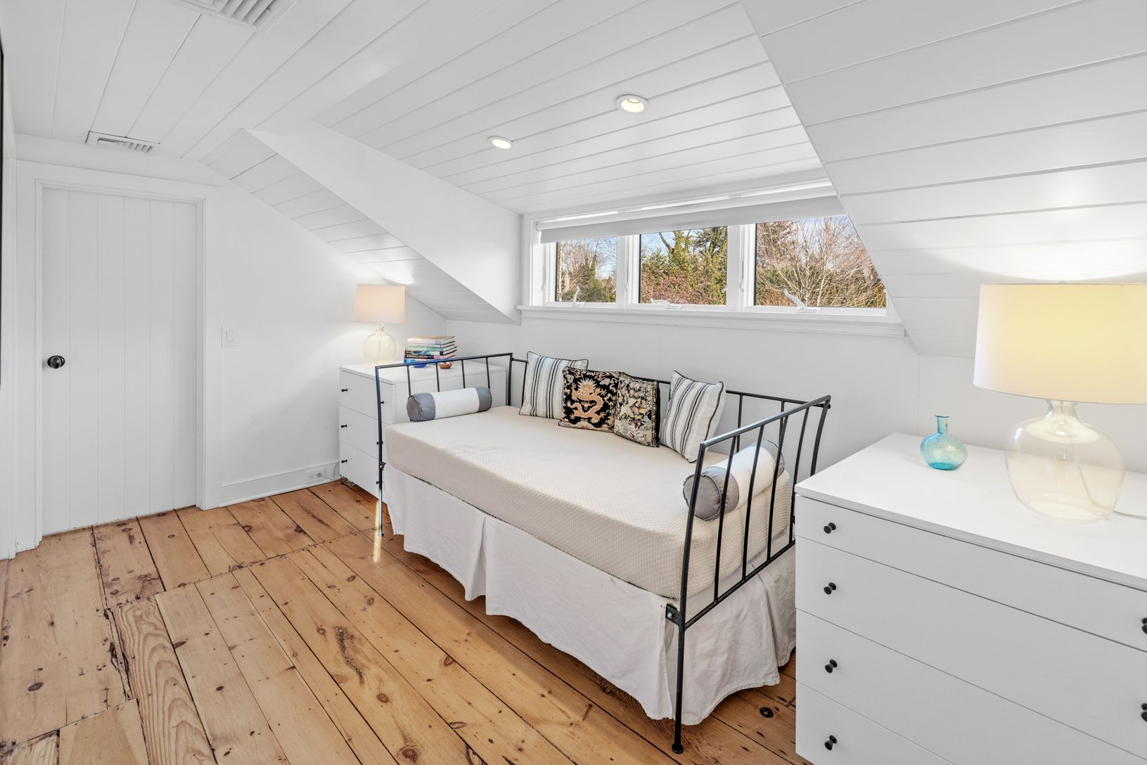 Charming 3-bedroom, 2-bath home in the heart of Sag Harbor Village. The first floor offers a living room, dining room, kitchen with washer/dryer, and a den with pocket doors and a pull-out couch that doubles as a third en-suite guest bedroom. Upstairs are two bedrooms sharing a full bath. Enjoy outdoor dining on the deck with BBQ. The art studio in the rear is for storage only and not available for use