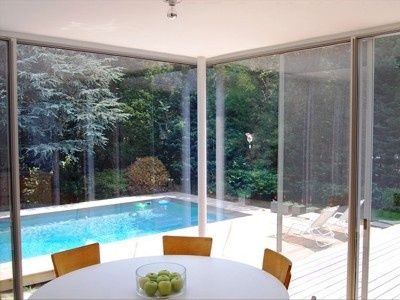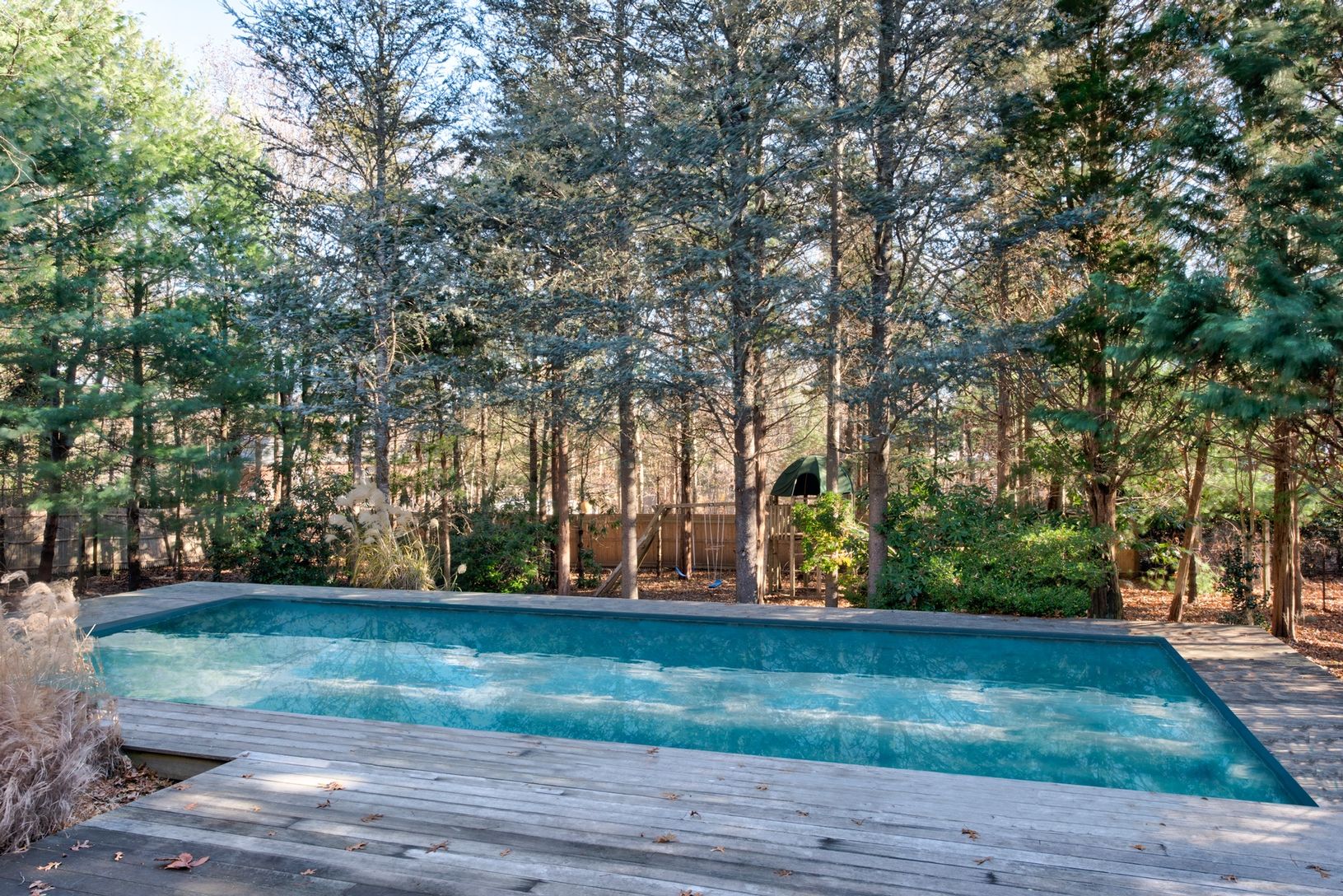 Rental Registration #: 18-1807 This clean, crisp modern home is a special summer rental. Located on a quiet street, the first floor has a bright open floor plan with kitchen, breakfast nook, and living room that opens onto the deck and pool area. Additionally there are three bedrooms, one with a queen and it's own bath on one side of the house and on the other, a bunk room with four twins and a twin room that share a bathroom. Upstairs is a s