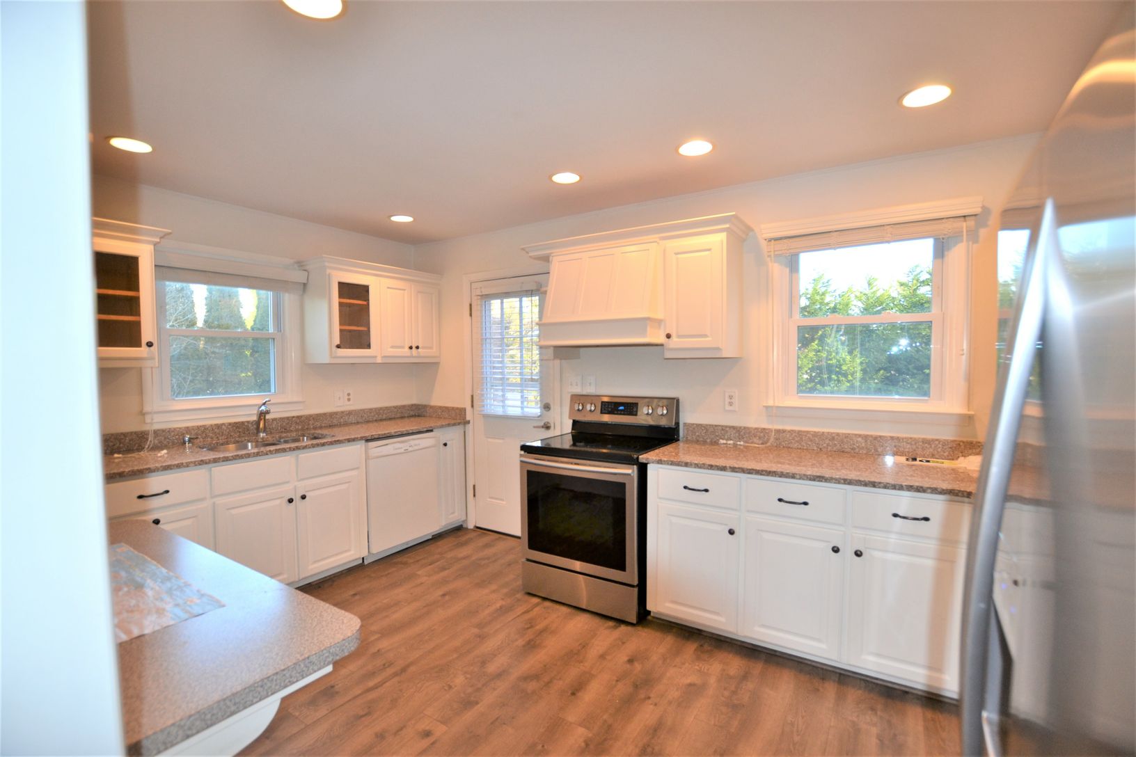 New year round rental in Remsenburg features Living Room, Dining Room and updated Kitchen. Office and Full bath on Main Level. Upstairs boasts Master Bedroom w/ custom walk-in closet plus 2 additional bedrooms and a full bathroom. Deck off the kitchen with awning. Fully Fenced yard. Sprinkler System. Walk out basement partially finished, ideal for storage. Washer/Dryer. Ductless Air Conditioners
