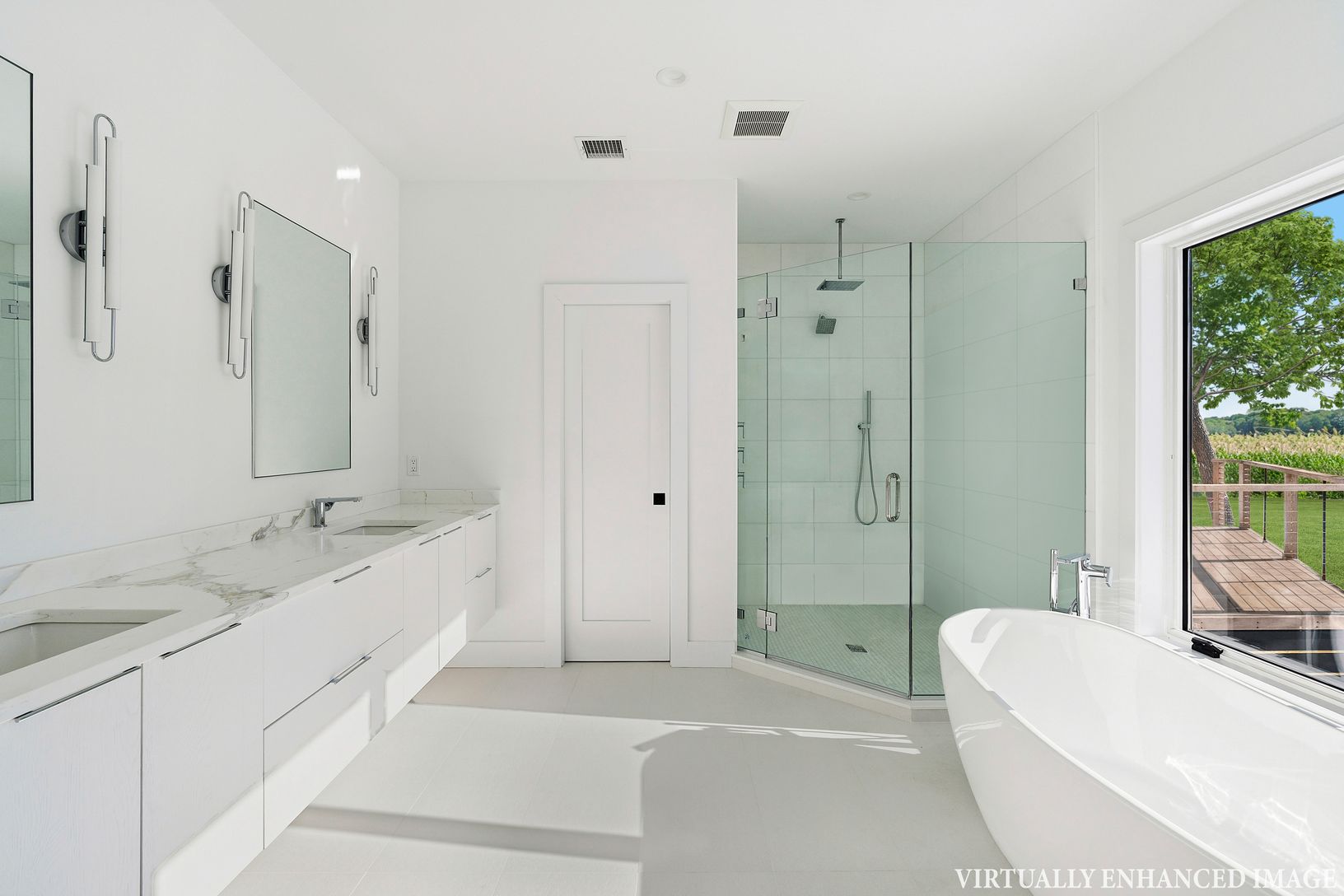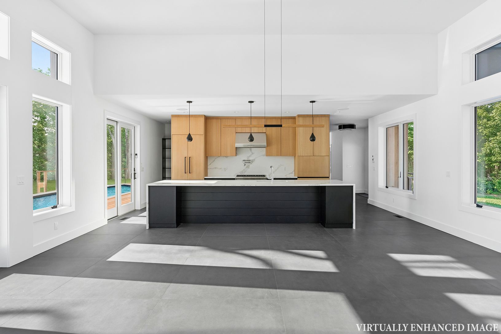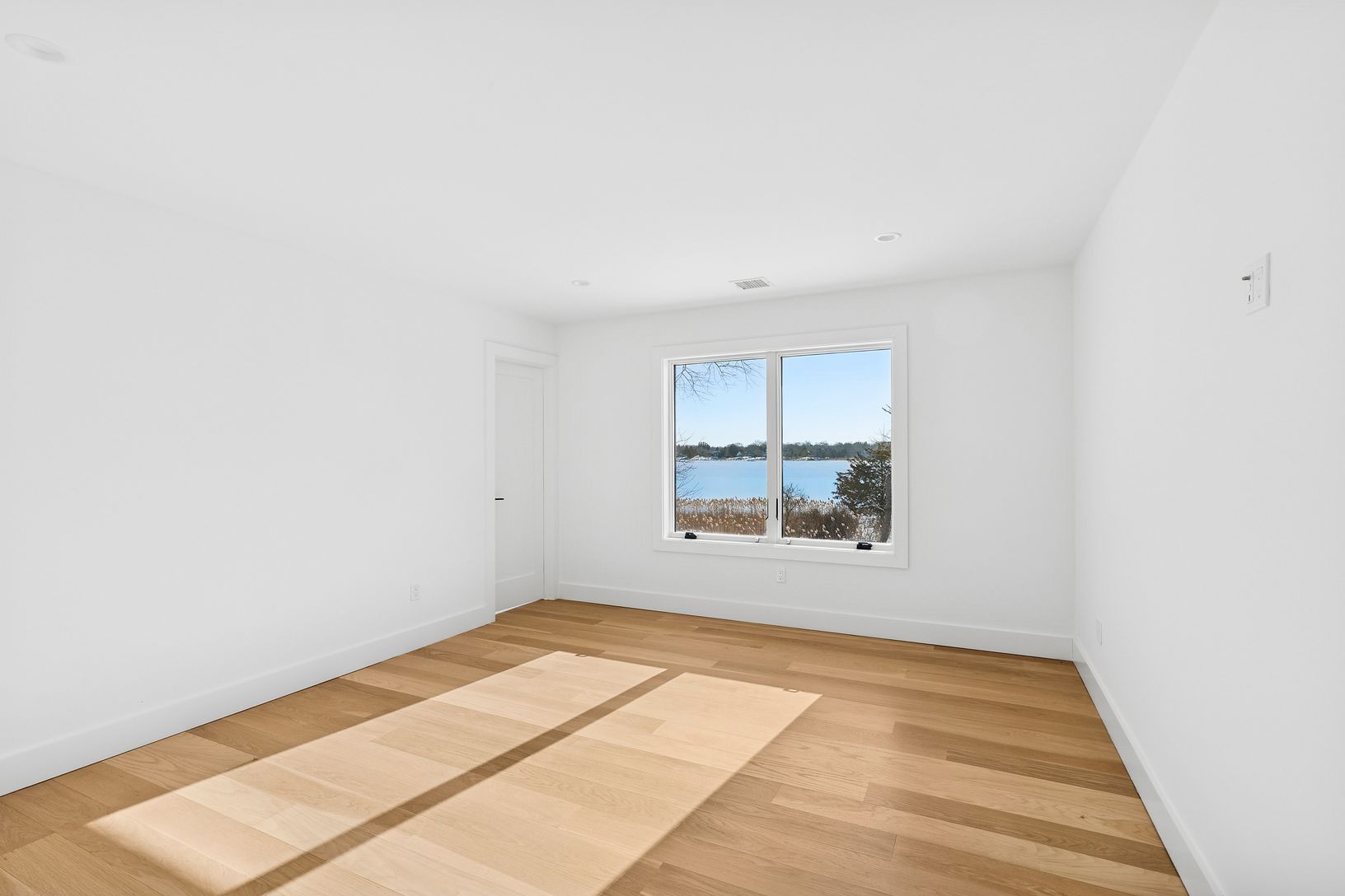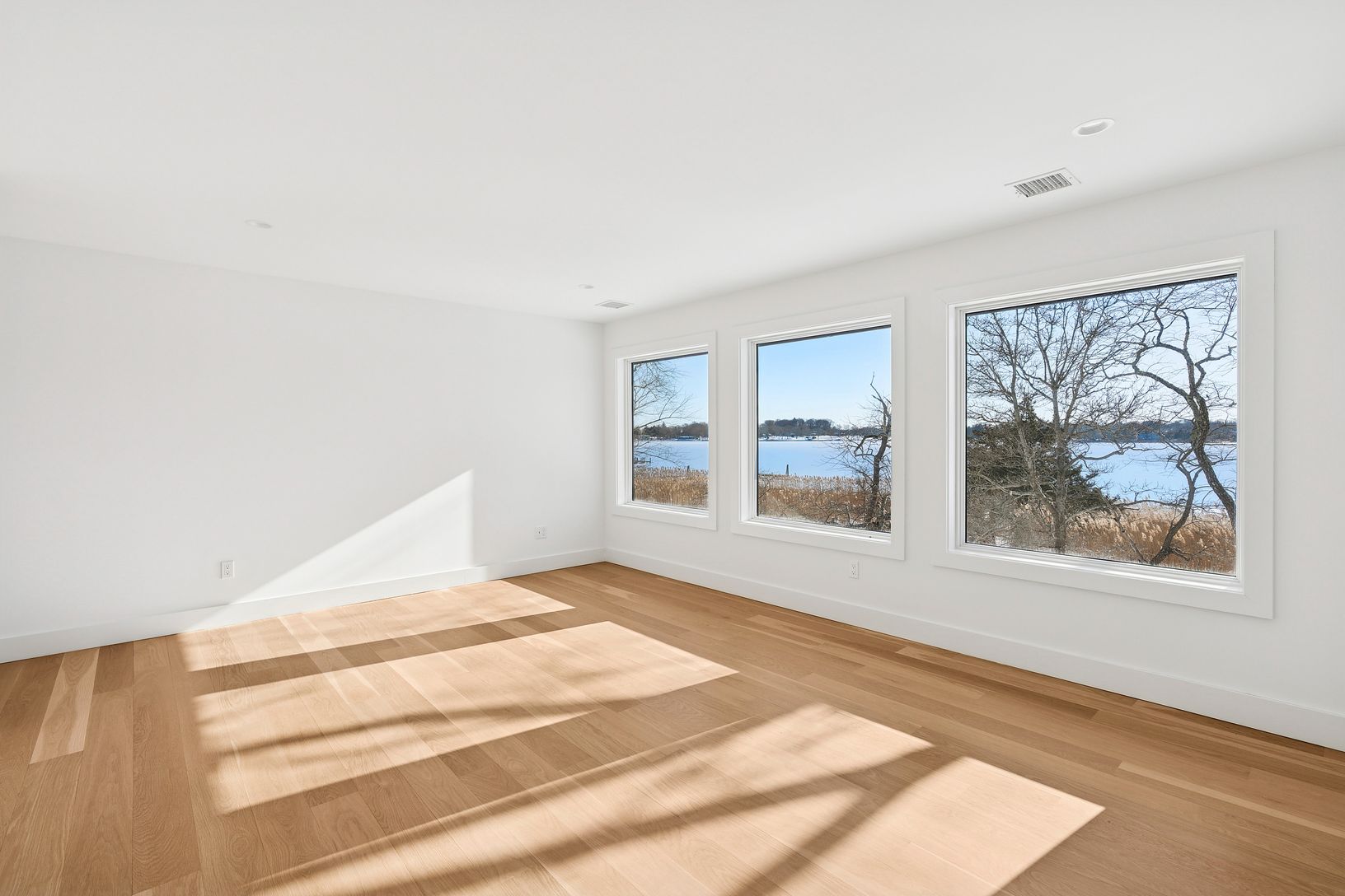 This newly constructed modern residence offers stunning south-facing water views over West Neck Bay in Shelter Island. Thoughtfully designed to maximize its prime setting, the home spans approximately 3,985 square feet and features 4 ensuite bedrooms and 5.5 bathrooms, providing exceptional comfort and privacy. The interiors showcase a high level of craftsmanship and attention to detail, featuring an open floor plan with elegant white oak and