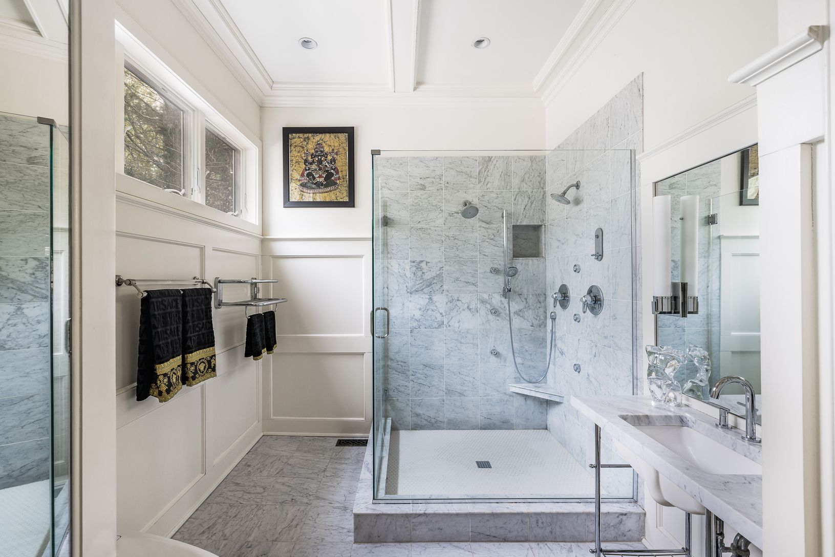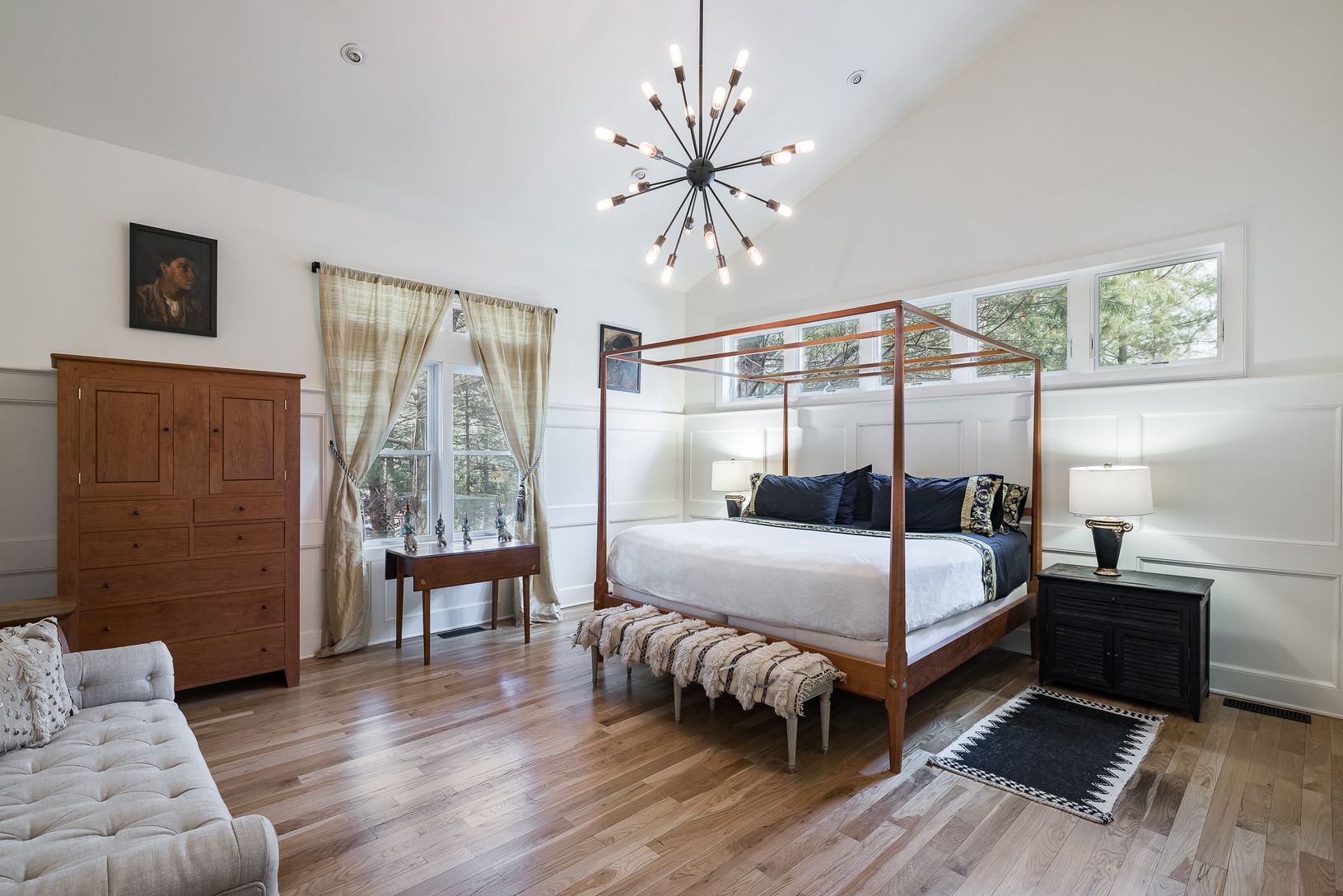 Situated on an acre in the Northwest Woods minutes to beautiful bay beaches, this dramatic turnkey home is being listed for the first time. High ceilings, spacious rooms, and stylish details enhance the overall feel of this four bedroom, four bathroom home. Drop your coat and bags in the mudroom and enter the main living room with 10 ft ceilings and a gas fireplace. Featuring an open floor plan, the plush living room leads seamlessly into the
