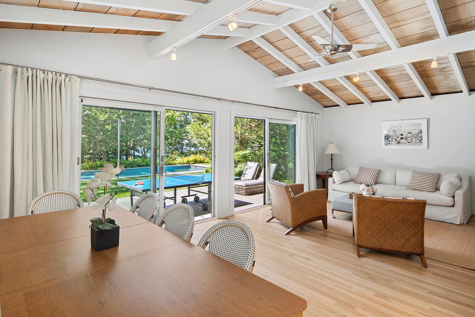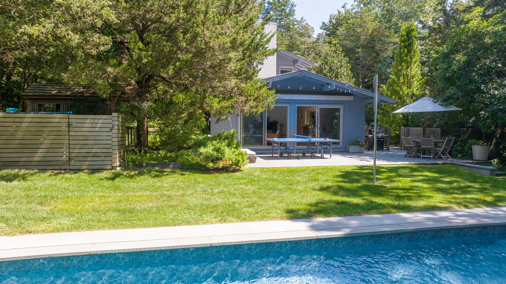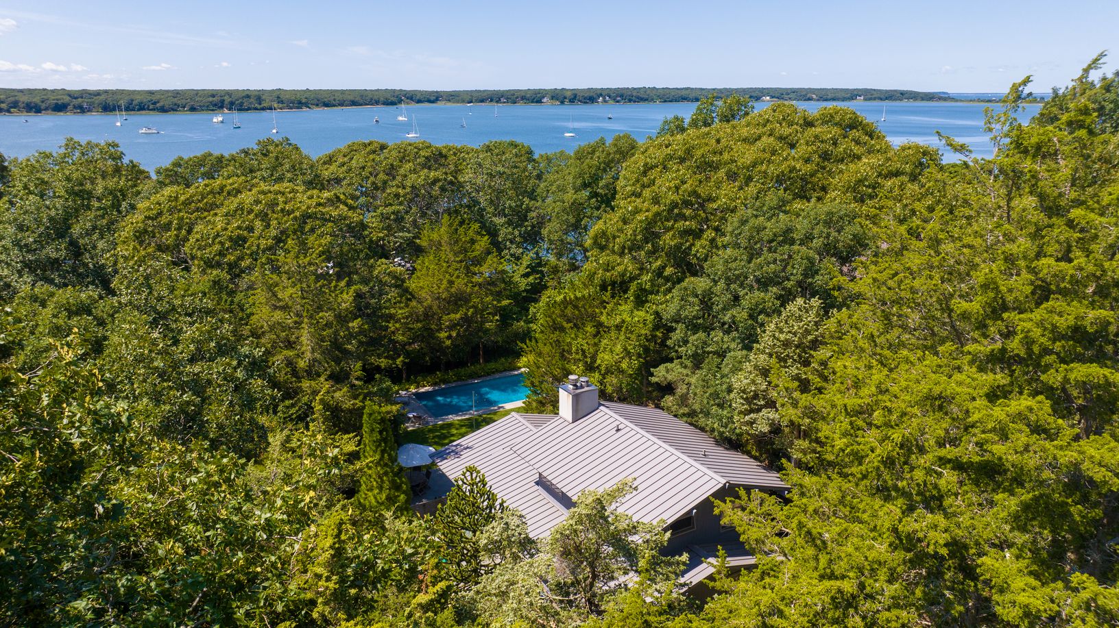 Nestled off a private road, less than 10 minutes to East Hampton Village this lovely two-story home with water views and a grandfathered heated swimming pool awaits a lucky buyer. This turn key gem has three bedrooms, two baths, and an open living floor plan with sliding glass doors leading to the backyard . The backyard offers breathtaking views of Three Mile Harbor. Features of this home include specimen trees, a metal roof, outdoor shower a