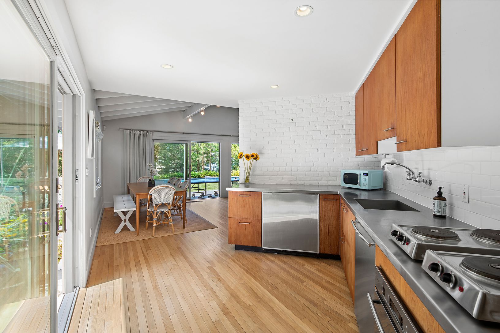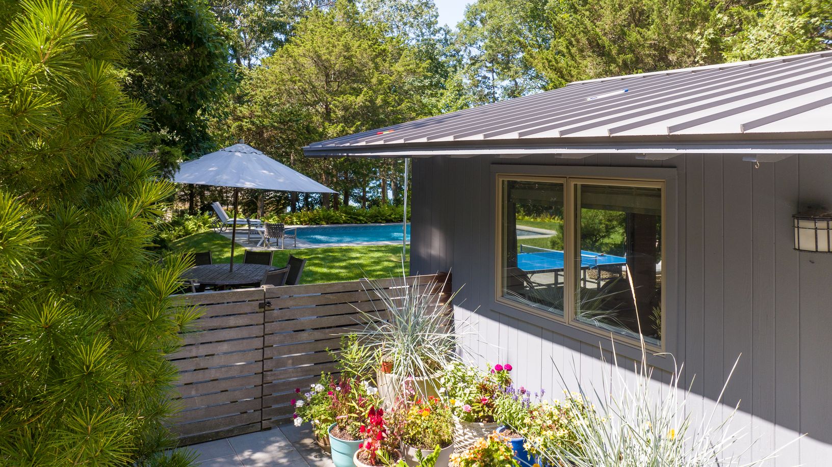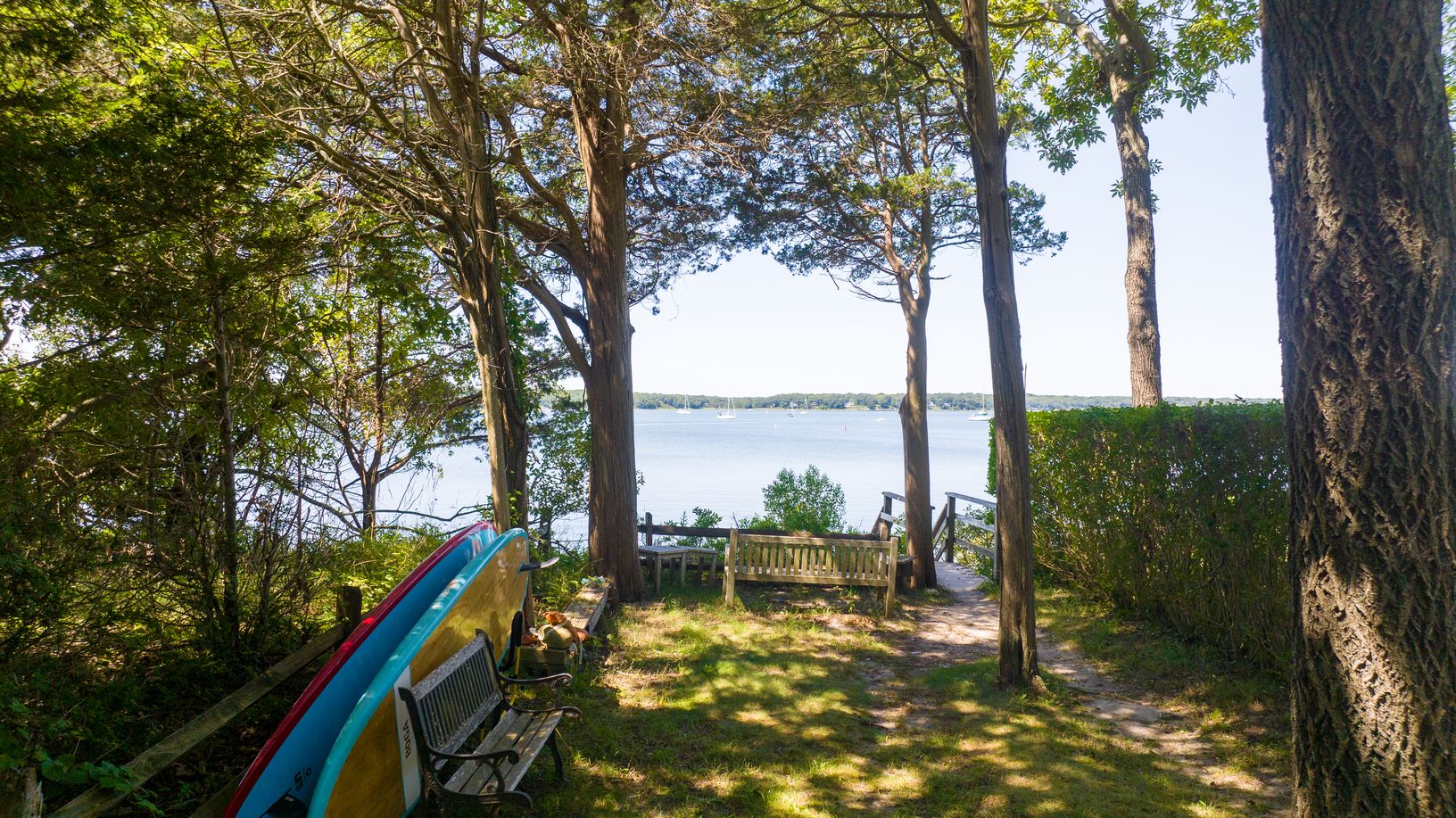 Nestled off a private road, less than 10 minutes to East Hampton Village this lovely two-story home with water views and a grandfathered heated swimming pool awaits a lucky buyer. This turn key gem has three bedrooms, two baths, and an open living floor plan with sliding glass doors leading to the backyard . The backyard offers breathtaking views of Three Mile Harbor. Features of this home include specimen trees, a metal roof, outdoor shower a