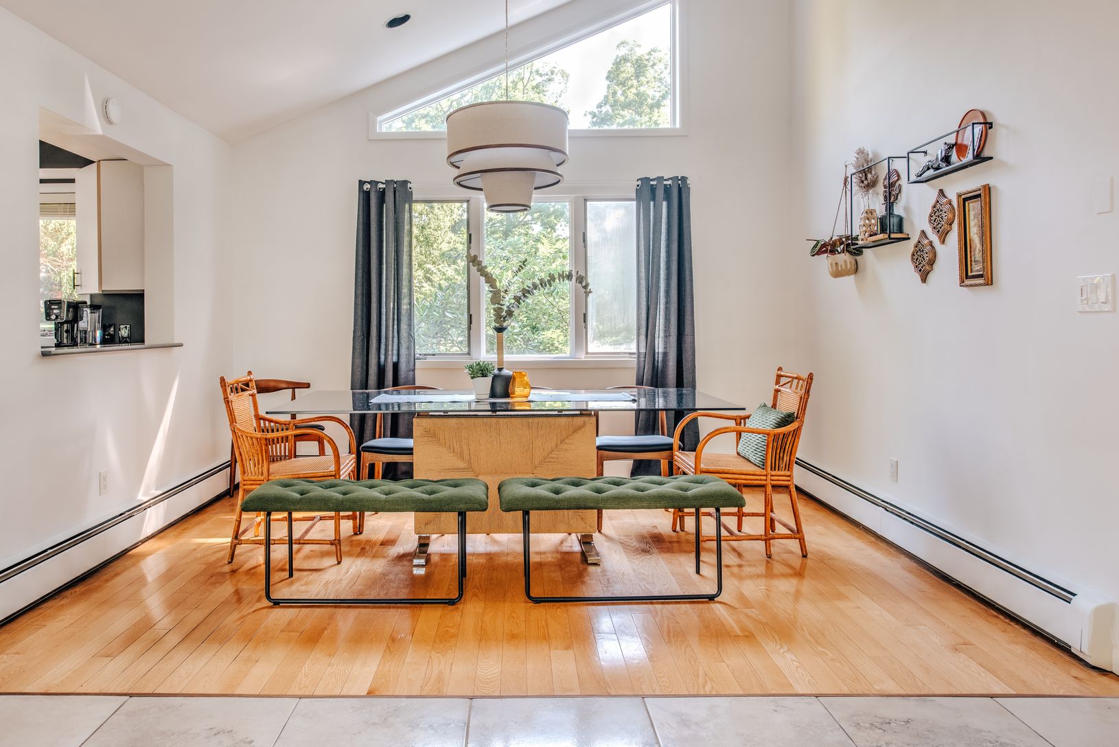 Floors: Hardwood, Tile