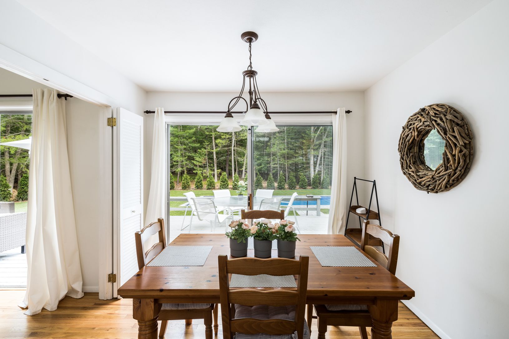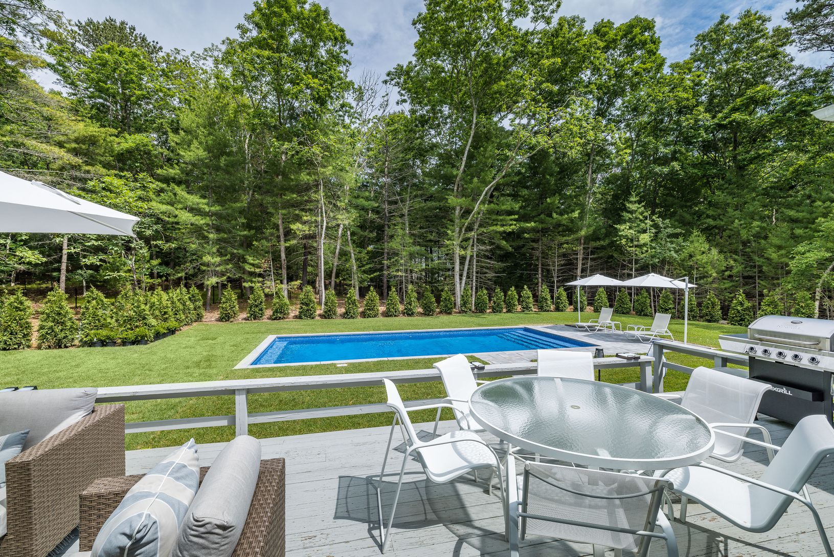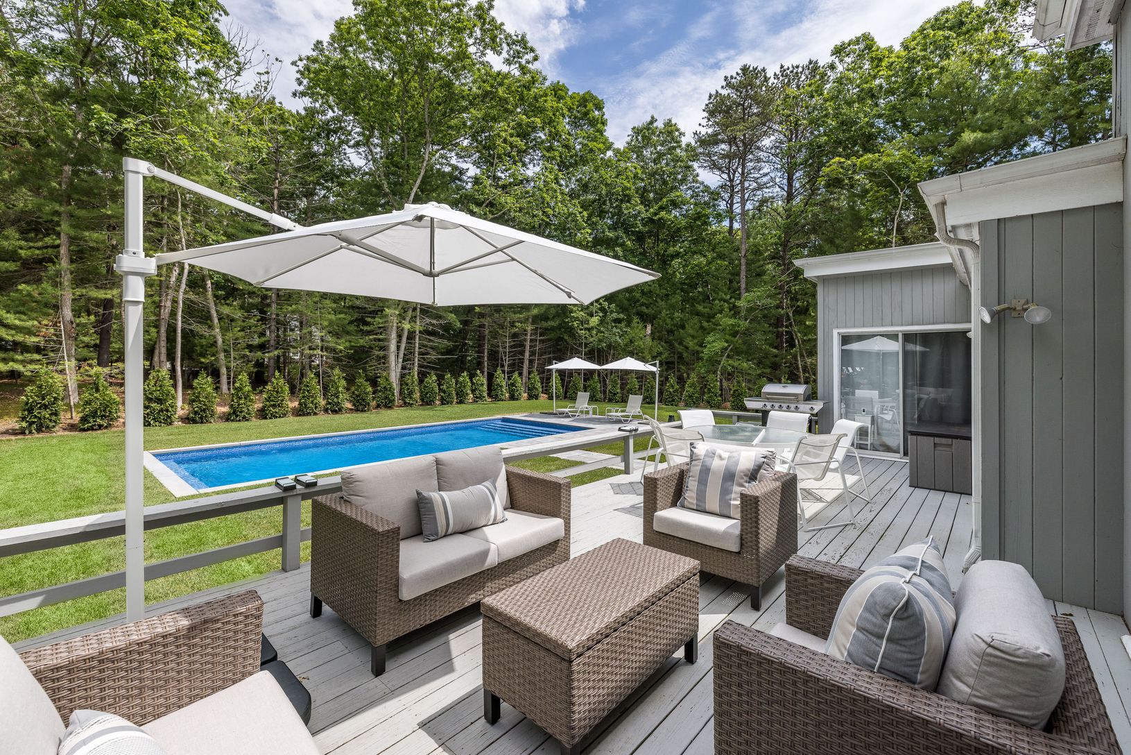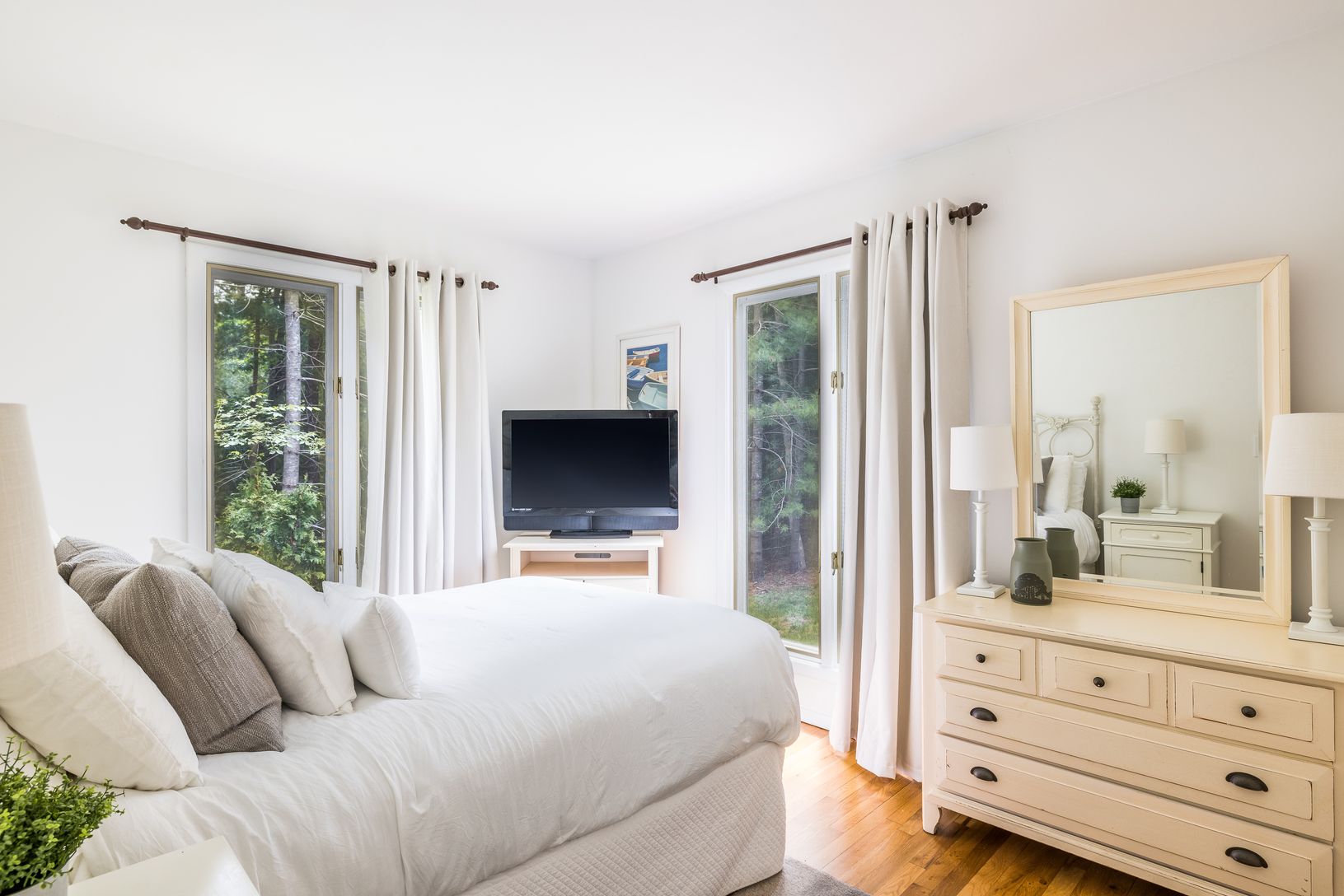 Offered on a beautiful street in East Hampton, approximately three miles from town/Main Beach. One story, immaculate, sun-drenched, freshly painted home with a large living room, four bedrooms, two full baths (brand new bathroom) with standard tub/shower combos, kitchen, and dining area. Stainless steel appliances; refrigerator, stove/oven, microwave, dishwasher. Central AC, oil/hot water/heat, fireplace, vaulted ceilings, skylights. Full base