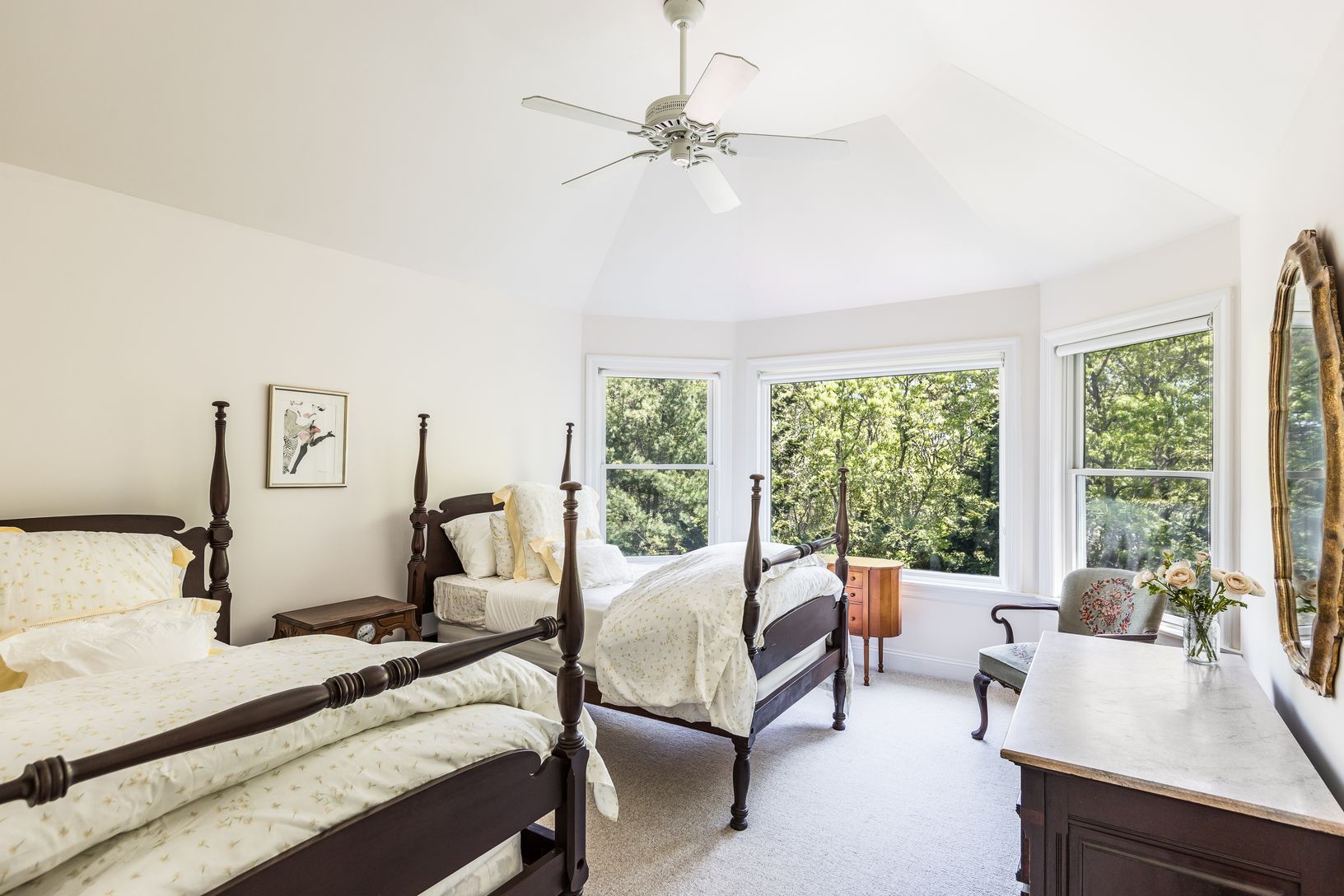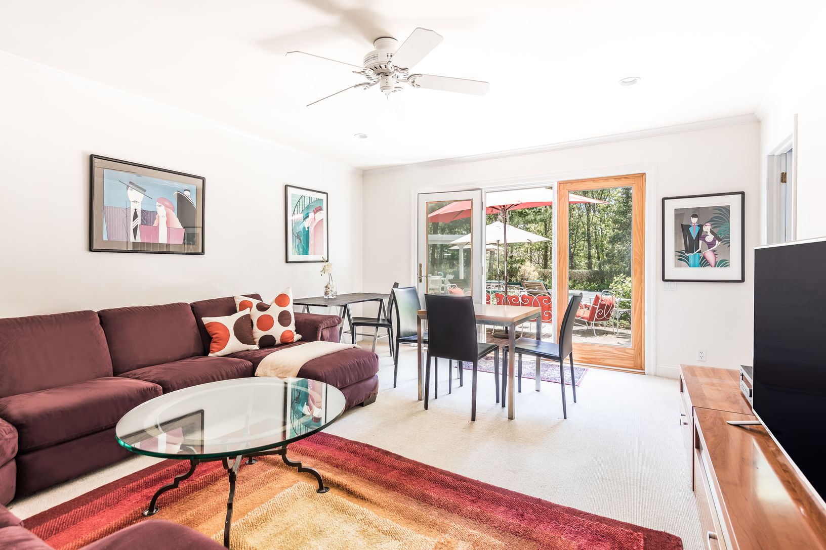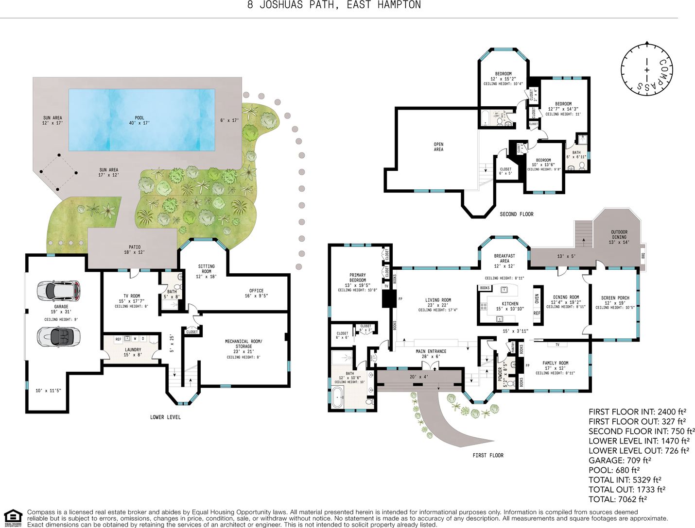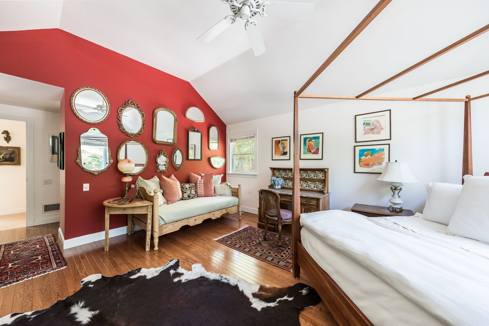 A spacious, bright, multi-level East Hampton cedar-shingled postmodern home awaits. With a contemporary flair this 4 bedrooms, 41/2 bathroom home is situated on a private 1.67 acres. Located on a quiet cul-de-sac 2 miles from East Hampton Village. Arrive through a gated entrance to a circular driveway. The main entrance leads to an open family/great room with a wood-burning fireplace overlooking the pool and brick patio area. Located on the fi