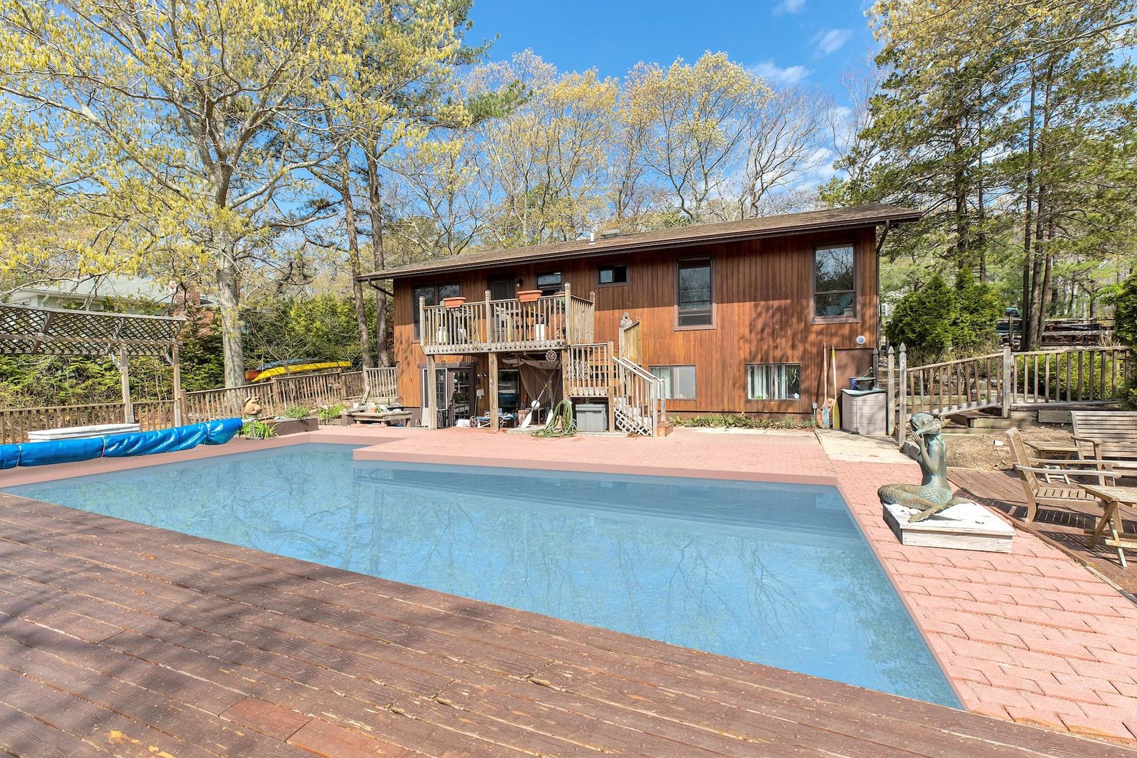 Beach living at its best!!! Your beach home is waiting for you. This beautiful home nestled in the woodsy area of West Landing Beach and Squires Pond has so much to offer and has been approved for a legal lower level accessory apartment awaiting the new owners personal touches. Or enjoy this home as a family compound with two levels of Hamptons living. The walk out lower level takes you to your inviting in ground pool and patio for amazing sum
