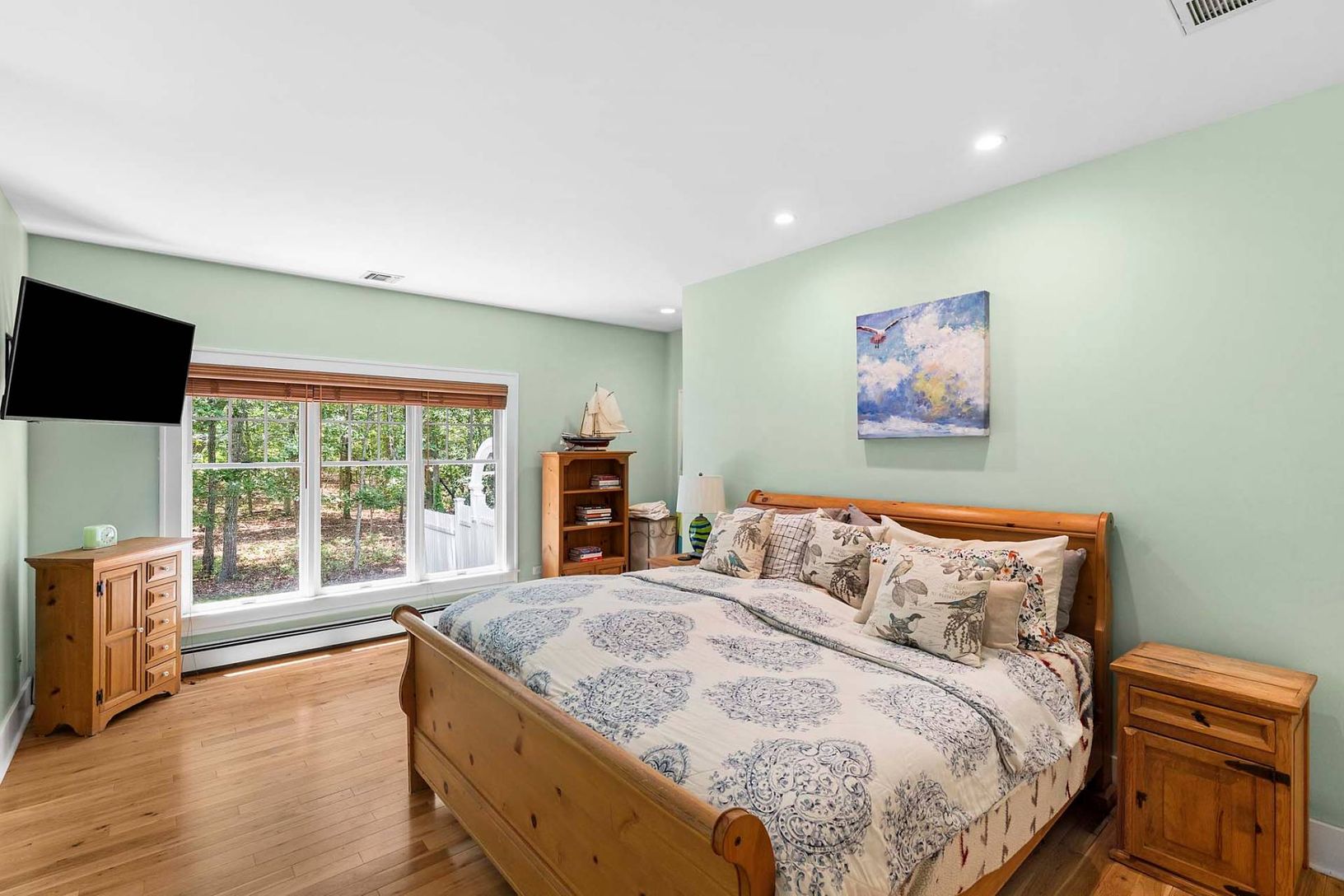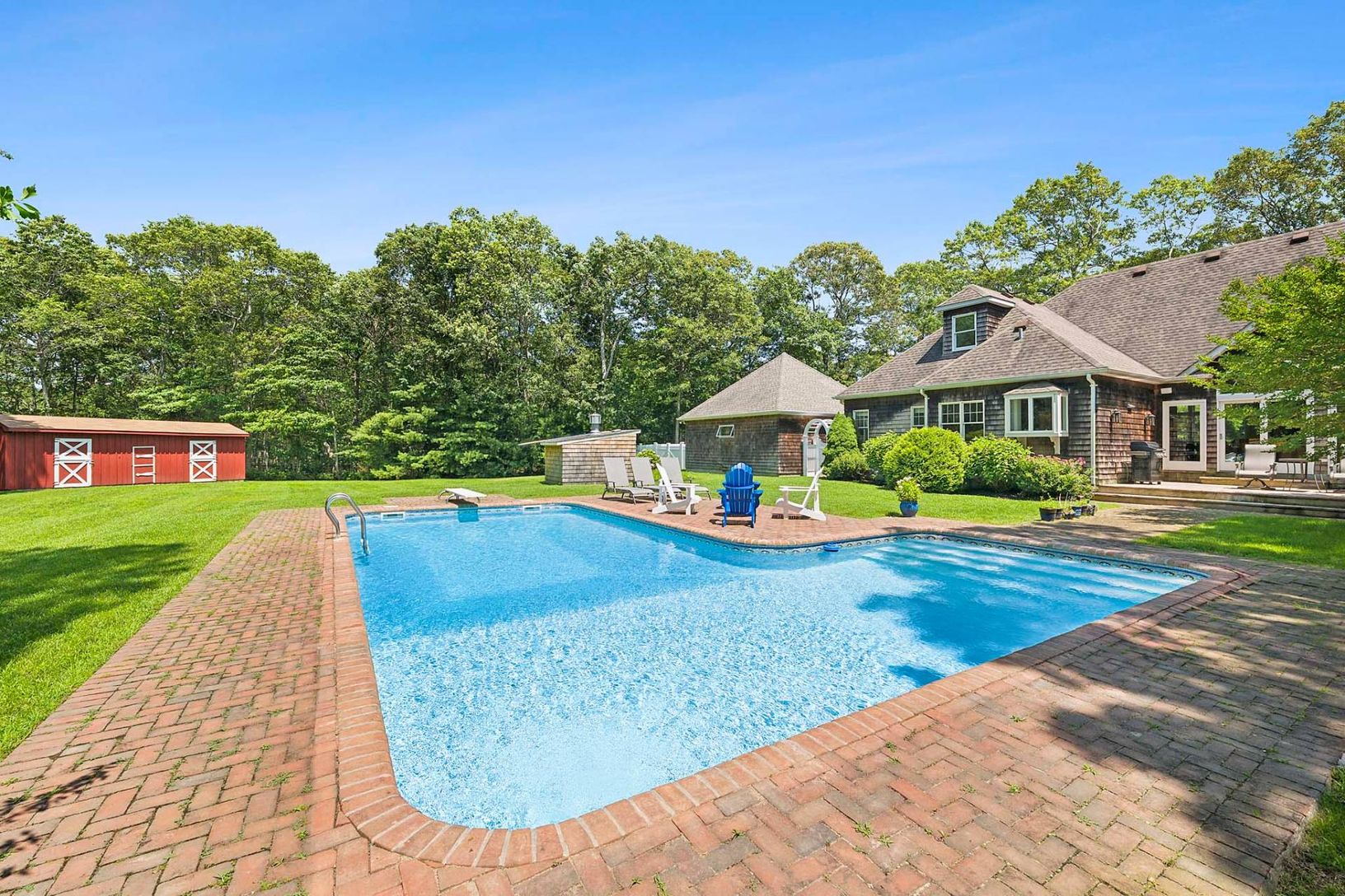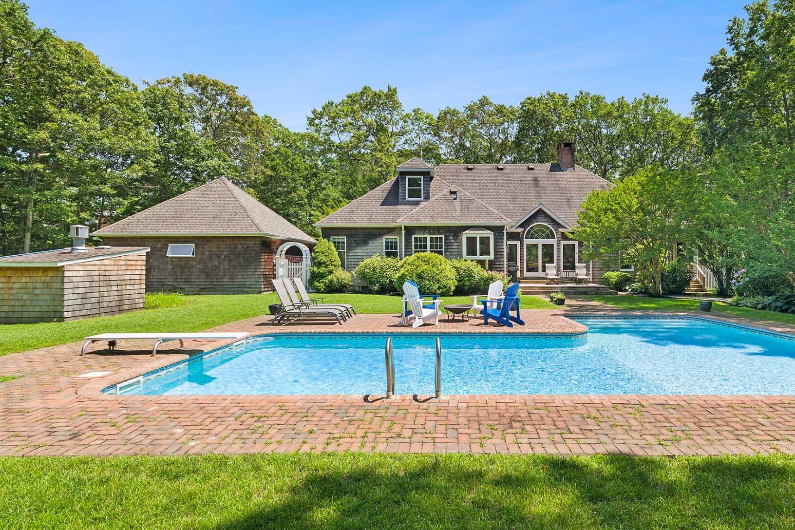 This meticulous residence on a shy acre abuts over 500 acres of County parkland and has access to the bay beaches. The home features 3 bedrooms and 3 baths with over 4000 sq. ft. on 3 levels. The main floor has a living room with 14 ft. ceiling and fireplace/ wood burning stove and opens to a stone patio overlooking the pool and reserve area. There are 3 bedrooms and 2 bathrooms. The master bedroom has 2 walk-in closets. The dining room also h