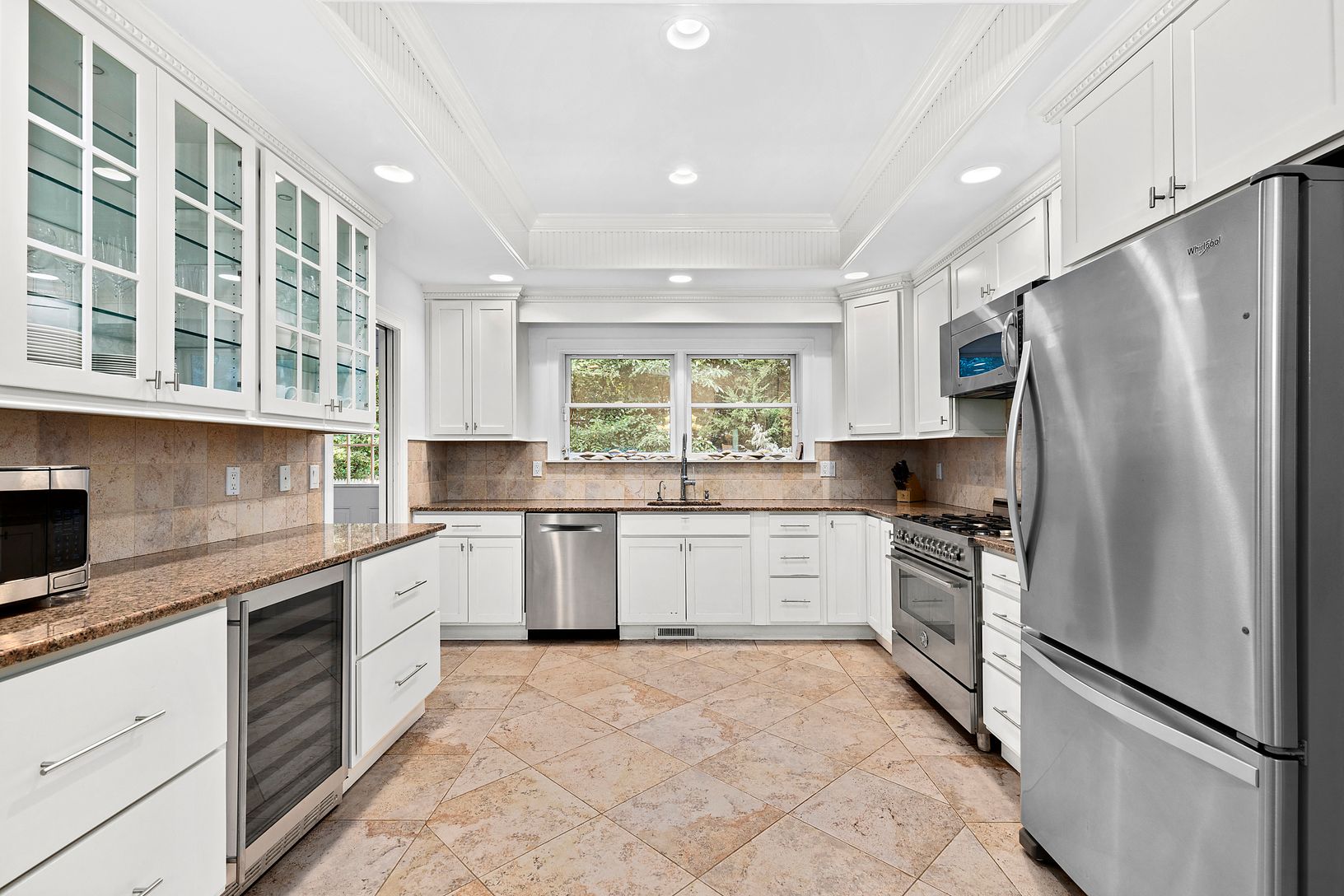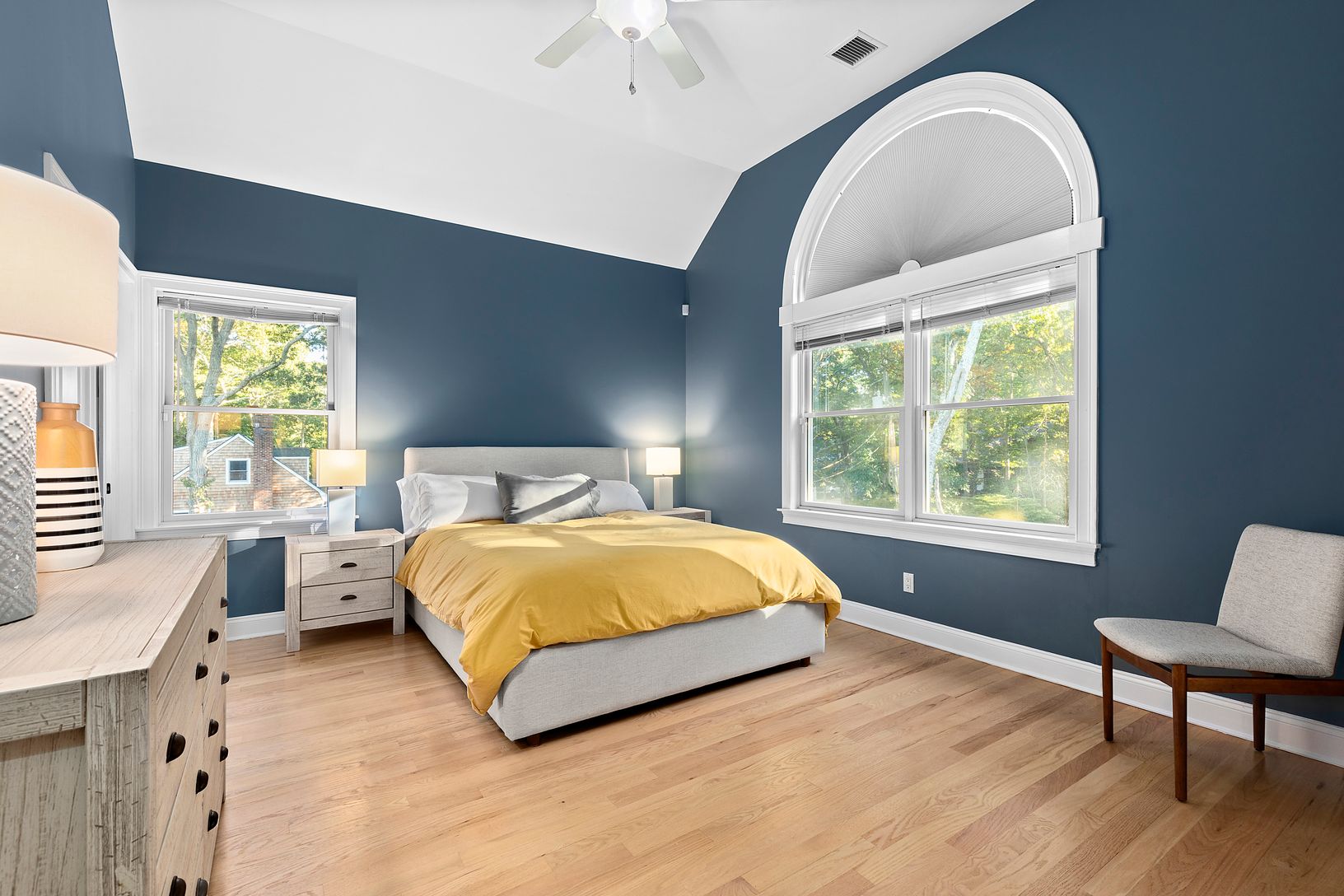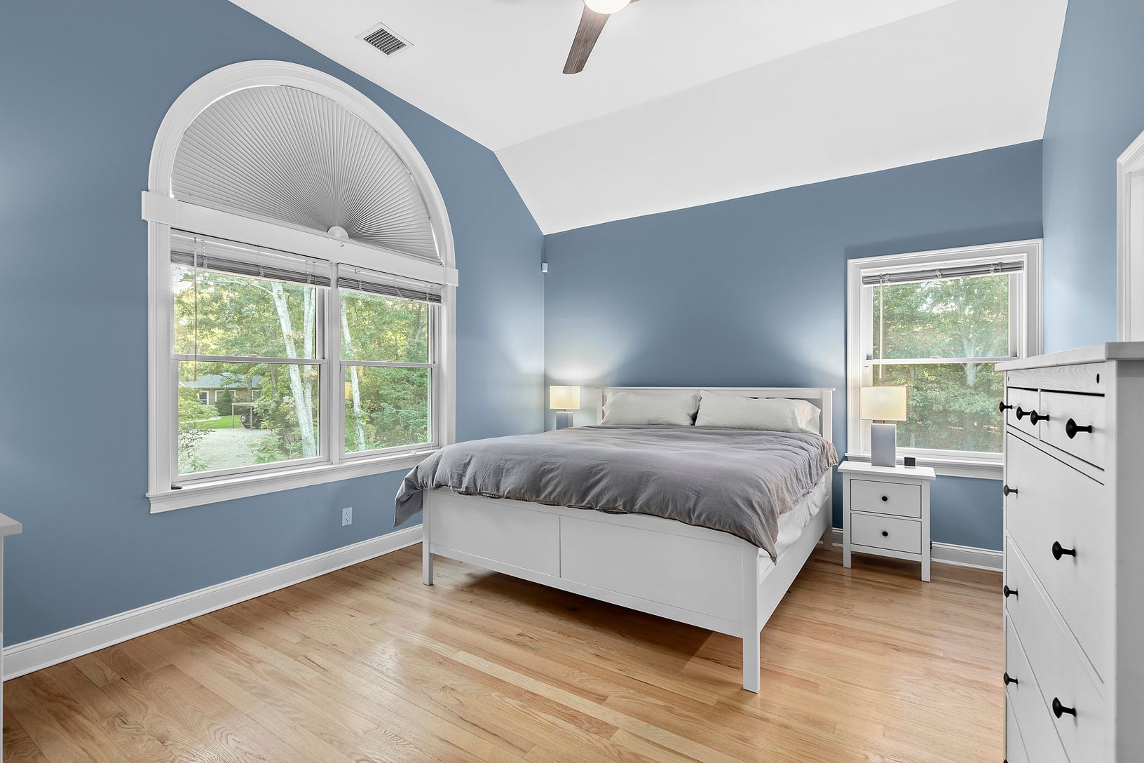 This turn-key Post-Modern sits on a quiet street in Springs just minutes to East Hampton Village and Ocean Beaches. The first floor features an open layout with soaring cathedral ceilings in the main living space and dining room, a chef's kitchen with all stainless-steel appliances and cozy den with sliding glass doors leading to the private back porch area. All four bedrooms are en-suite and exceptionally spacious allowing you the choice of y