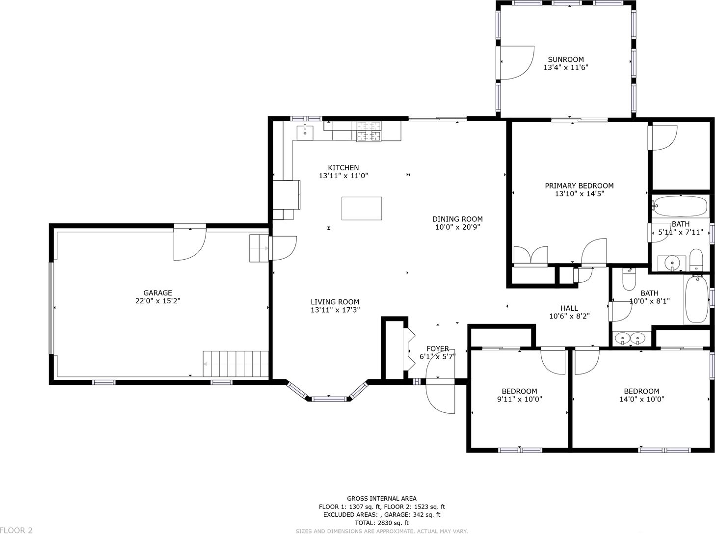 Full bathrooms: 2