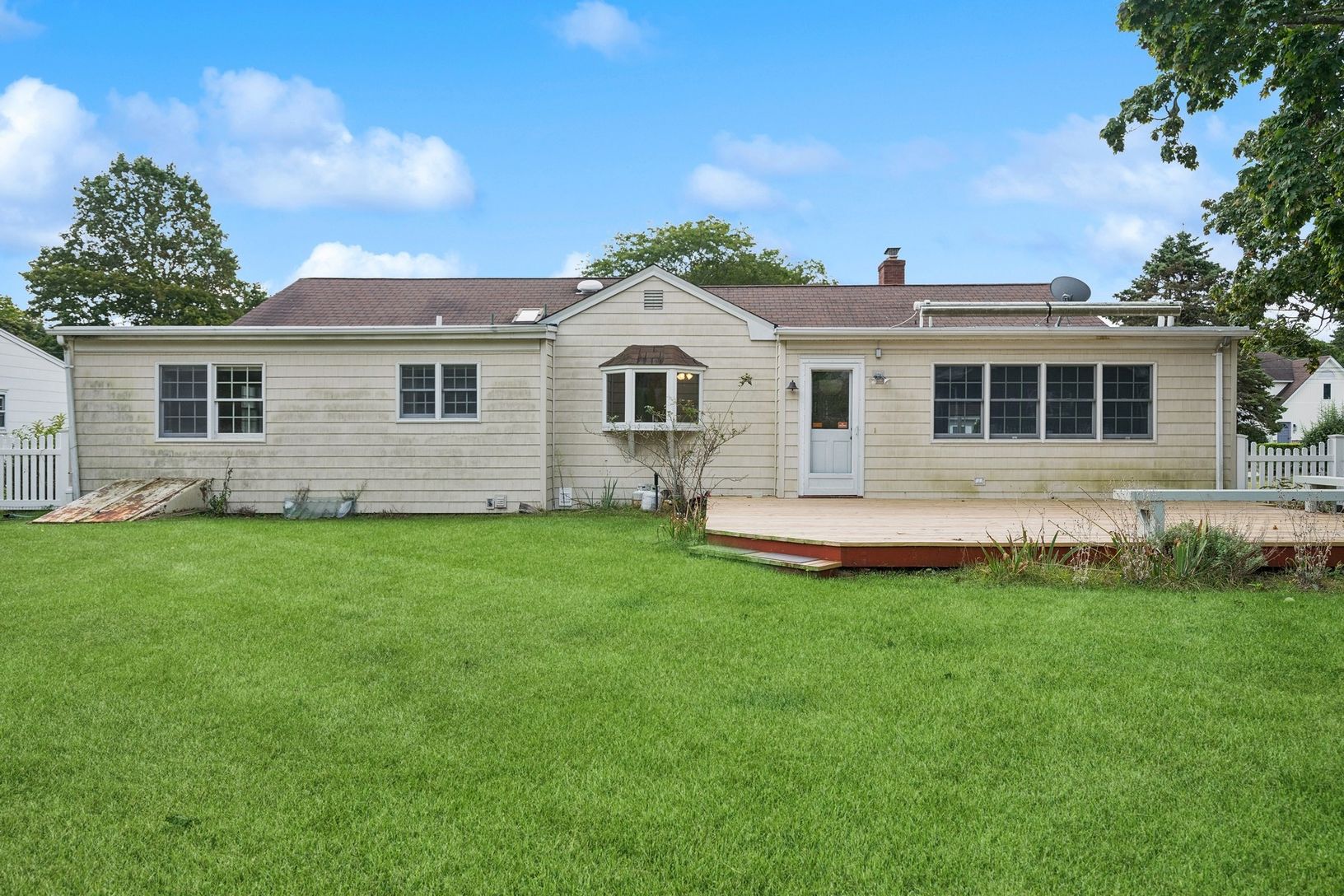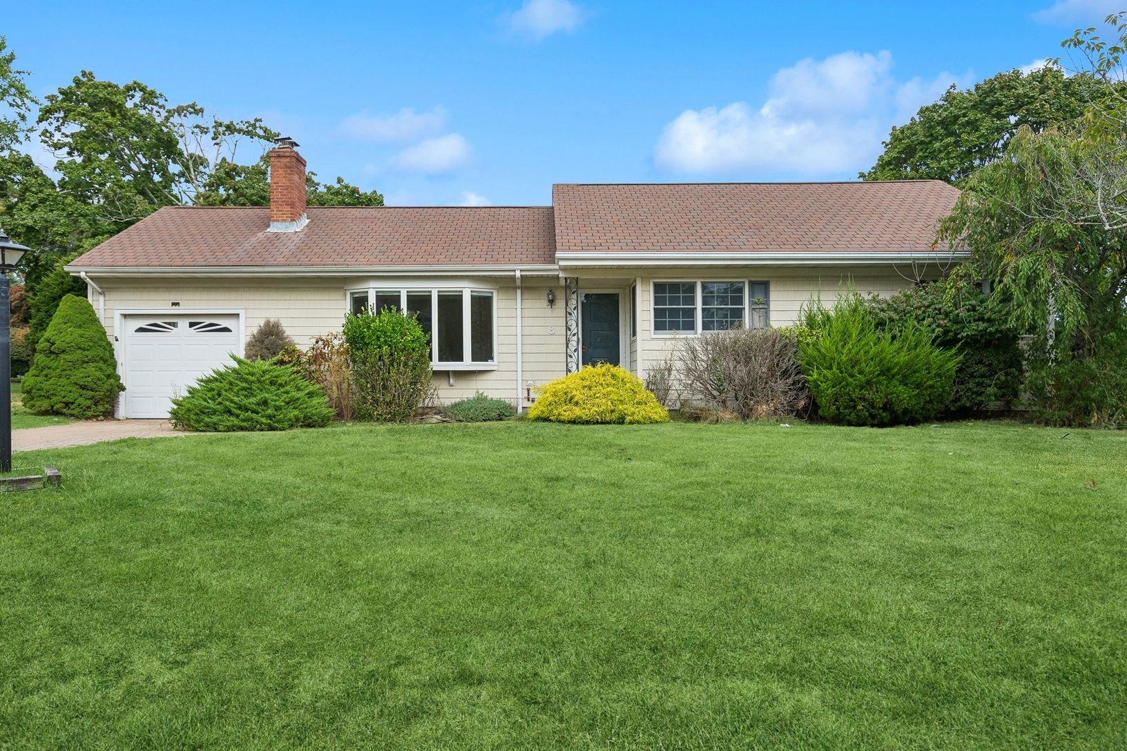 Nestled in a charming and welcoming neighborhood, this home offers a perfect blend of tranquility and convenience. Enjoy the close proximity to parks, schools, and local shops, just a short 3 miles to Ponquogue Beach. This spacious expanded ranch has a large primary ensuite and two guest bedrooms, full updated hall bath, hardwood floors throughout, living room, fireplace dining area, family room overlooking deck and backyard, generous size k