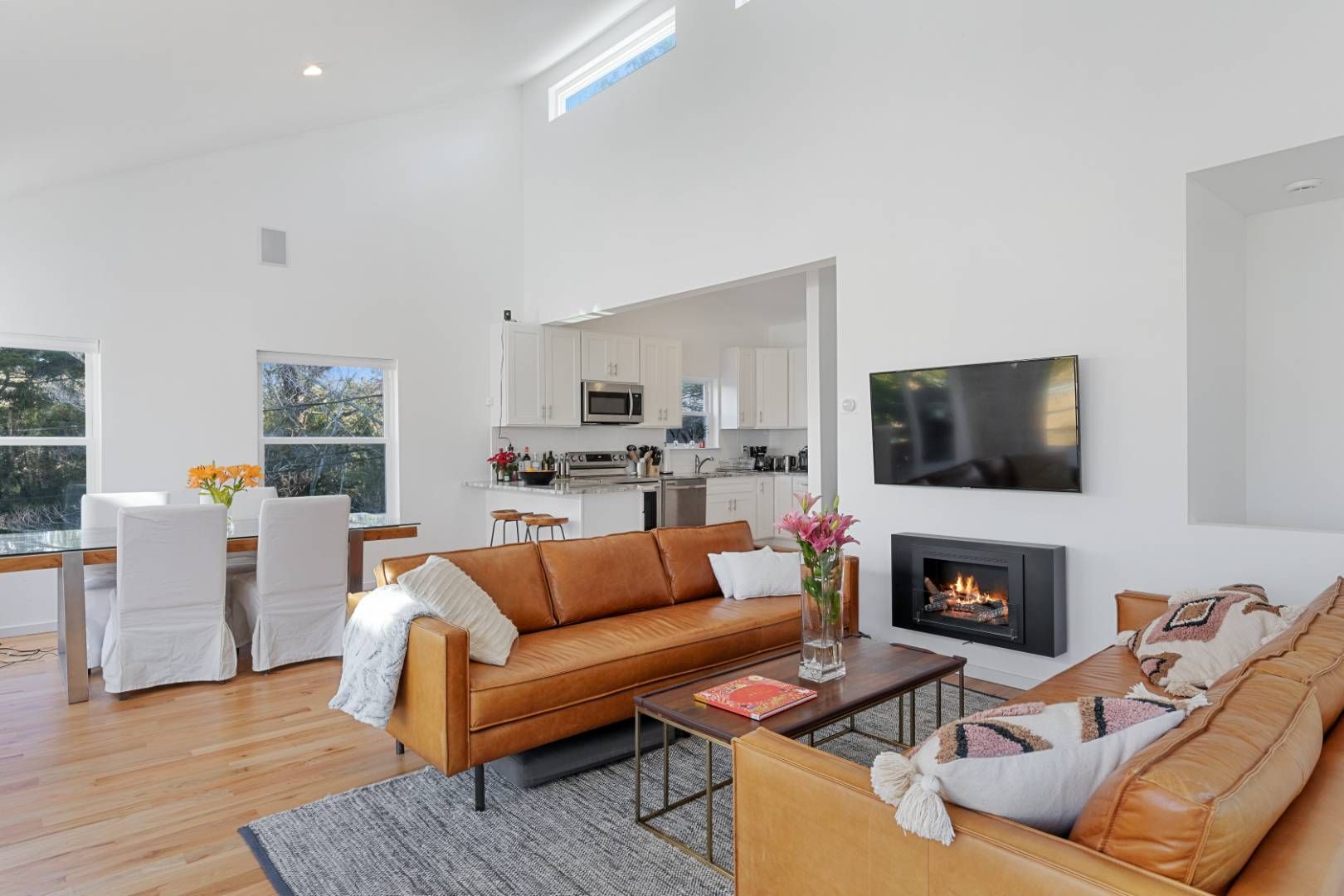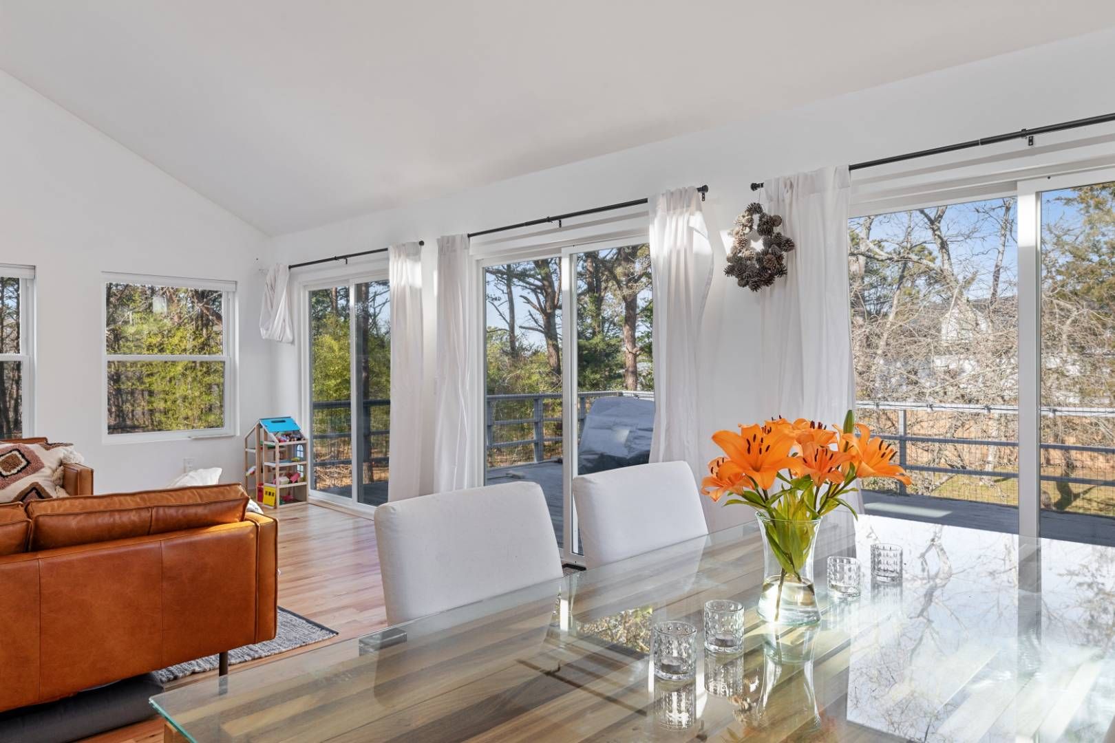 Light-filled, beautifully renovated, and updated four-bedroom, two-and-a-half bath home on a just-shy half acre in Shinnecock Hills is stylish and flooded with natural light. Open upstairs living areas feature a wall of energy-efficient glass doors opening to an upper deck, and flow among a living area, formal dining area, and beautiful kitchen with new cabinets, granite countertops, and stainless steel appliances. All new baths feature marble